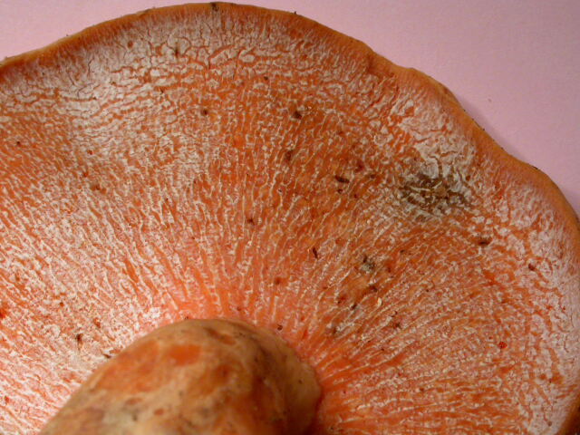 Chercher le rose : lames roses, régions roses sur le chapeau (au centre).