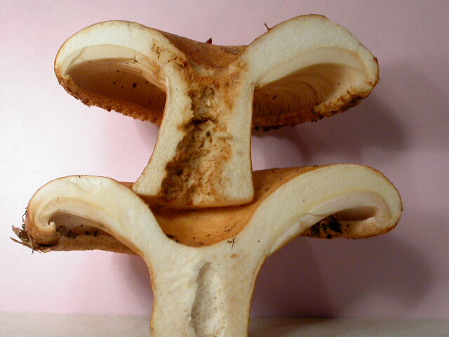 bulbeux trés caractéristiques et sans anneau. Peut être une identification
