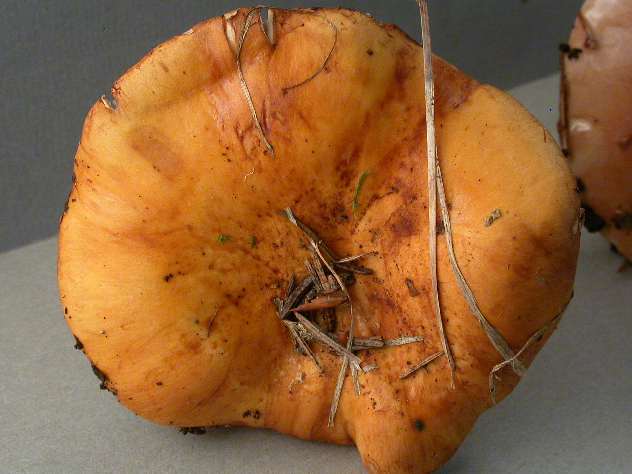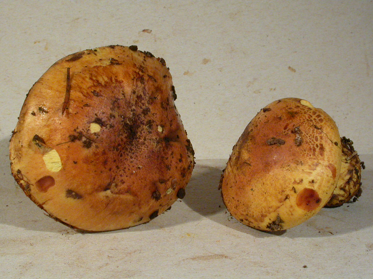 | Chapeau | Jaune citrin puis orangé cuivré à partir du centre |