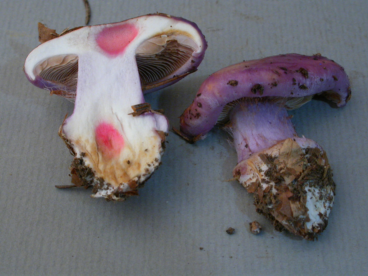 | Chair | Blanchâtre (chapeau), violette (stipe), brunâtre (bulbe) |