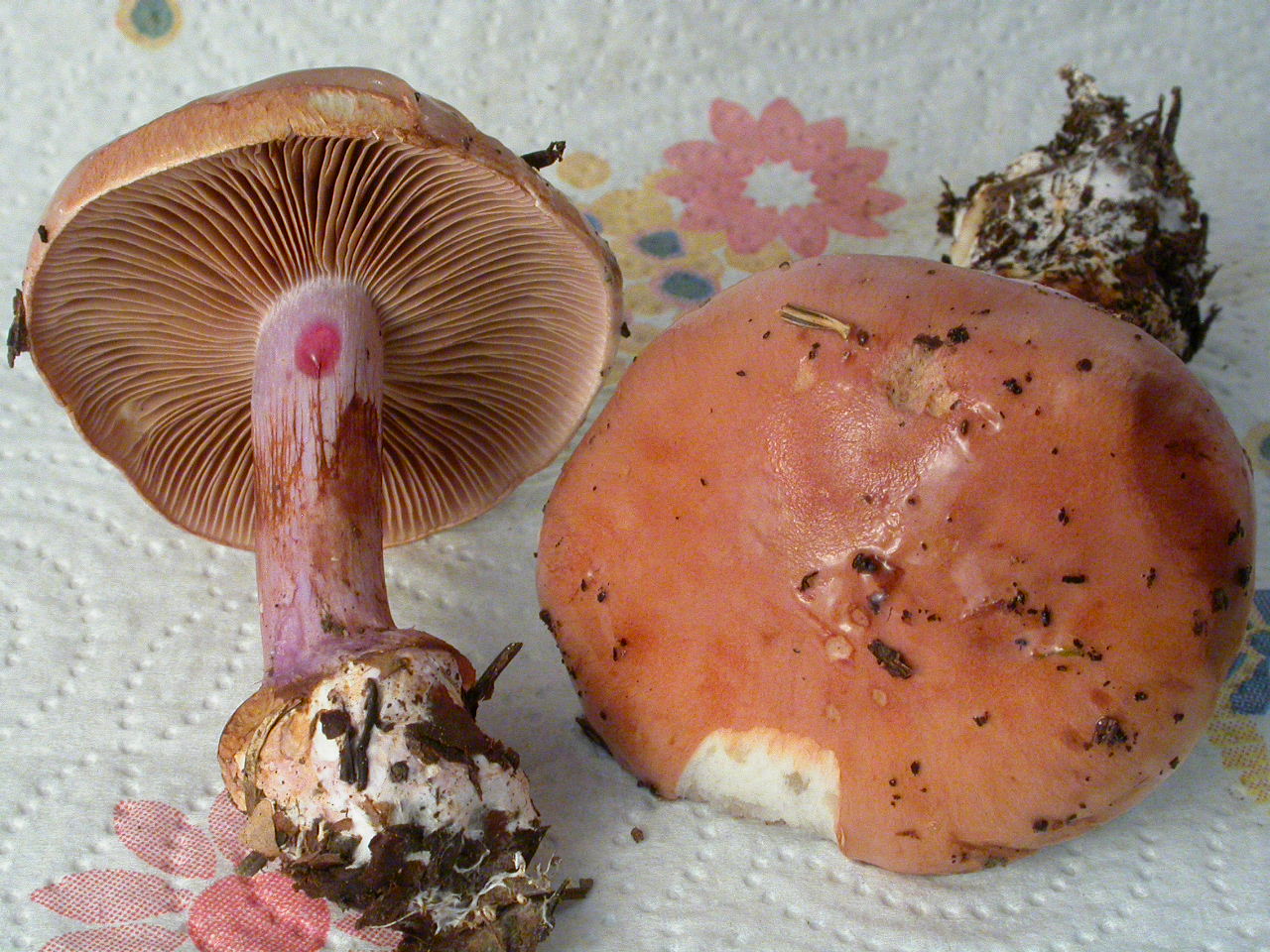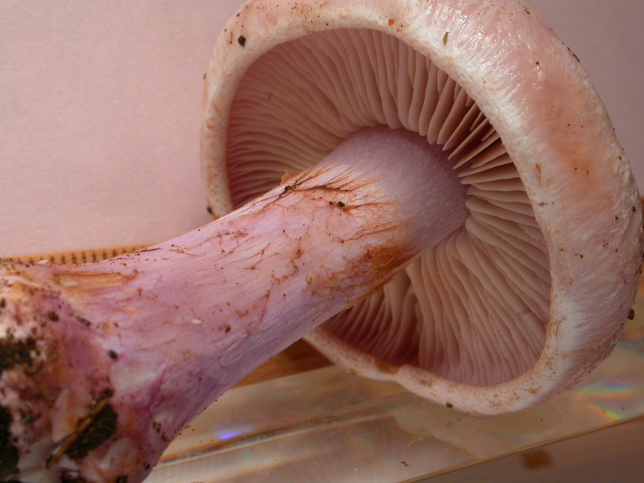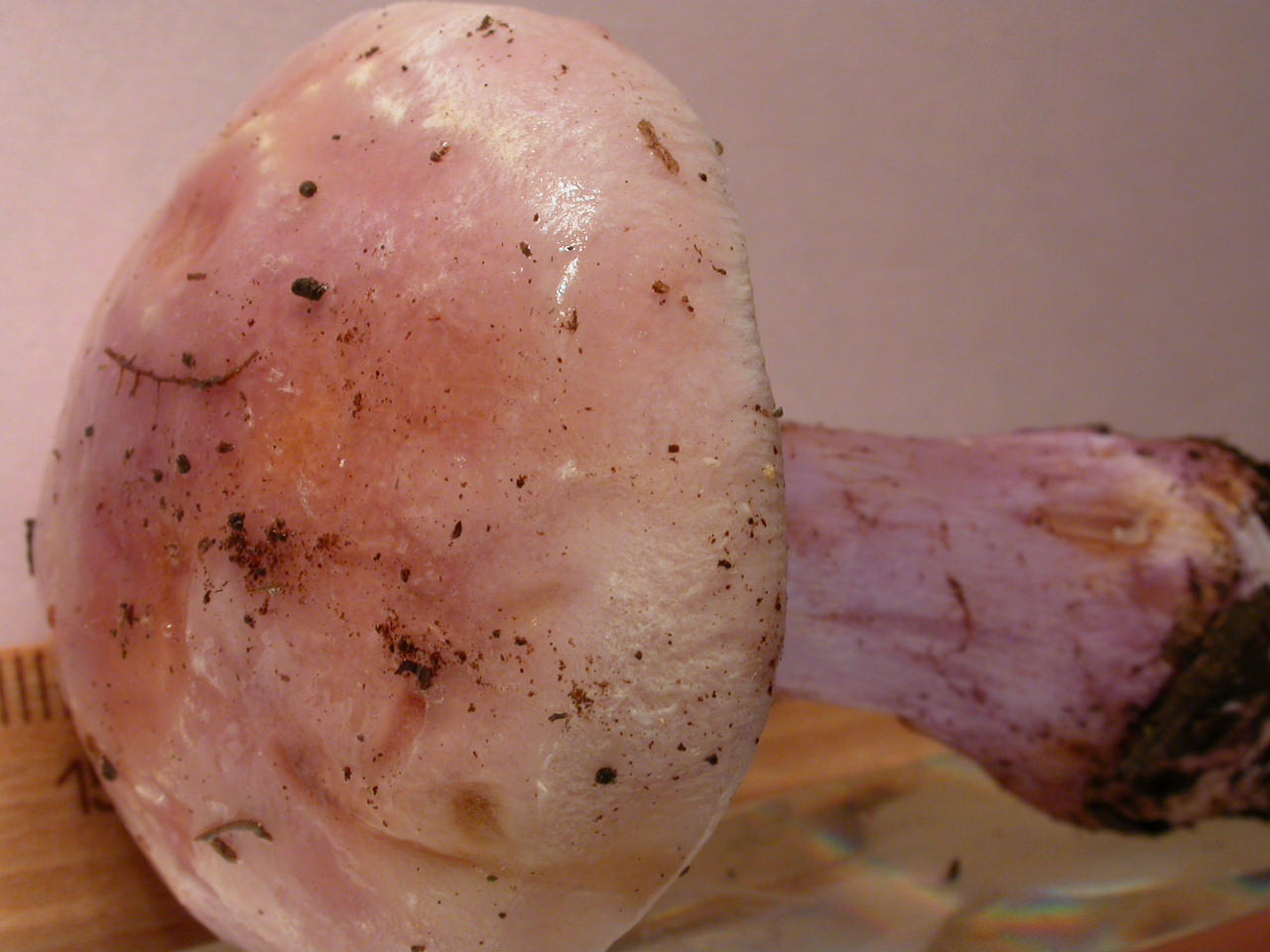 | Stipe | lilacin au sommet, rougeâtre vers le bulbe |