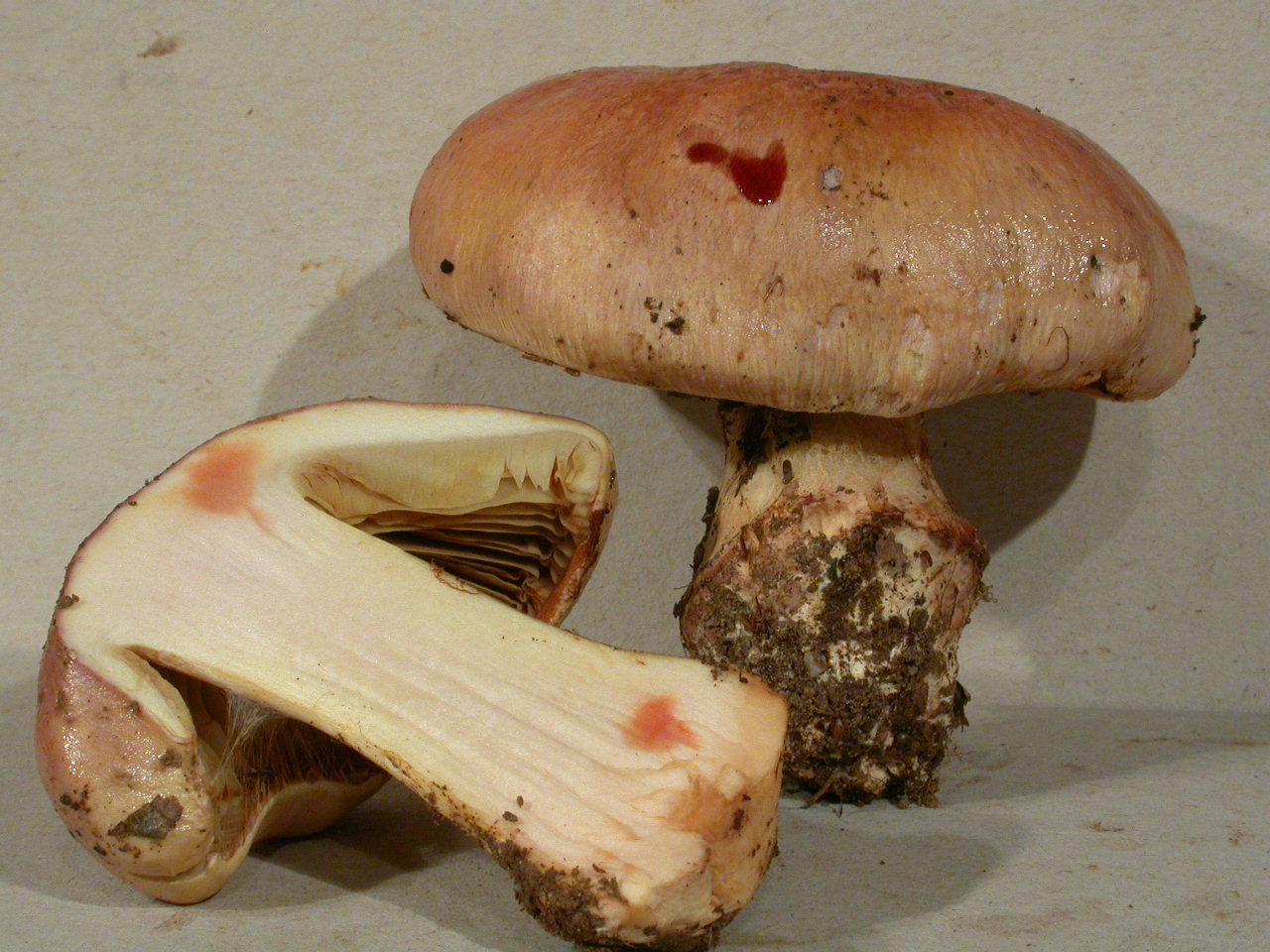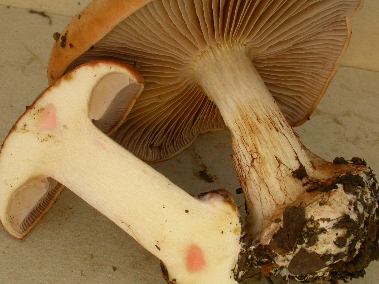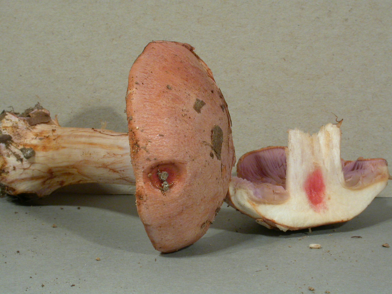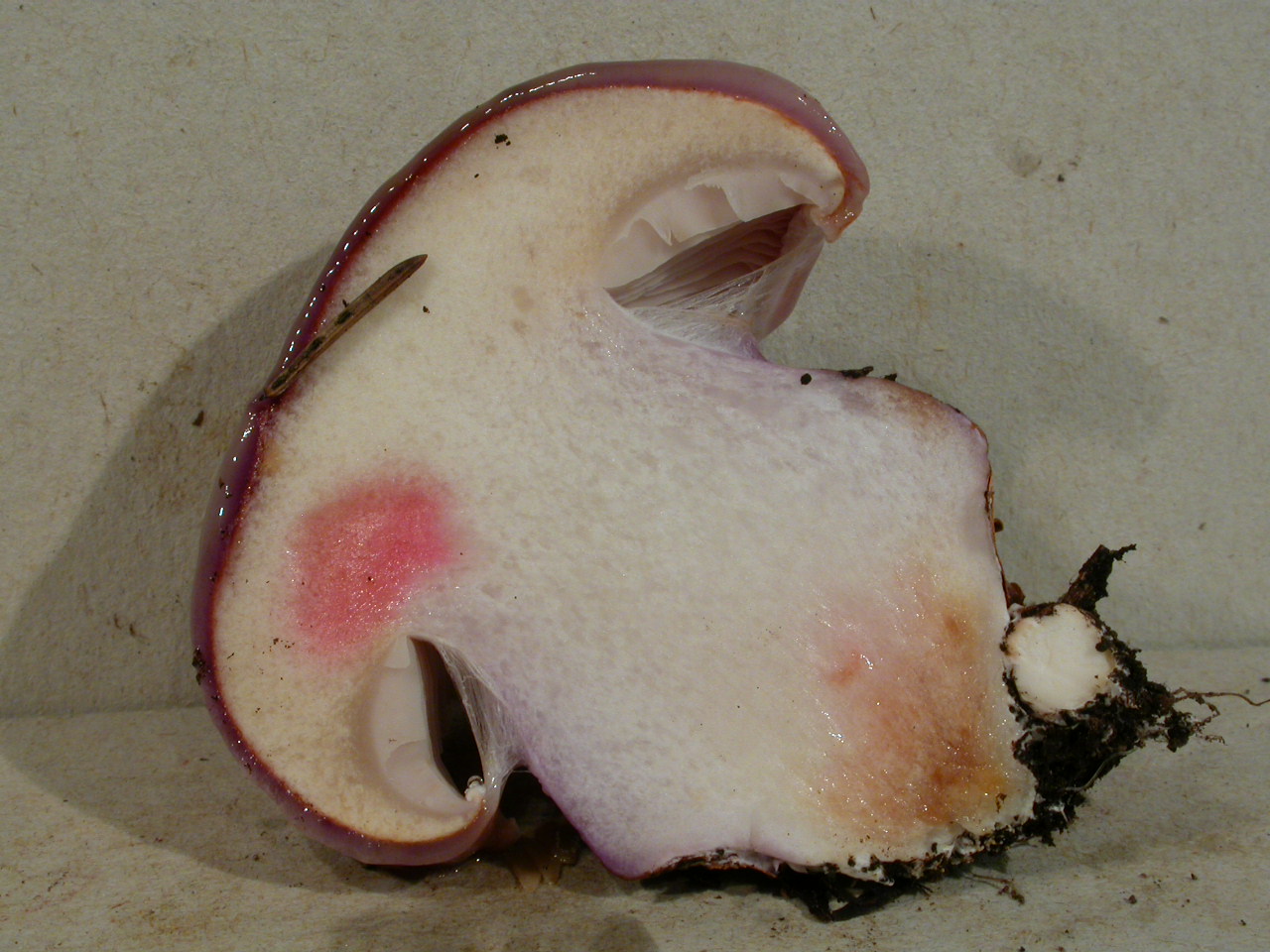 | Stipe | lilacin au sommet, rougeâtre vers le bulbe |