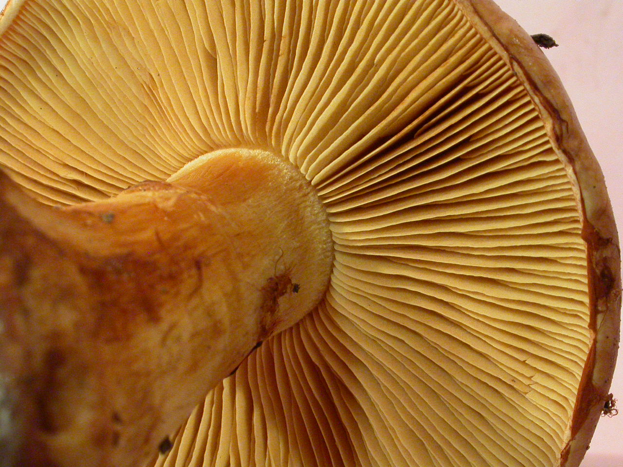 | Stipe | jaune clair en haut, plus orangé en descendant, bourrelet brun rouge foncé |