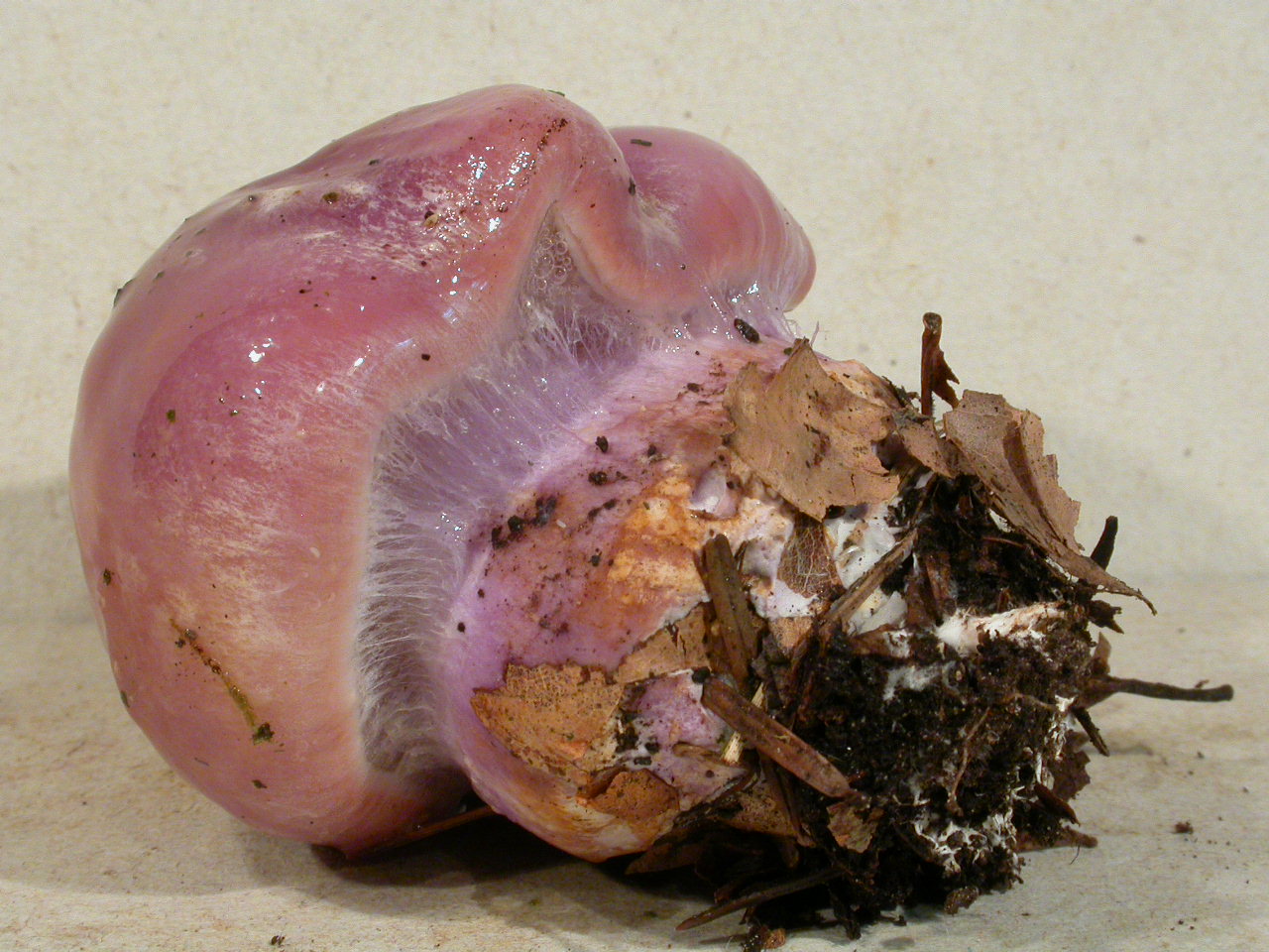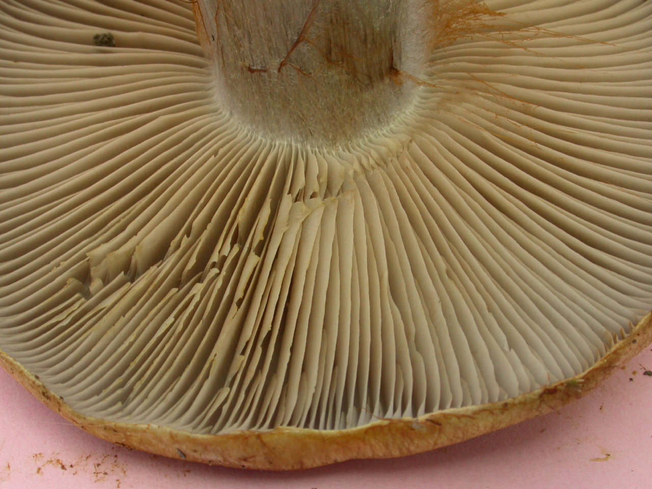 | Chapeau | rose fauvâtre, sans restes vélaires |