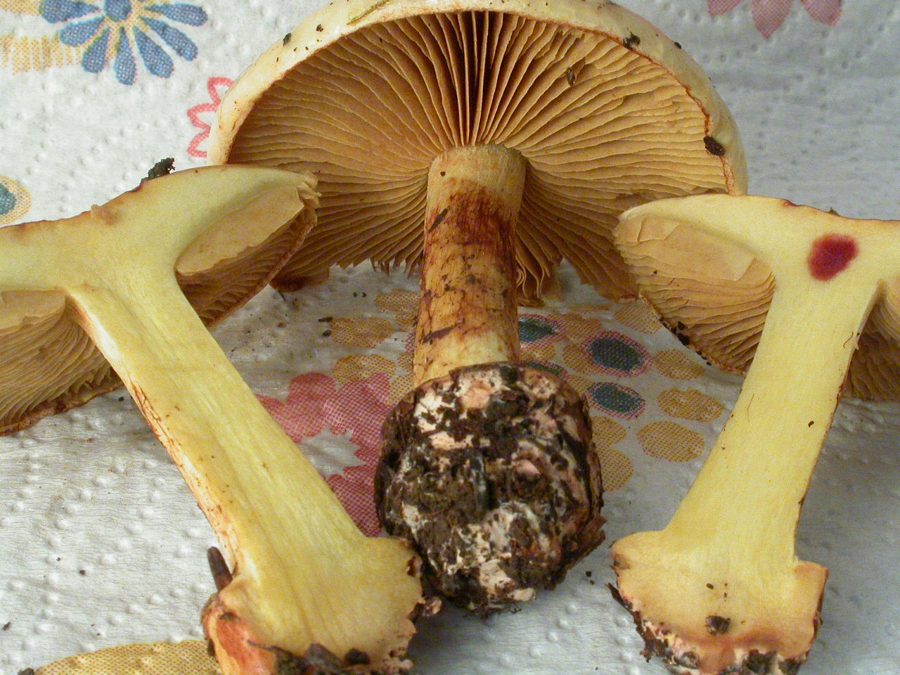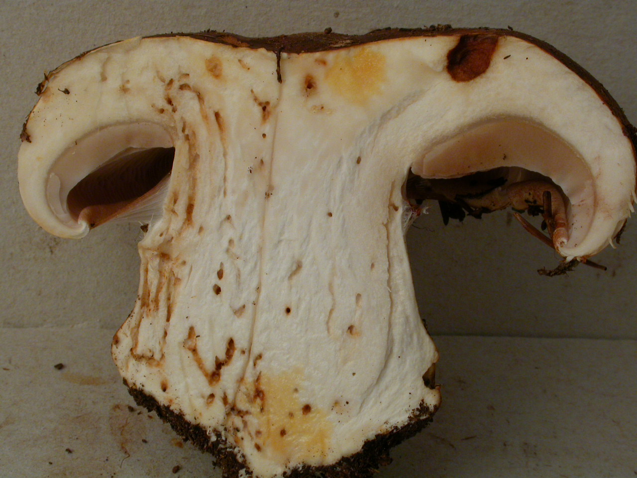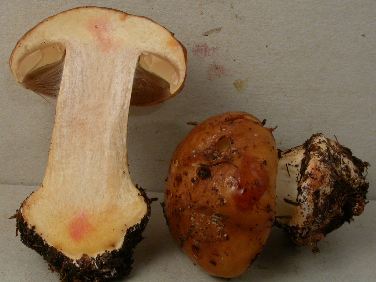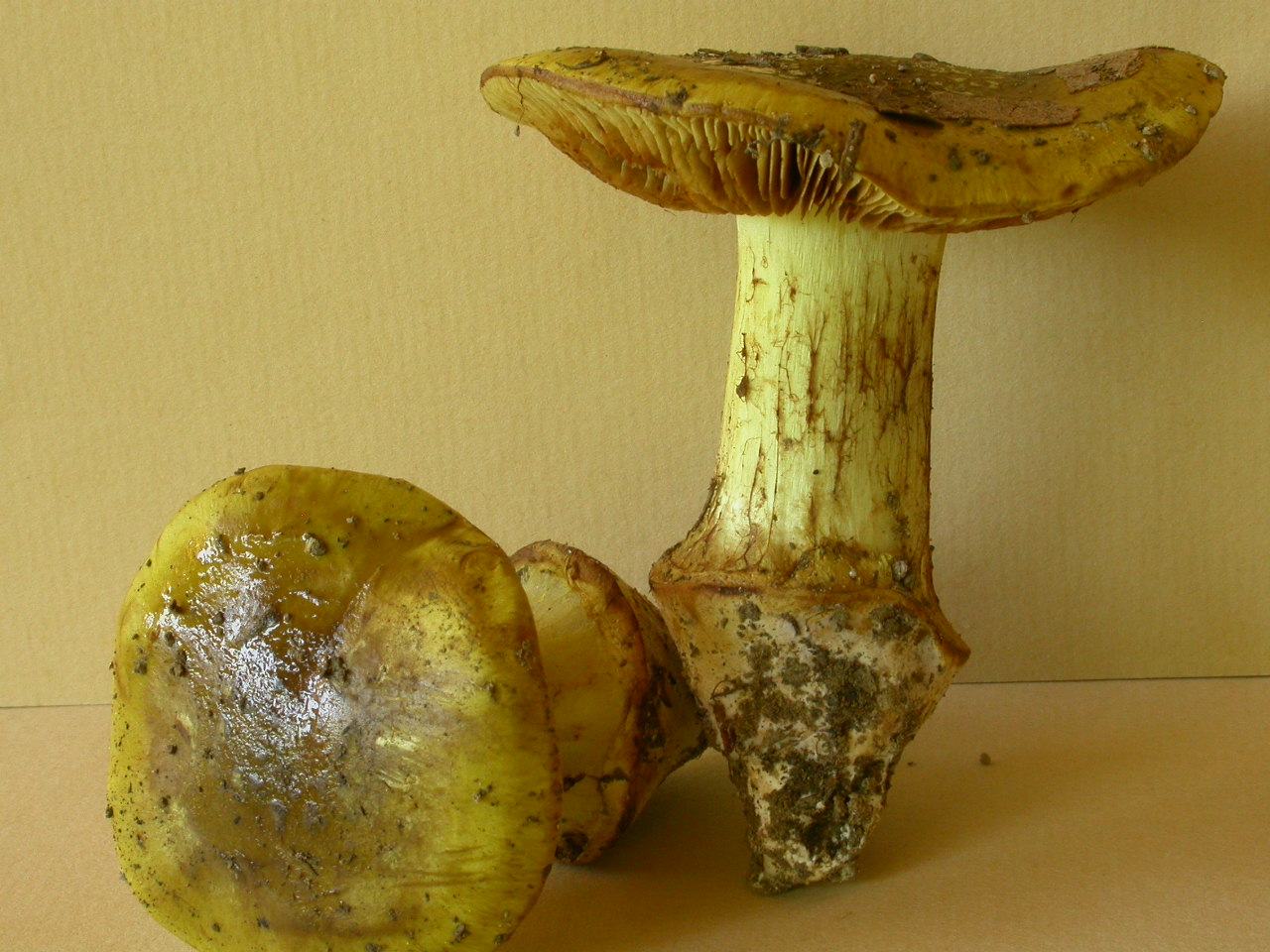| Stipe | blanc, bulbe imposant, voile jaune (?) |
