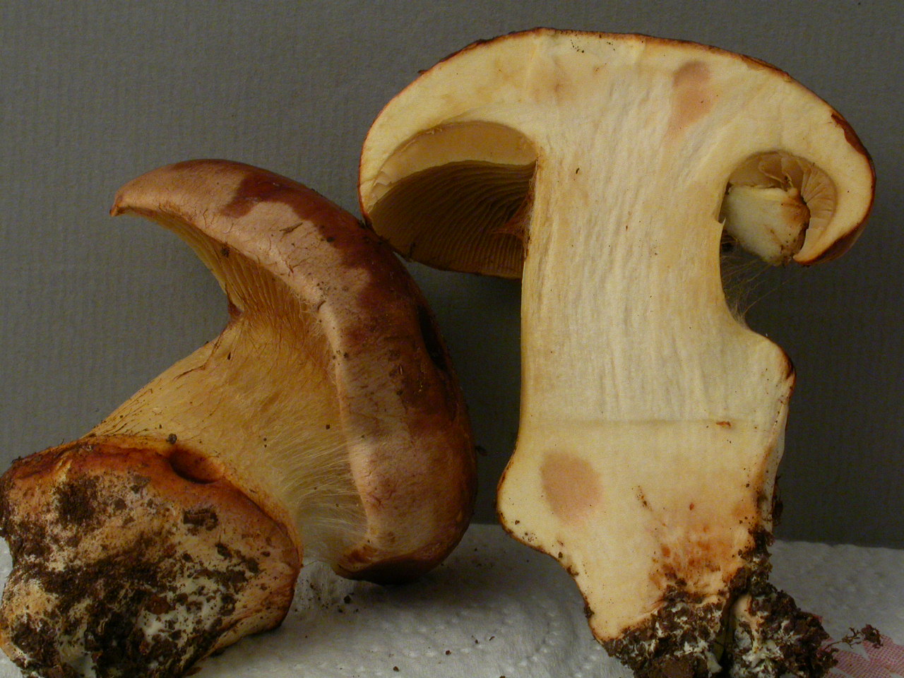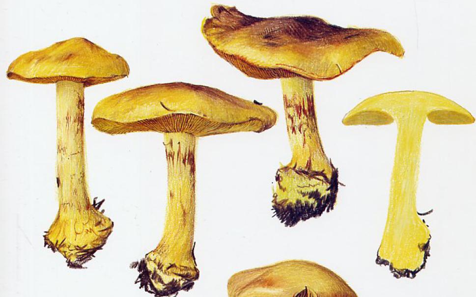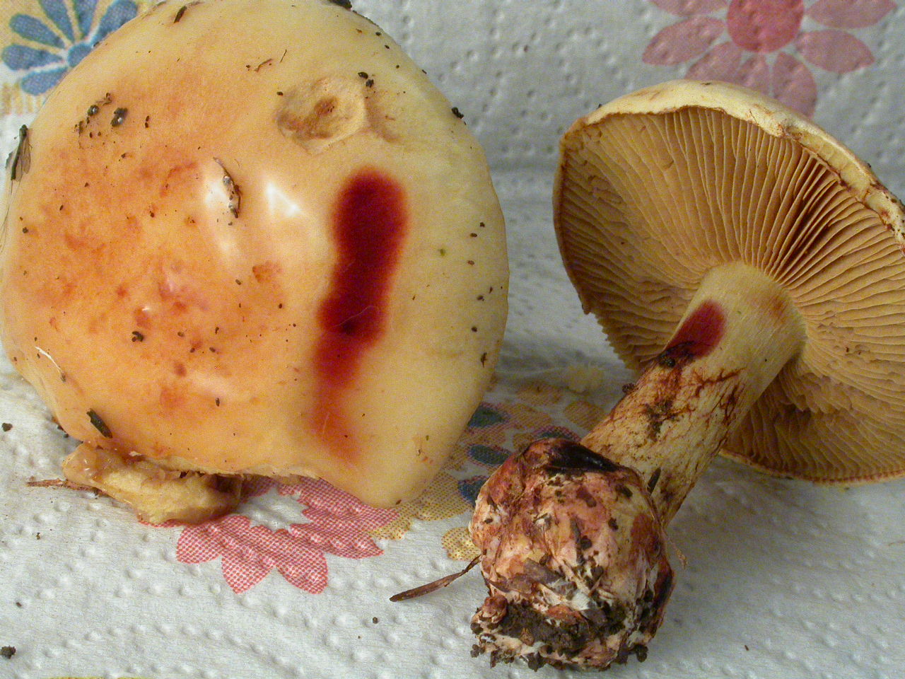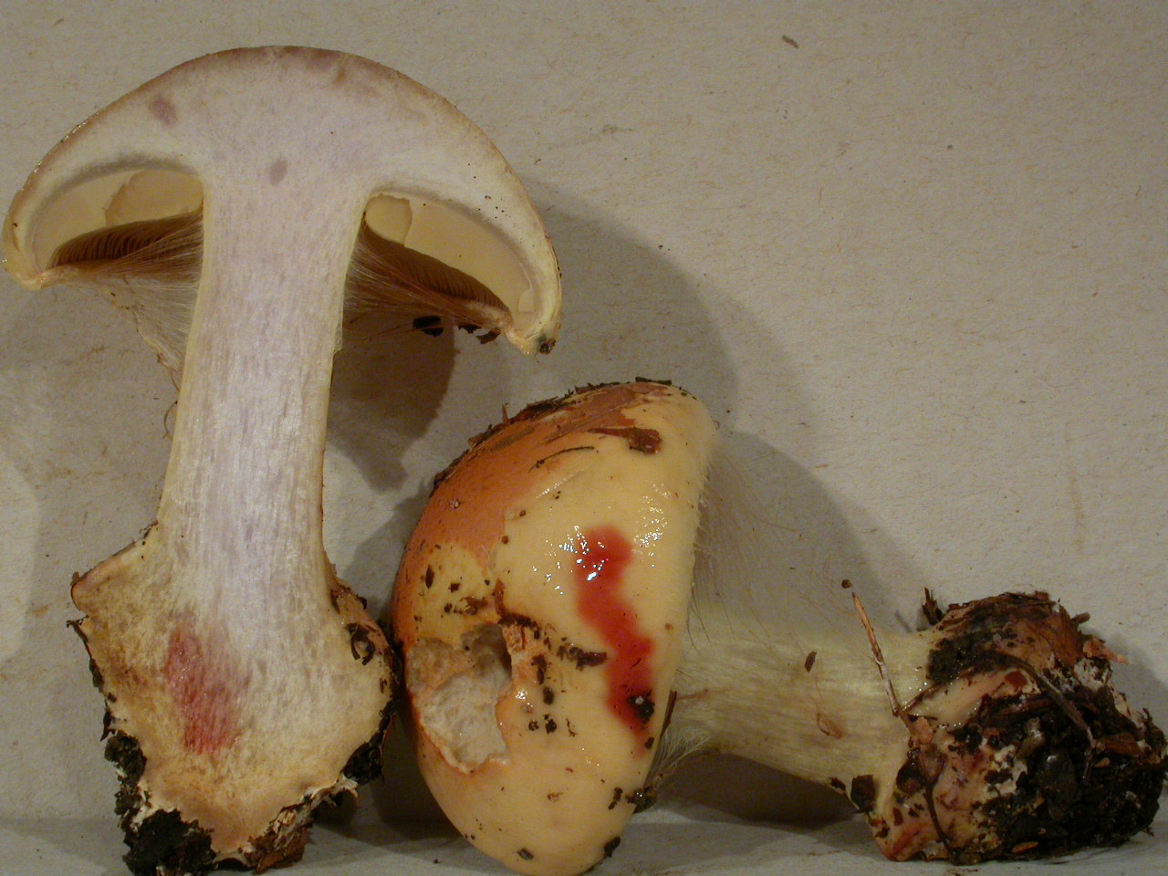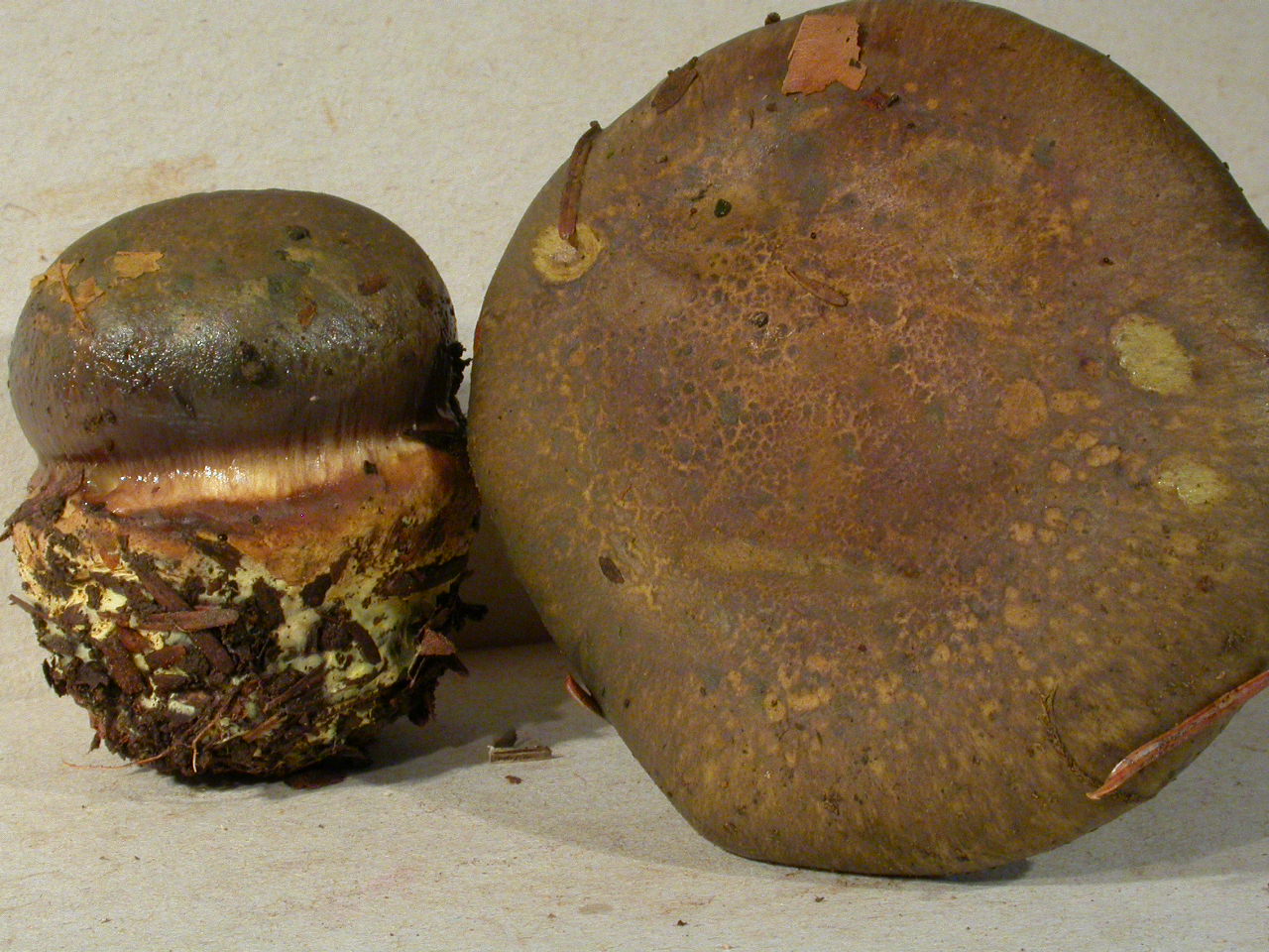 | Stipe | blanc, bulbe imposant, voile jaune (?) |