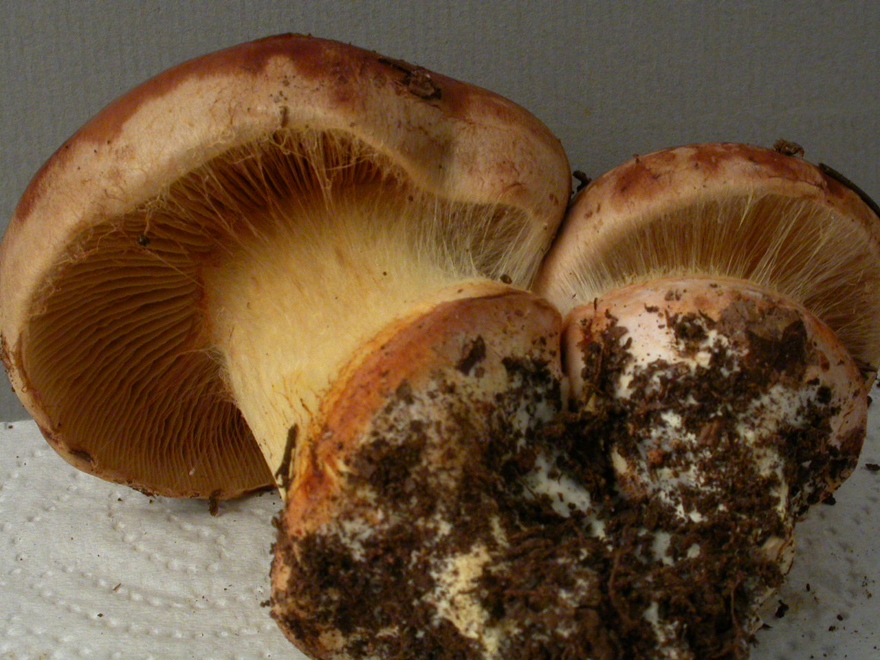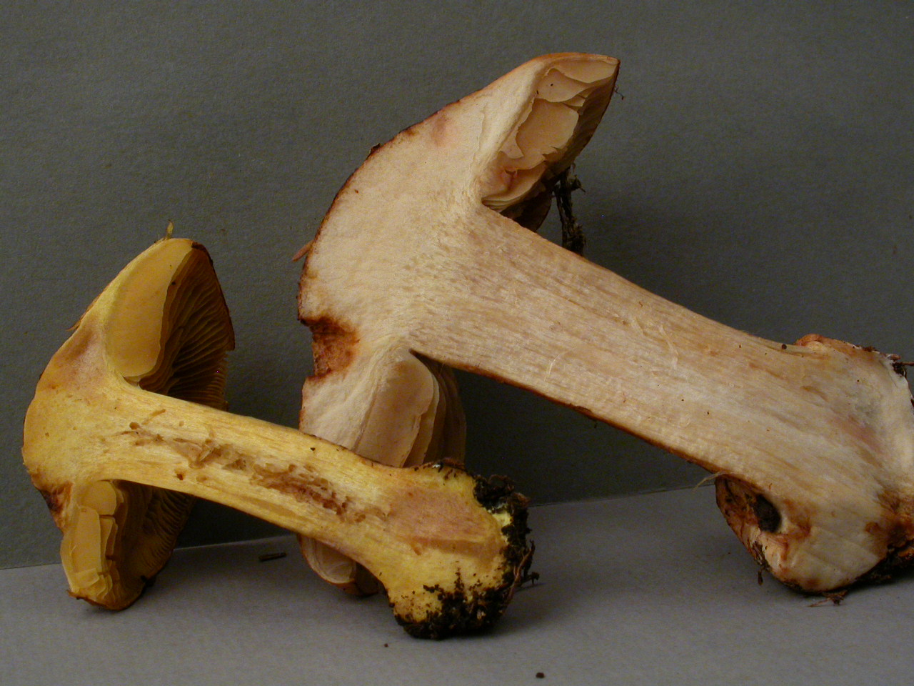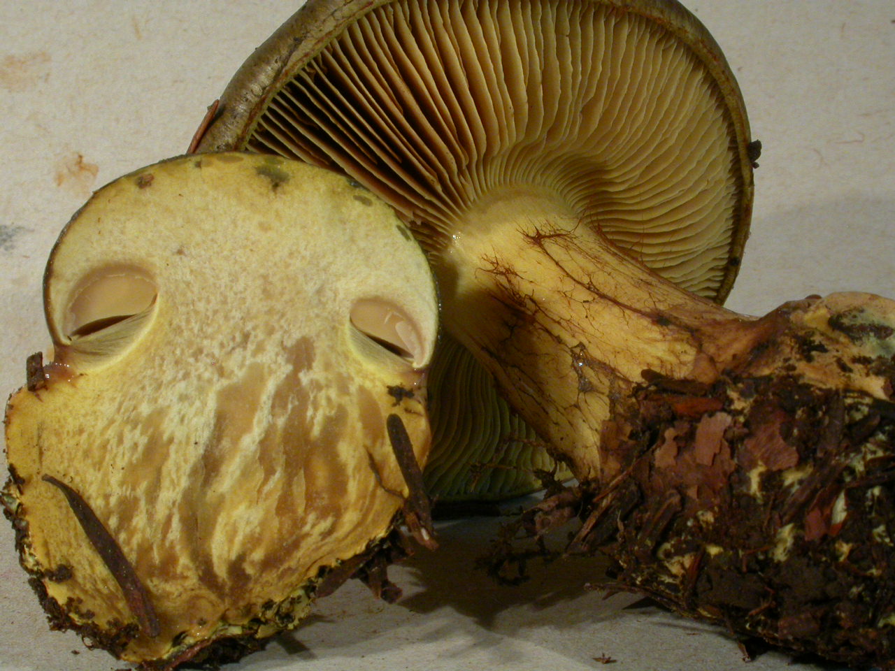| Stipe | jaune, voile noirâtre sur le bas |