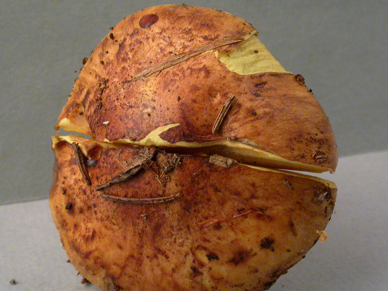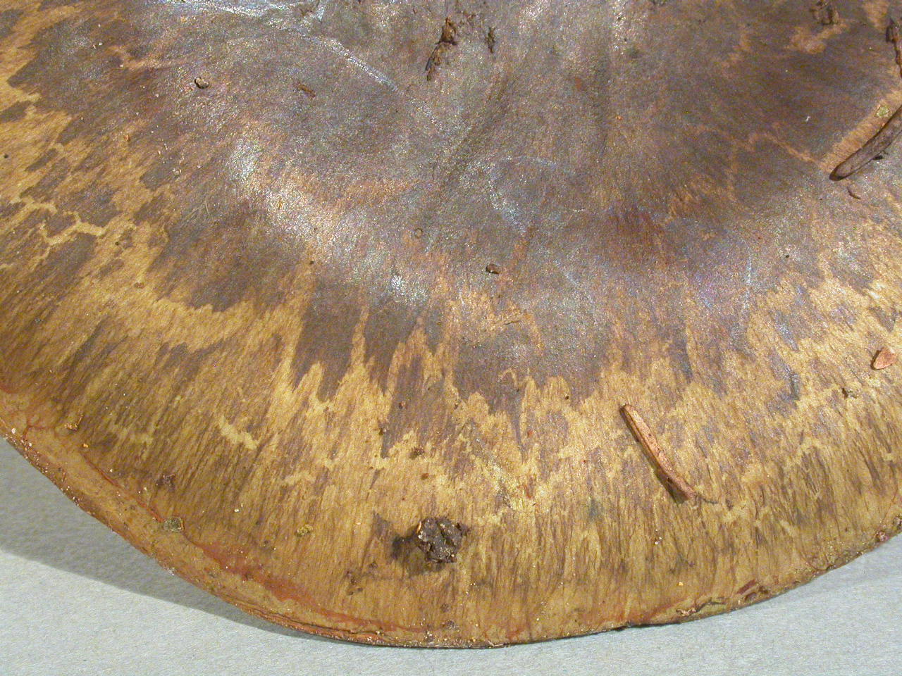 | Chapeau | rouge brunâtre, cuivré, parfois verdâtre, grisâtre au bord |
