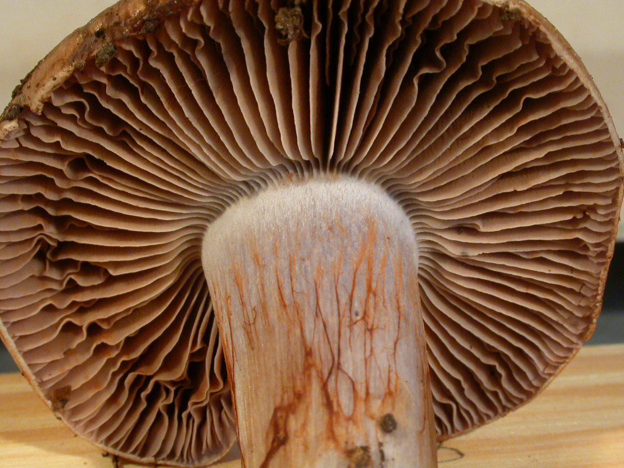 | Chapeau | bleu violet, fibrilles radiales |
