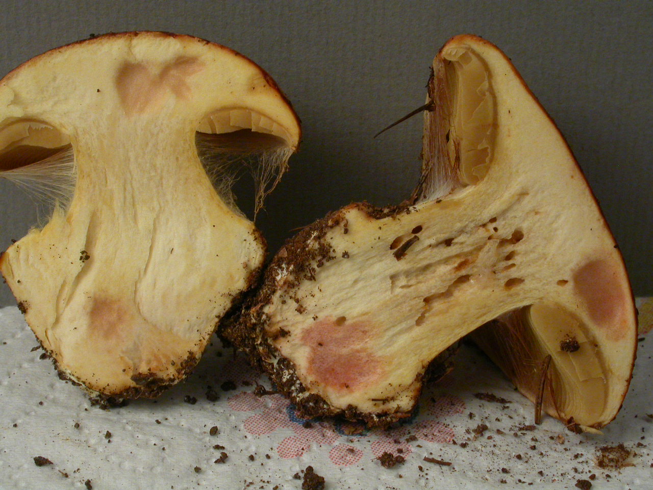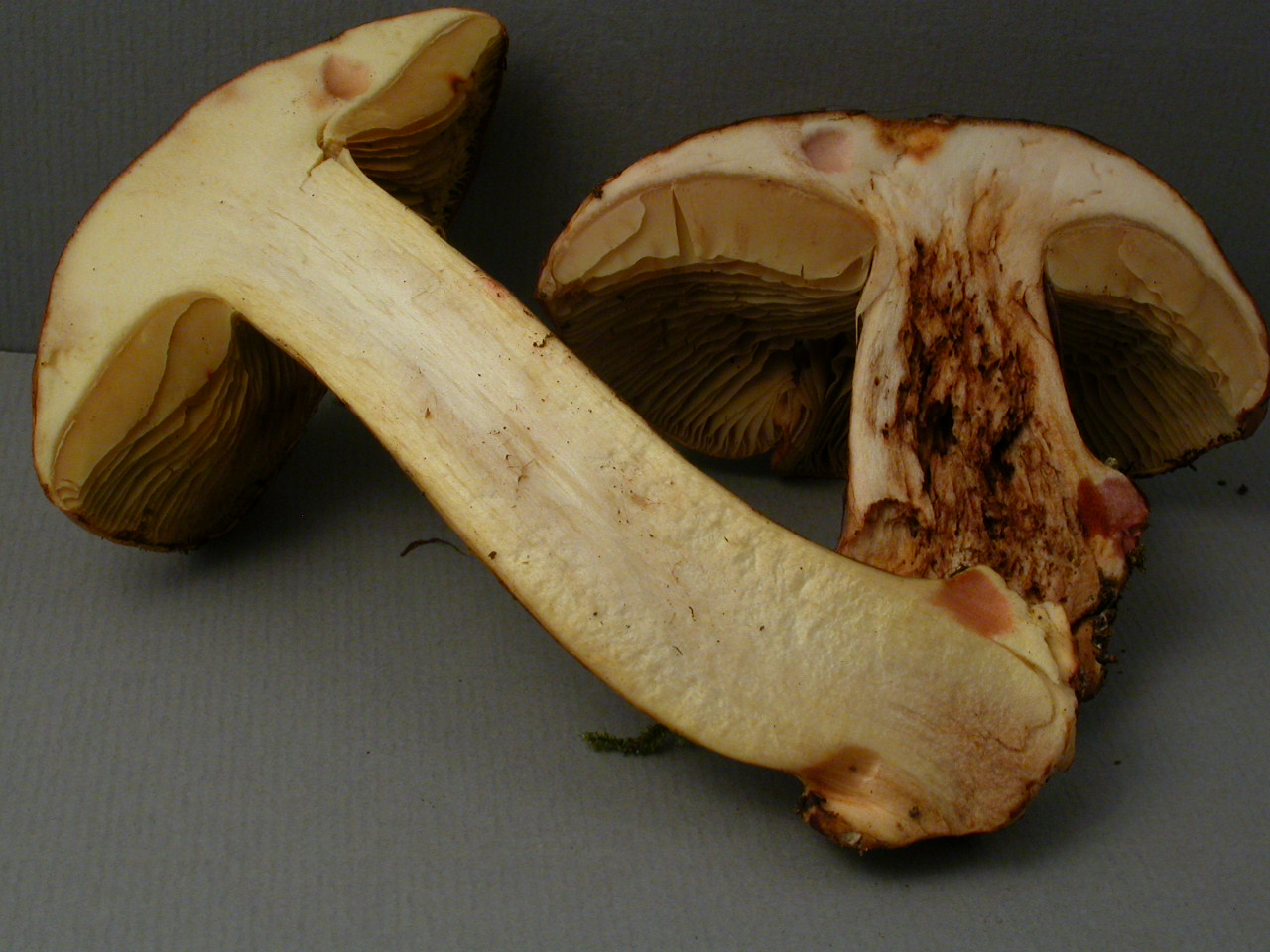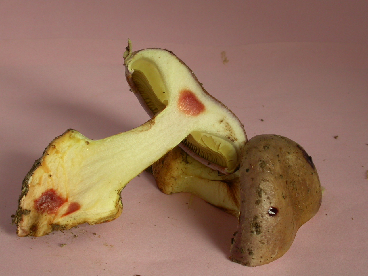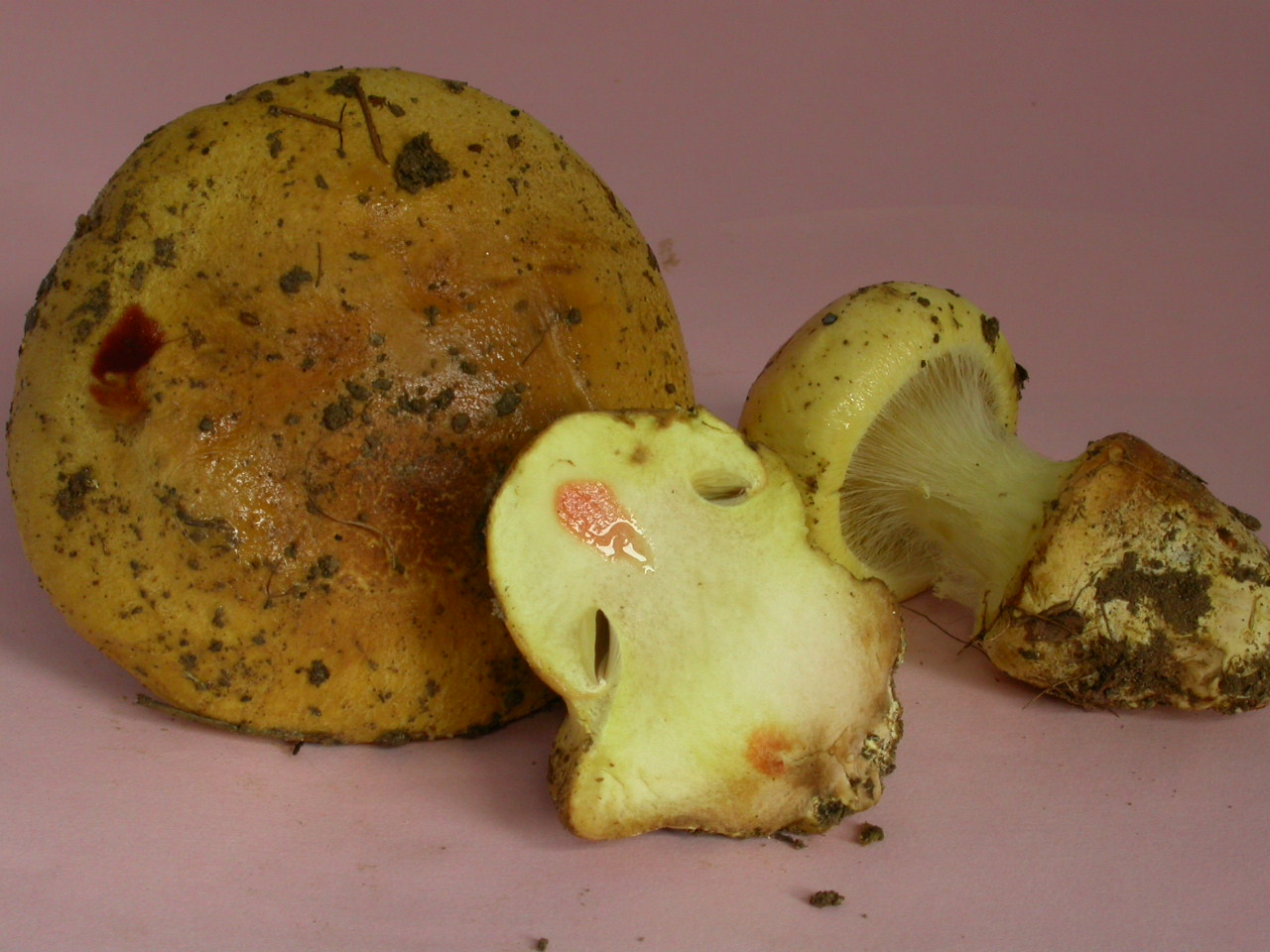 | Stipe | Jaune olivâtre, rougeâtre sur le bulbe |