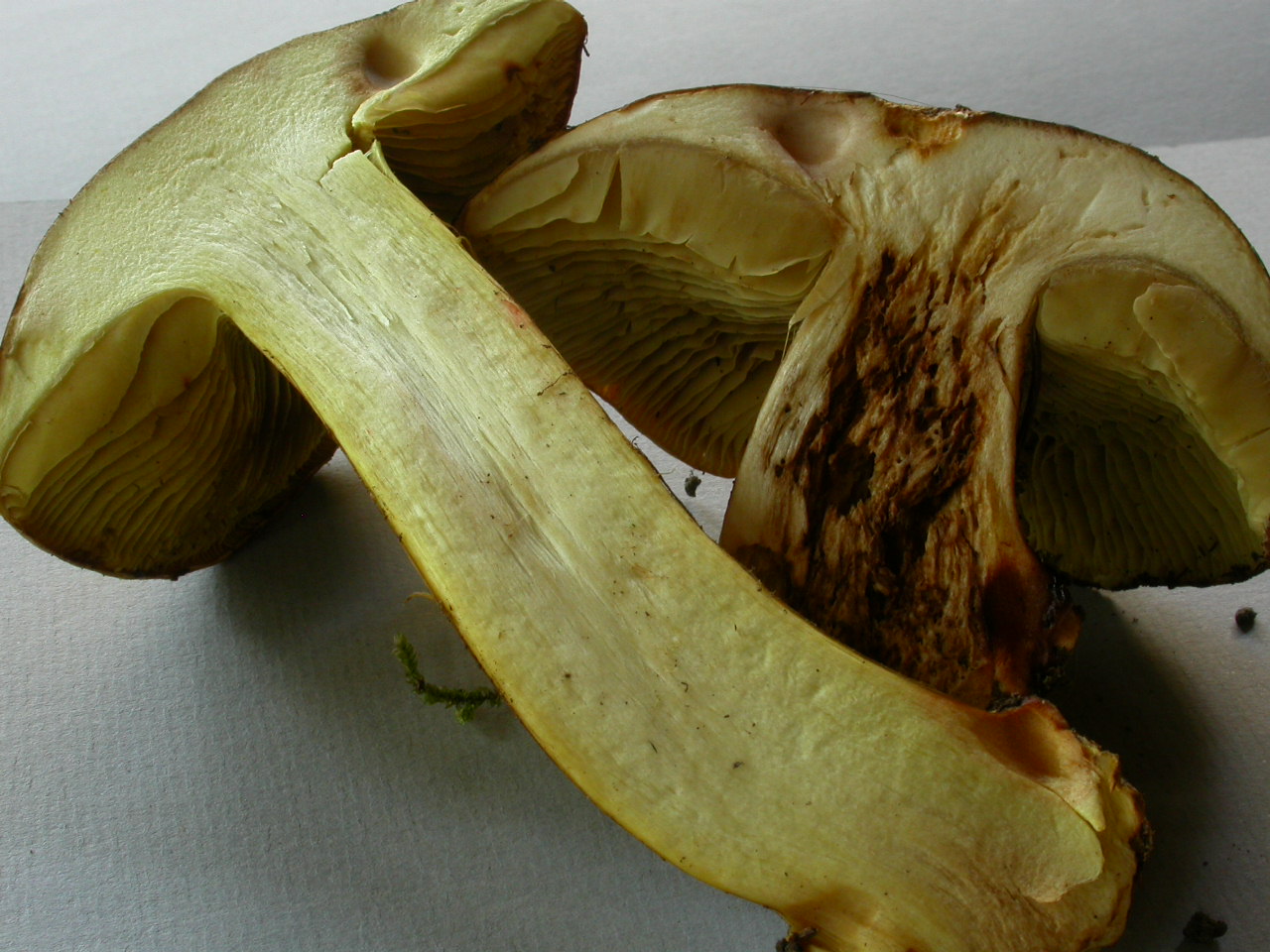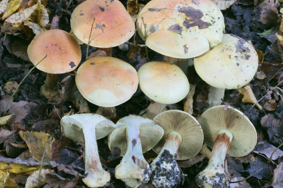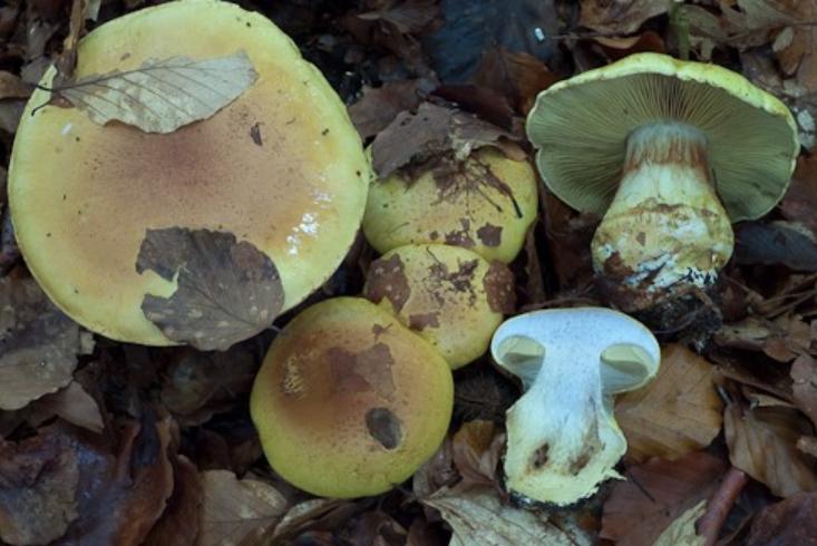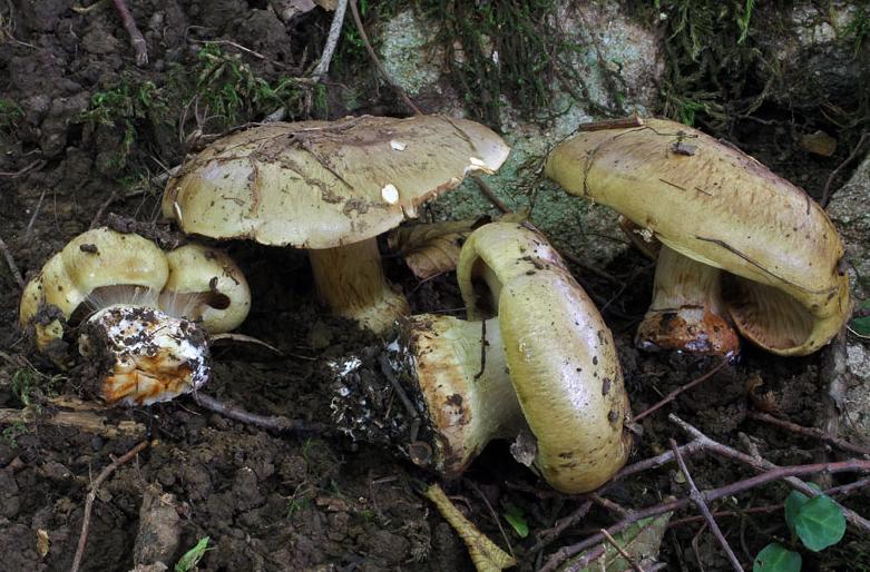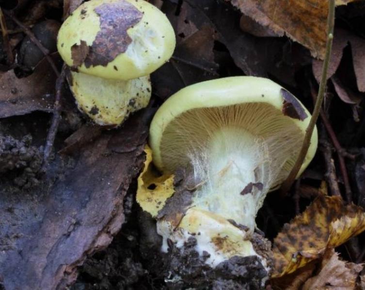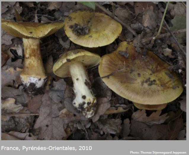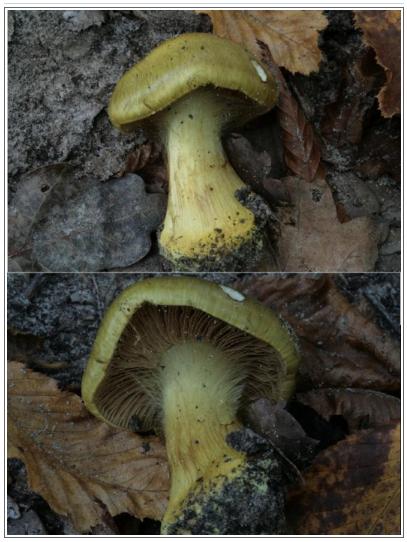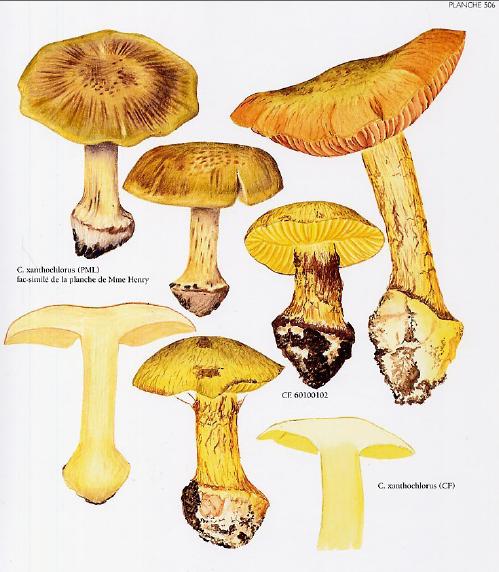 | Chair | Blanchâtre chapeau, jaune stipe. Odeur lessive. |