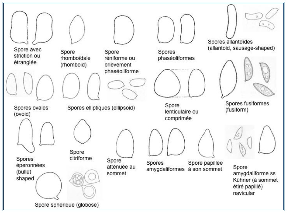 | Spores | amygdaliformes-subcitriformes, grosses verrues, 10-11.5 x 5-7 μ |