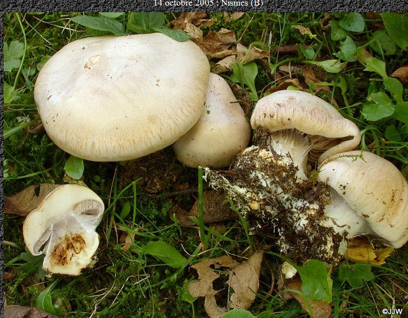 | Chair | blanchâtre (chapeau), lilacine (haut du stipe), grisâtre ochracée (bulbe) |