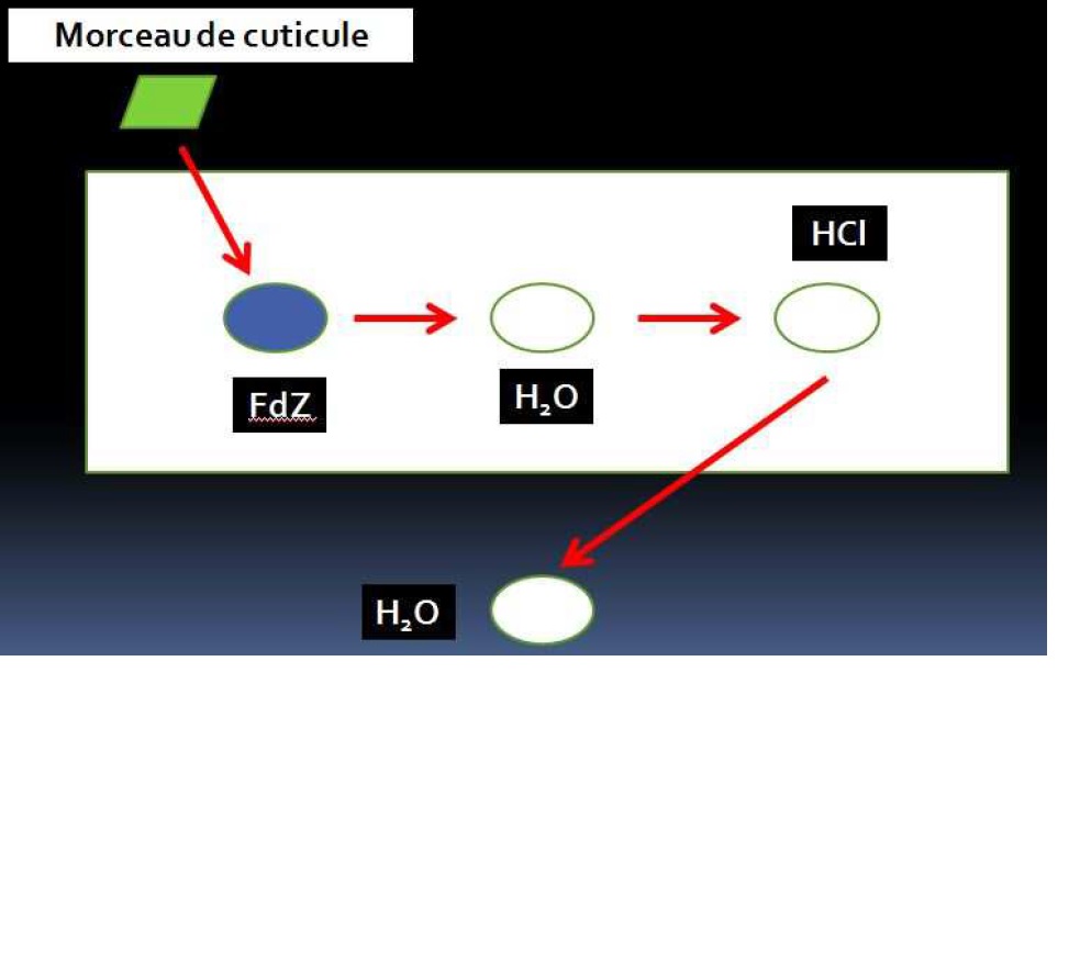 - bout de cuticule (scalp) + Fuschine (5') >> lavage >> observation dans HCl.