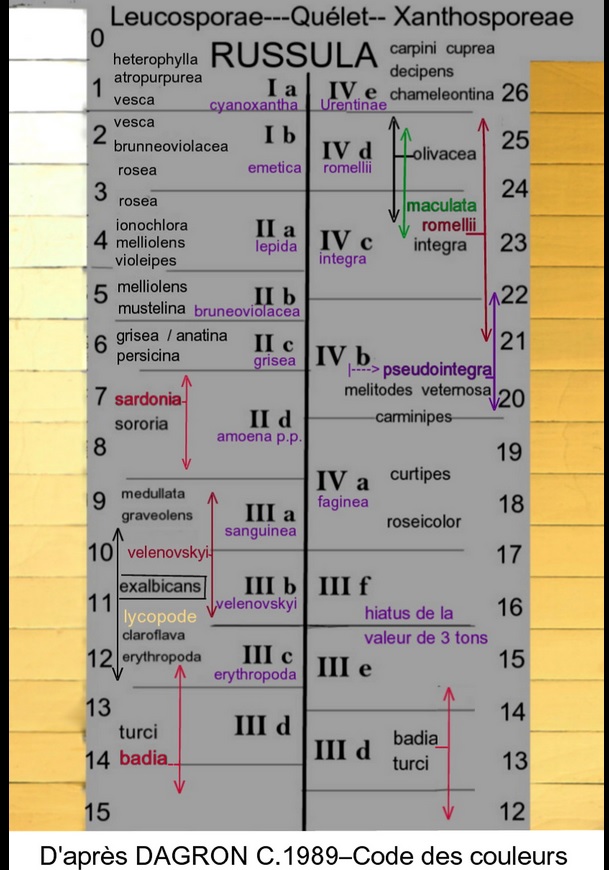 Définir que l'on a entre ses mains une Russule est très facile même aux débutants (chair cassante, sphérocytes ou sphérocystes ), la placer correctement dans une section est autrement difficile: