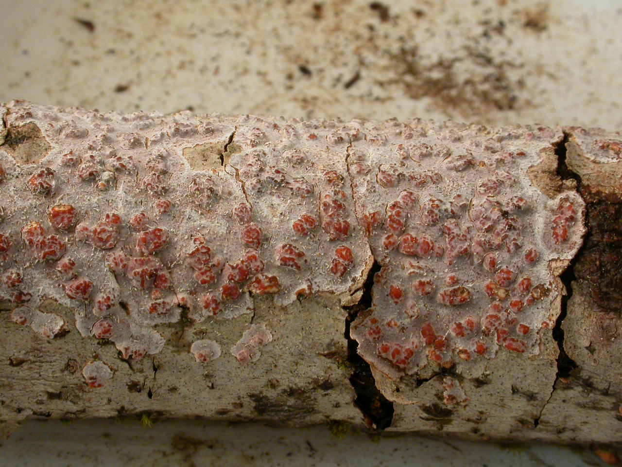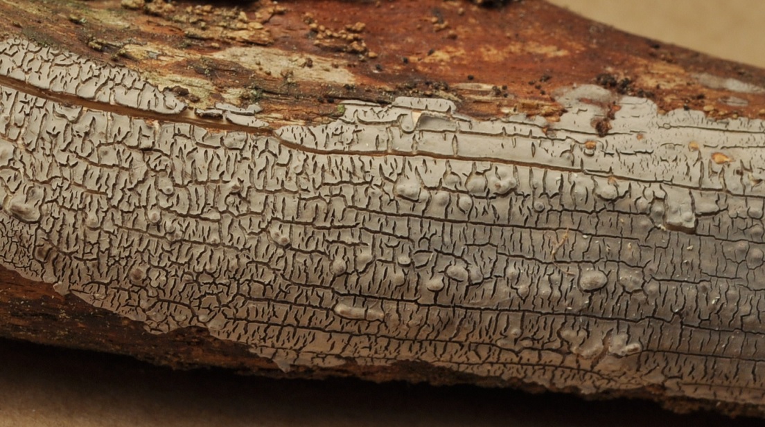 Spores : L= 3-3.2 μ, e ~ 1 μ Même origine, même tronc que récolte précédente. La forme des spores: "strongly curved, blunt ends, biguttulate" correspond à S.lenis selon Niemela & al., par contre les dimensions sporales comme le nb de pores/mm, sont celles de S.vulgaris ! Confirmé par B.Rivoire consulté.