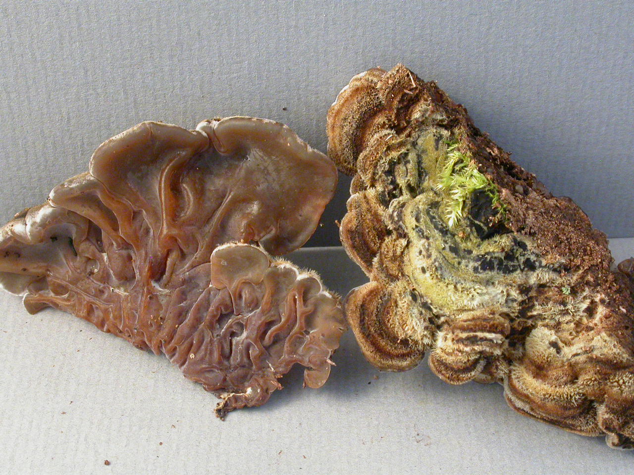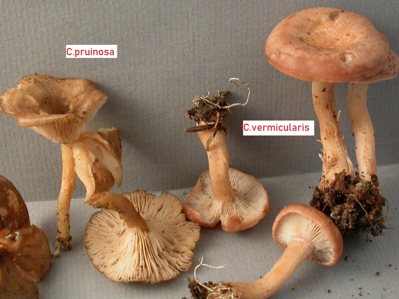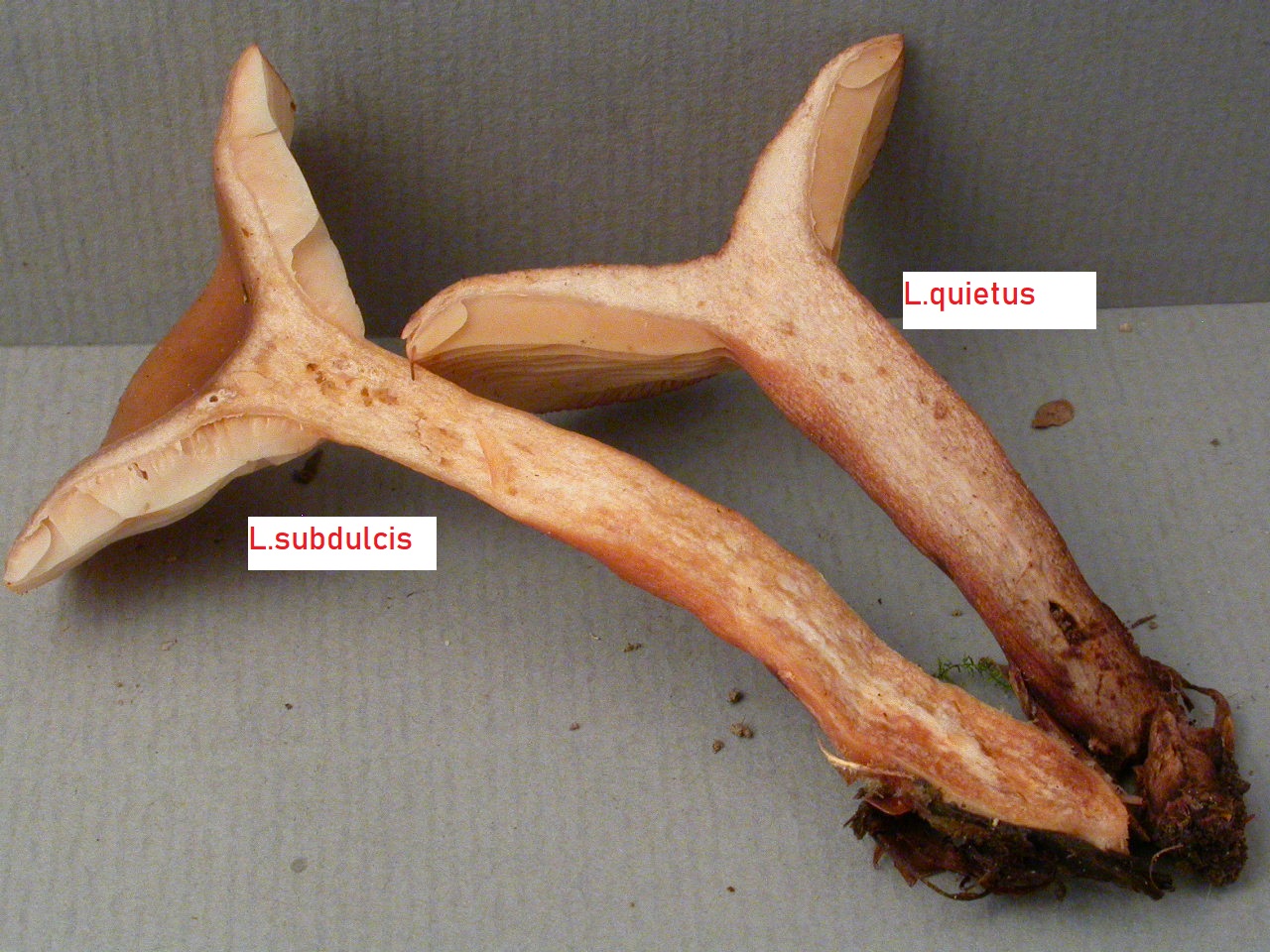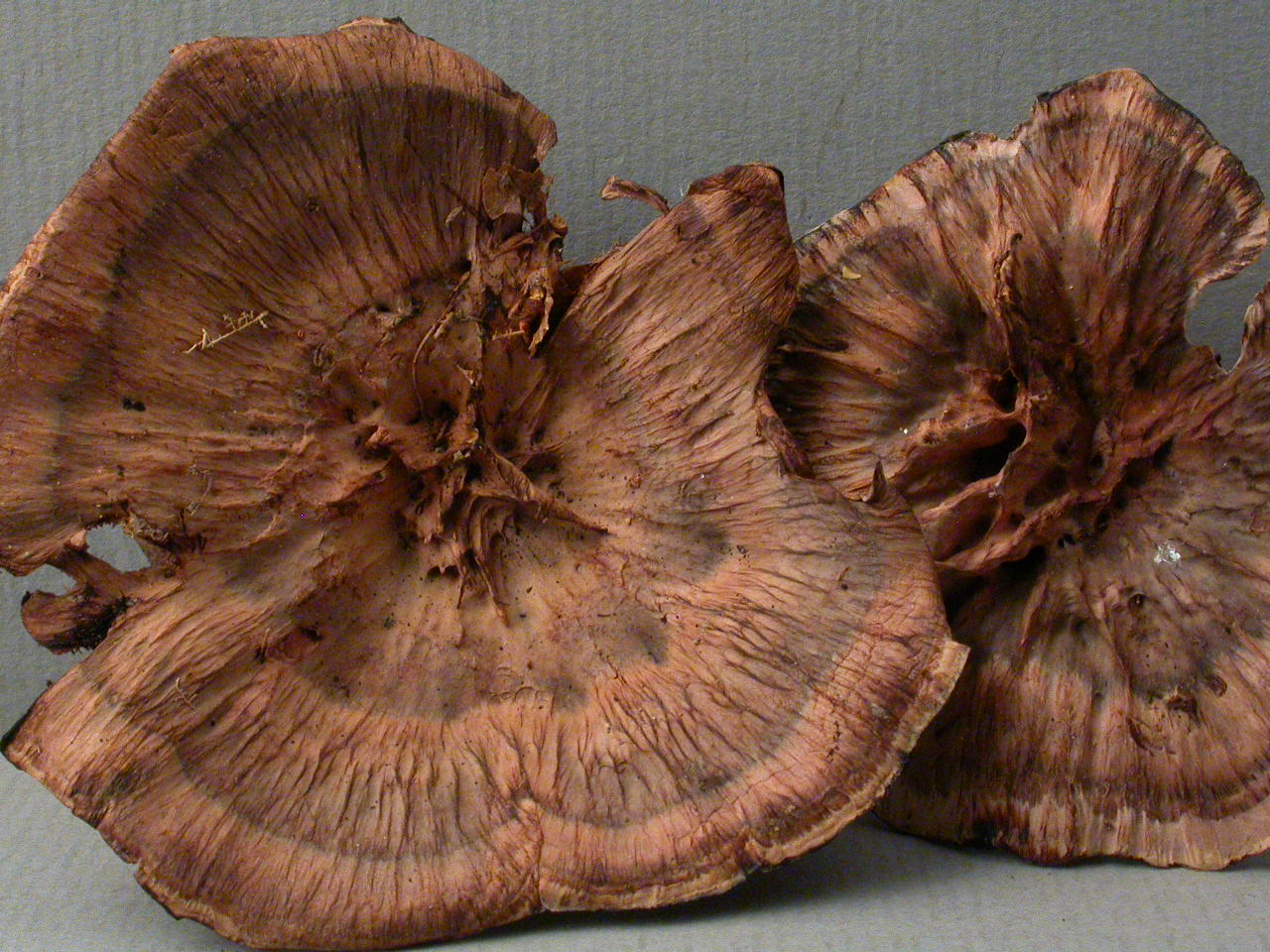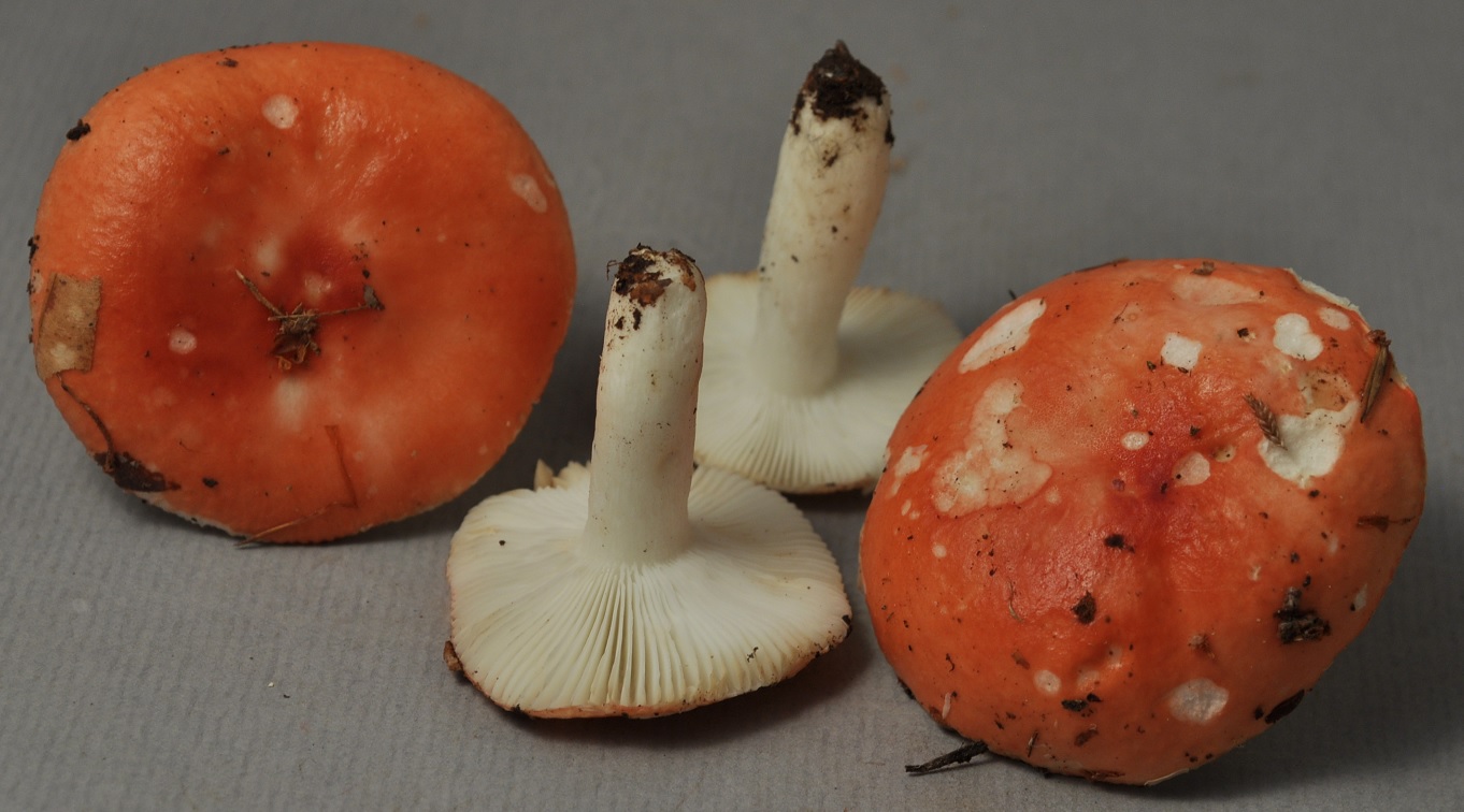 voir, CD8-F7 32. Φ 90 et 103 mm. Les couleurs du chapeau sont différentes, le rouge a disparu sur la deuxième par dilution, il reste qq teintes rougeâtres vers la marge. Lames âcres, l/t 6/10 mm, peu de chair vers la marge, chair seulement acrescente.