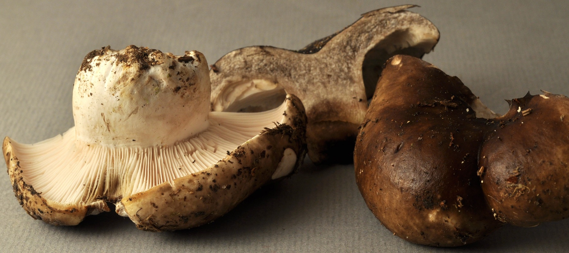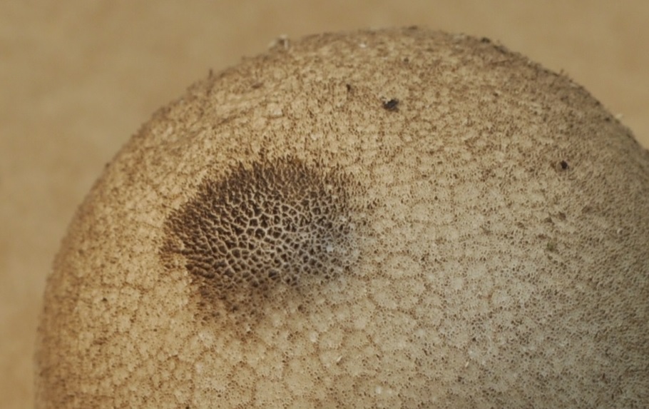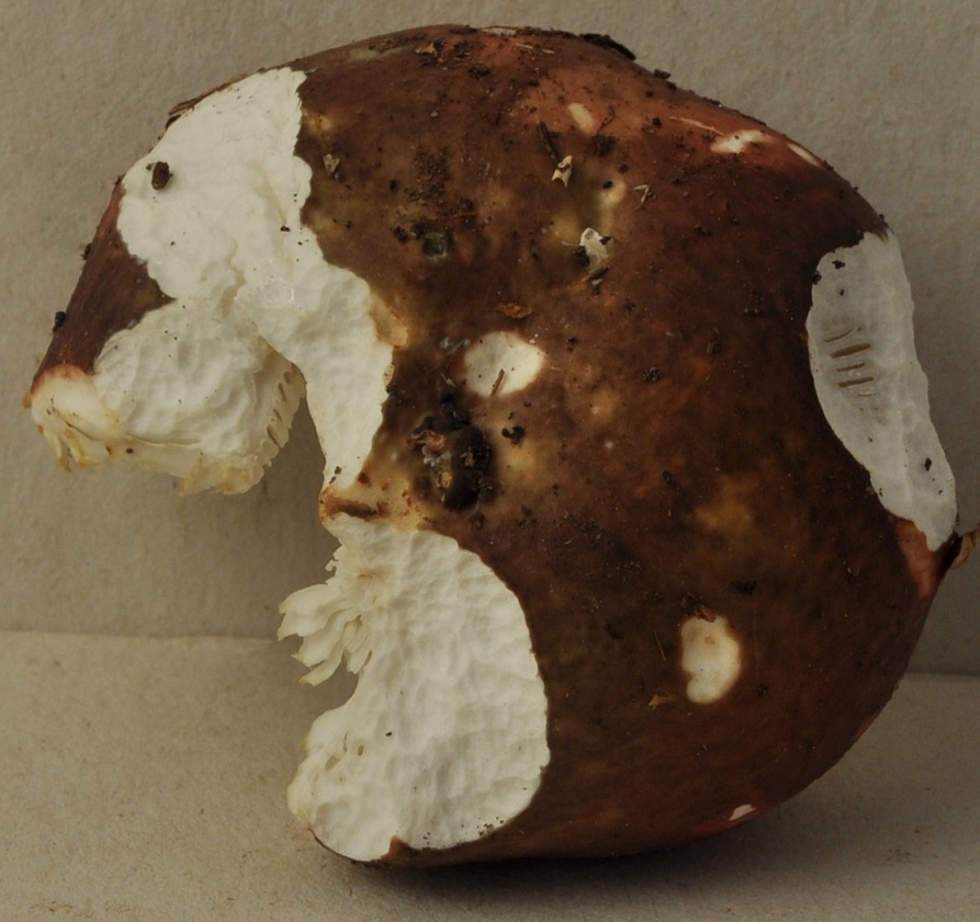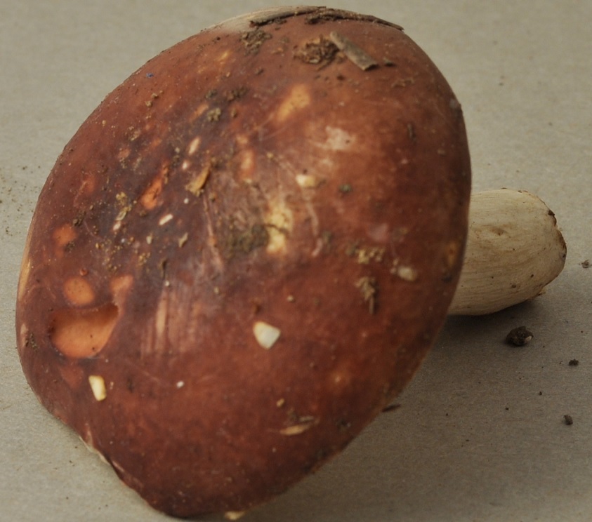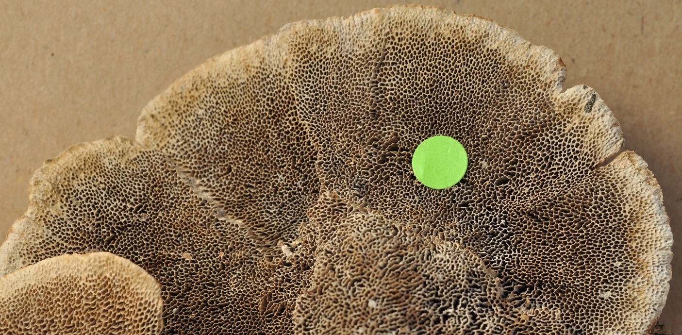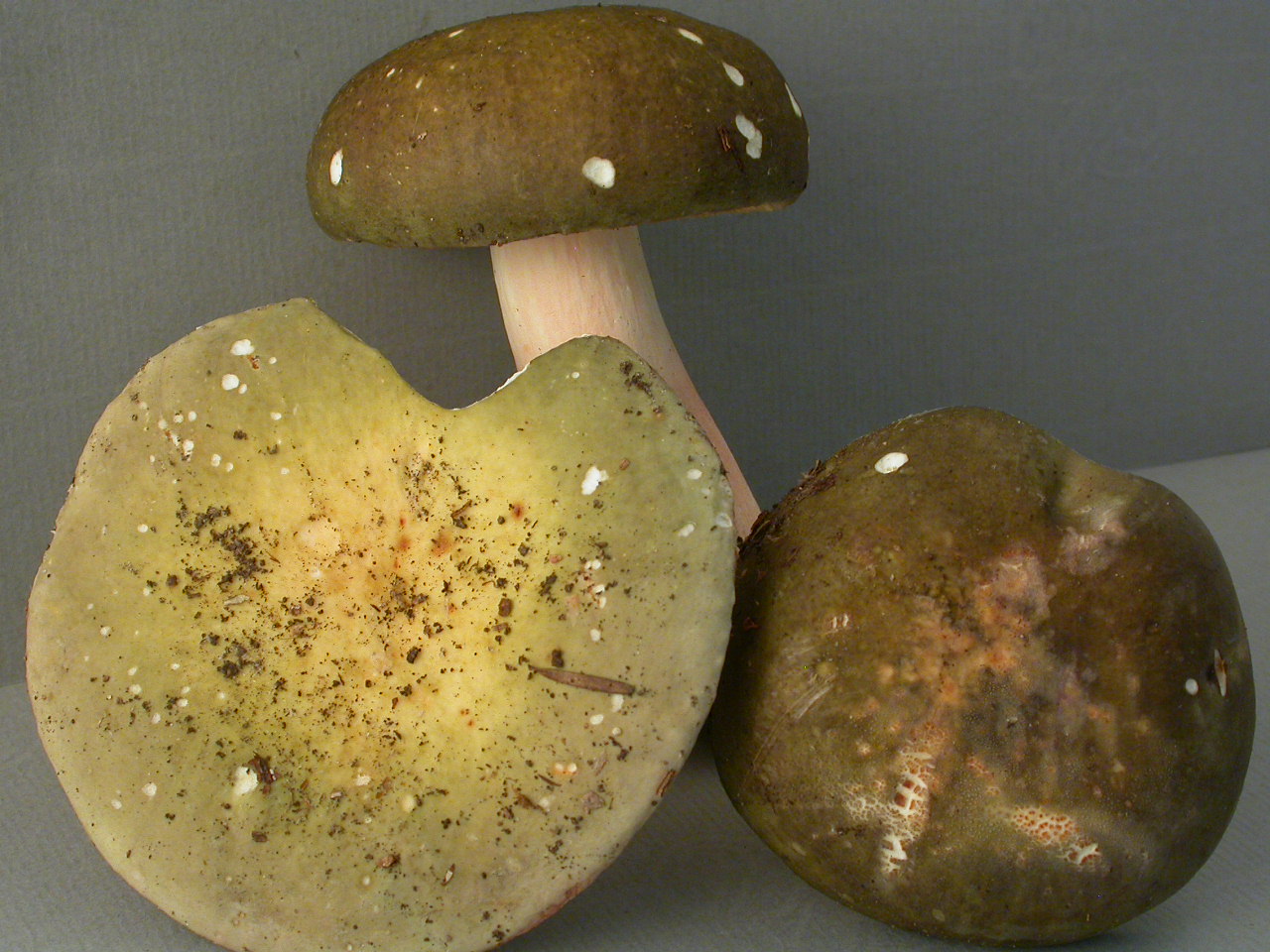 zoom, CD8-6 33. Gros exemplaires (~ 20 cm) observés sur site. Spores non lisses observées dans l'eau. Gléba devient jaune, subgléba reste blanche.