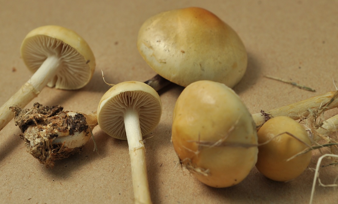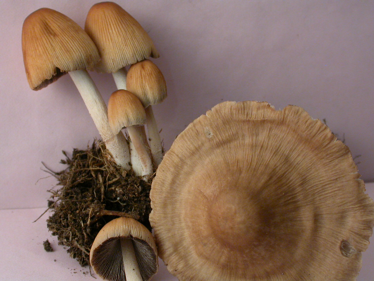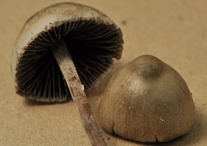 dessous, CD7-5 23/26, Photos avec Panaeolus acuminatus. A noter une différence essentielle dans l'attache des lames.