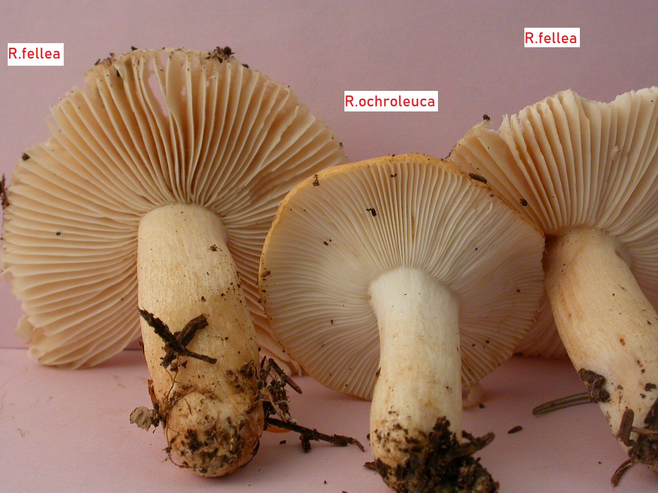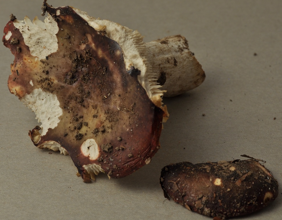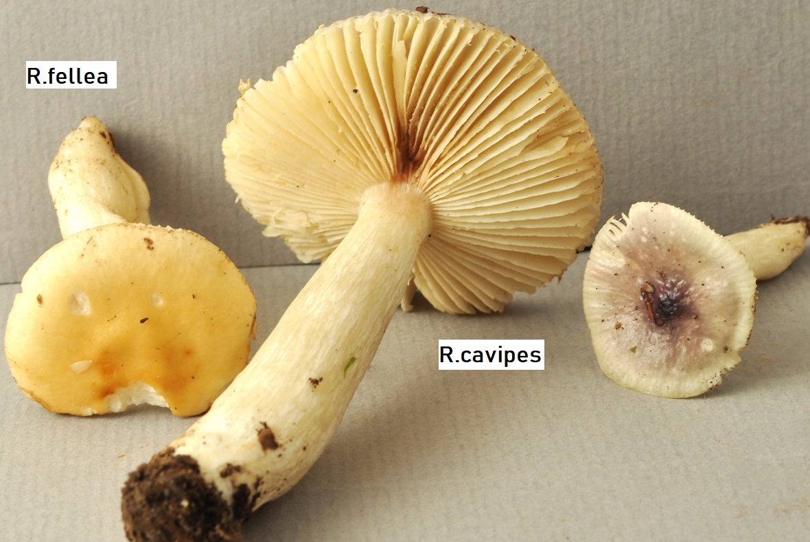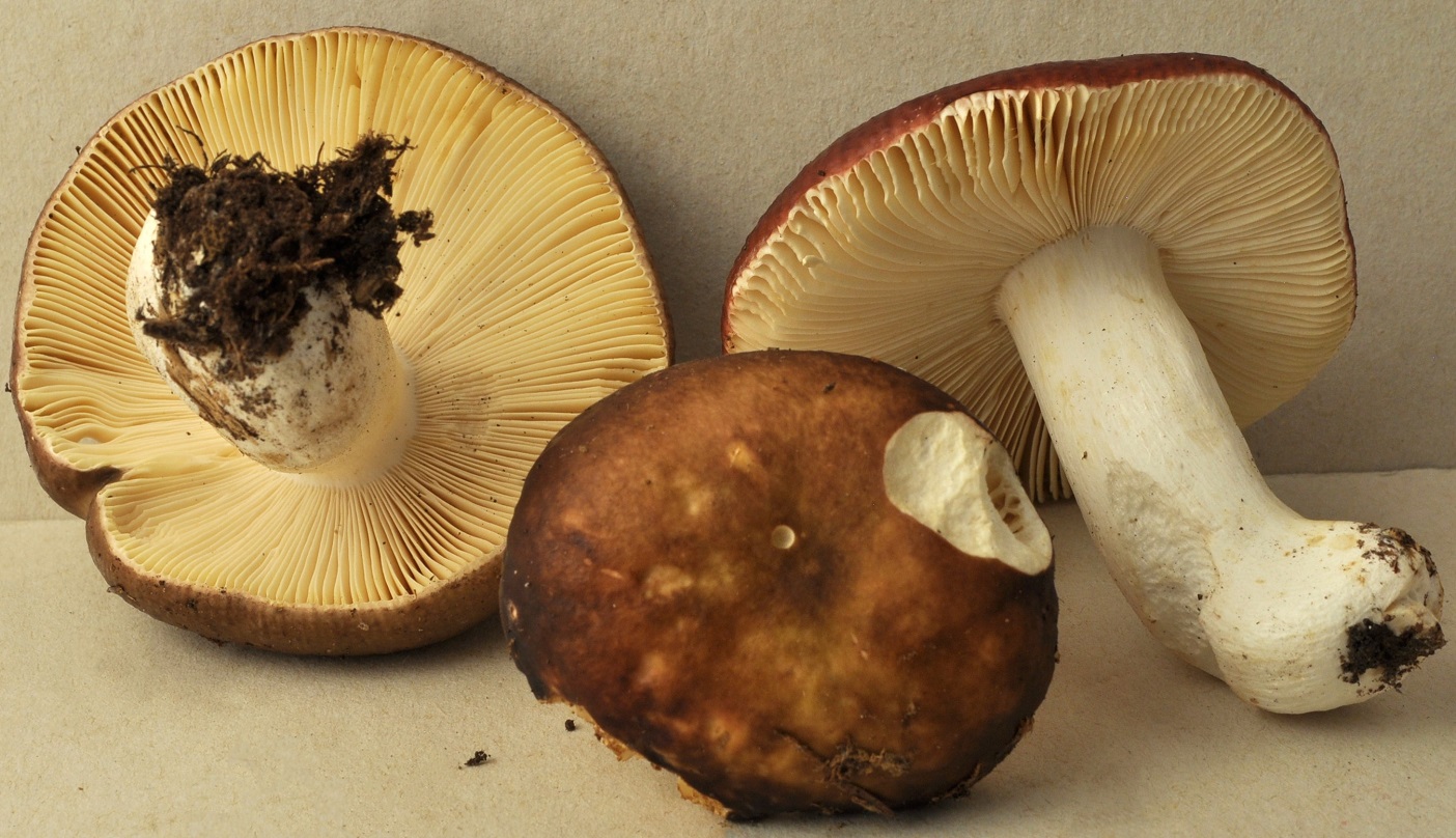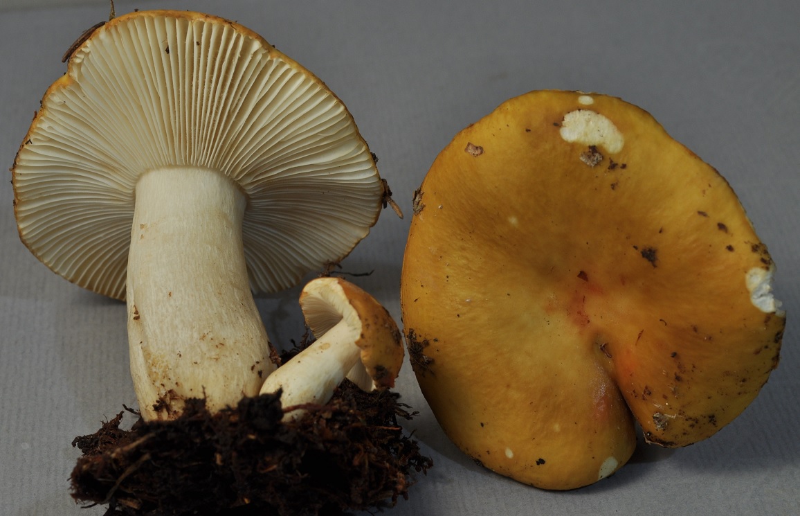 A voir dans la coupe les lames adnées ou émarginées, ligne de Trindel 2, arête rougeâtre à la marge, chair se colorant de brunâtre. Standard R.suberythropus..