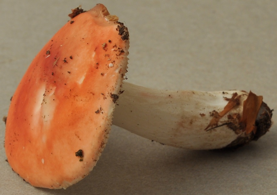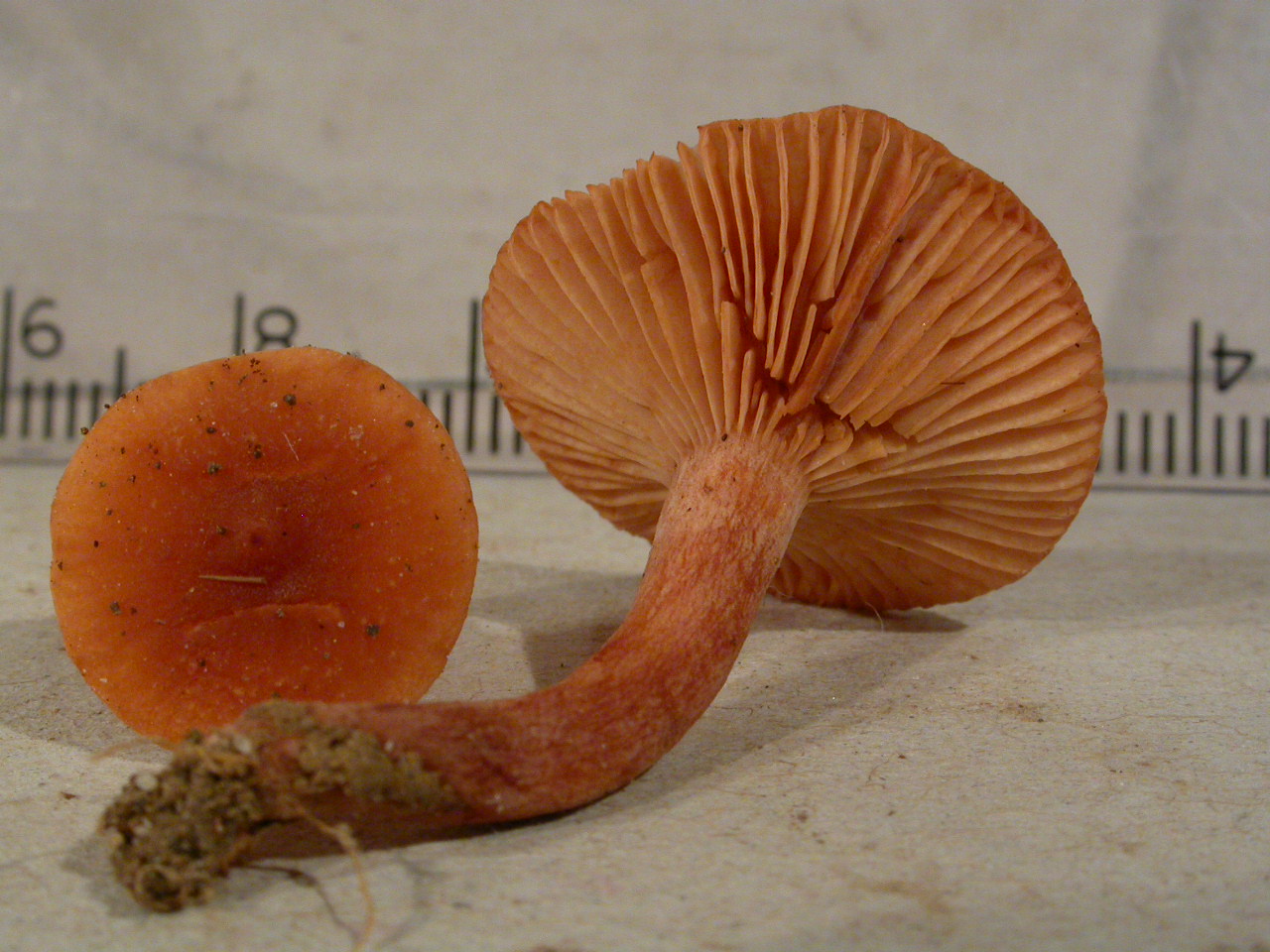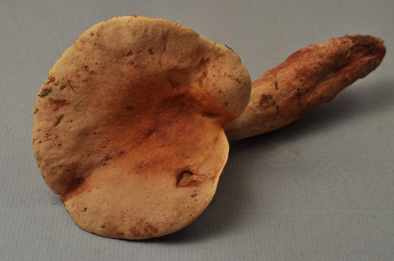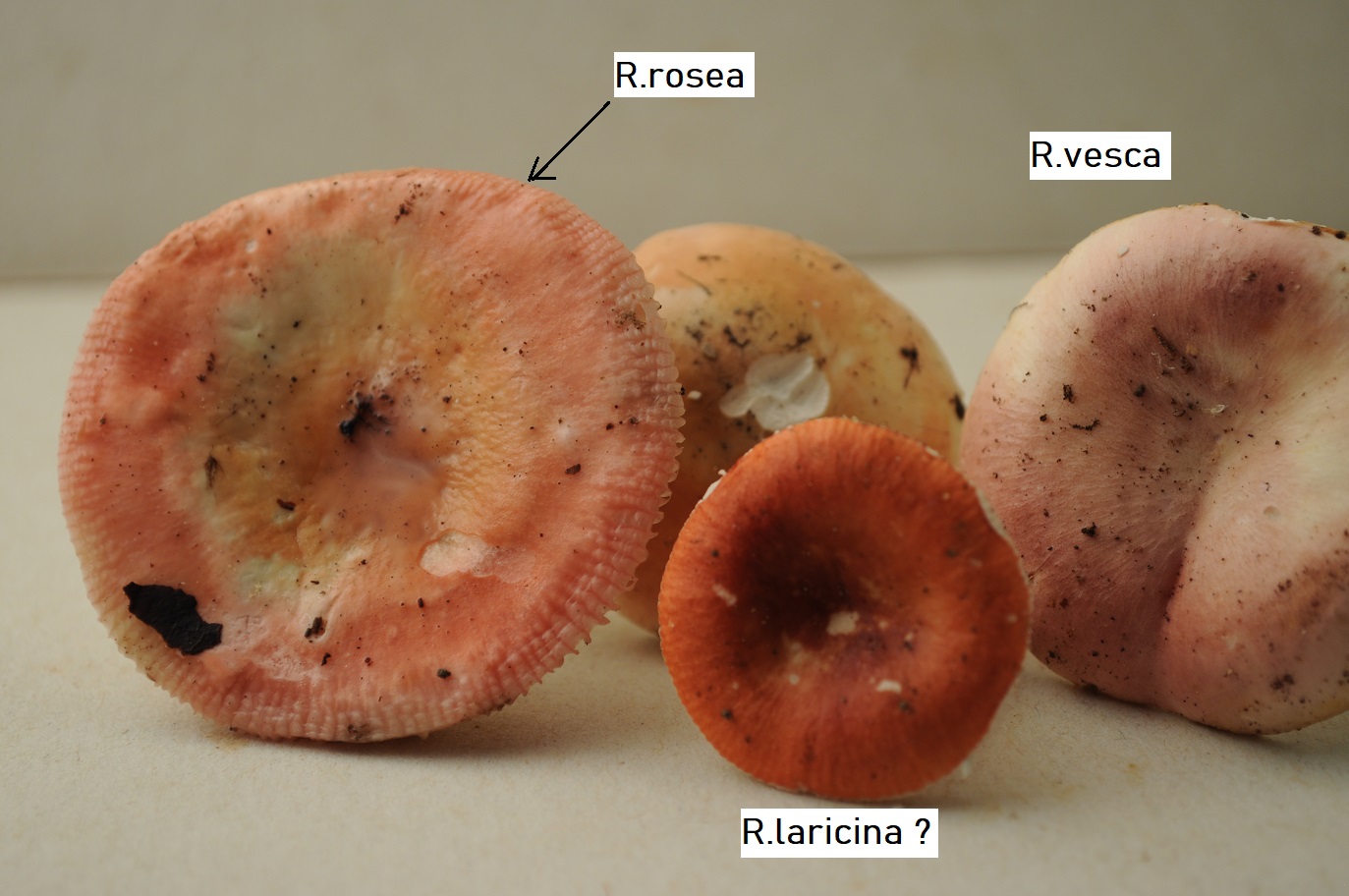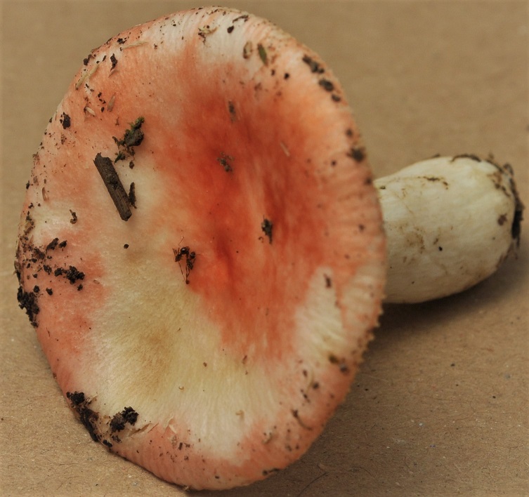 dessous, CD8-F9 42/43. Fe fortement rose_orange : R.vesca a encore frappé. Marge courte. Stipe ridulé, appointi, grisonnant.