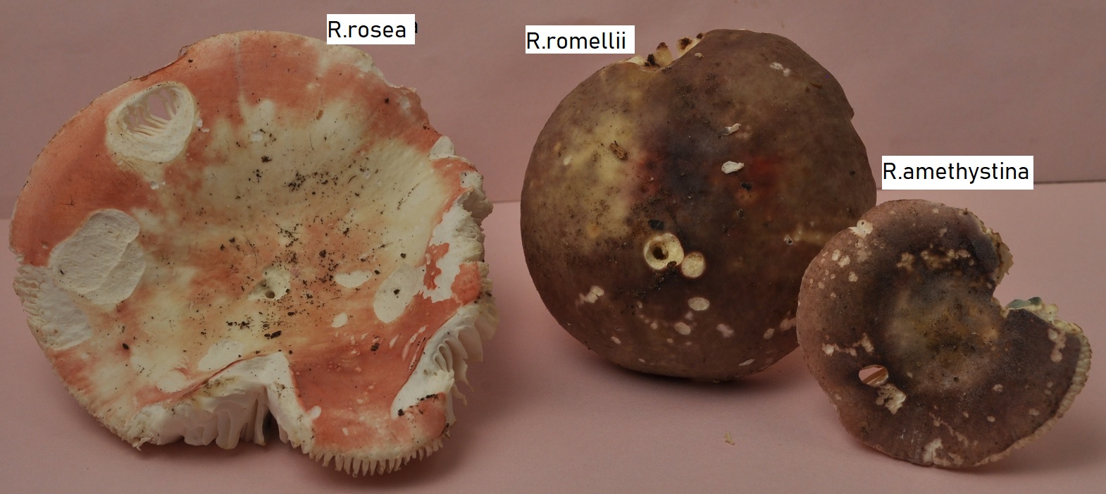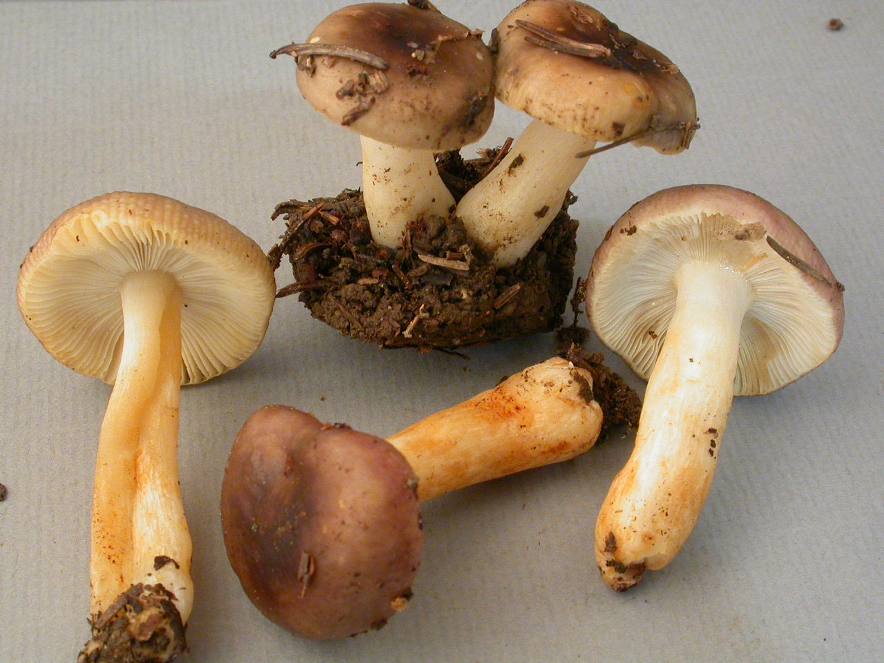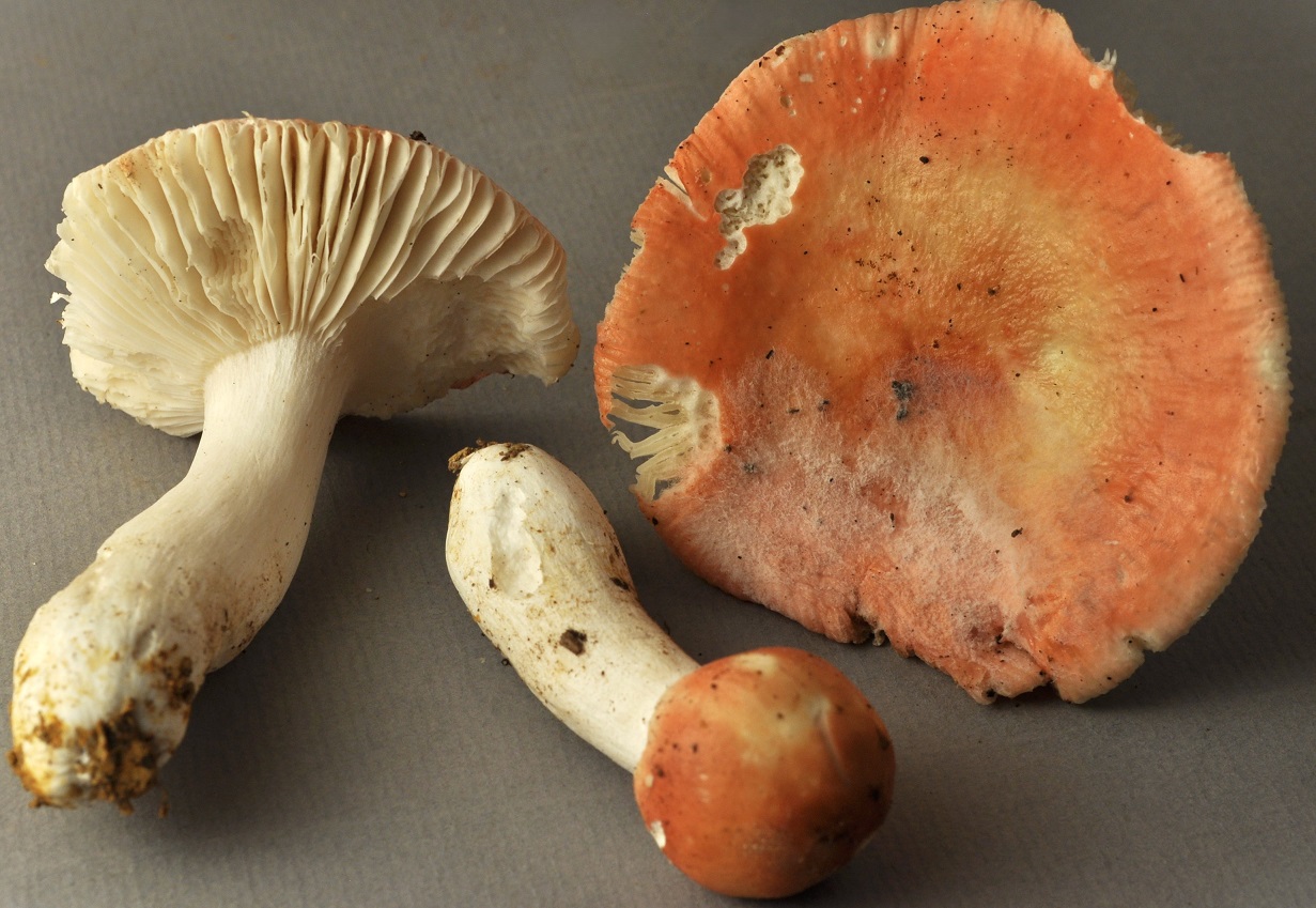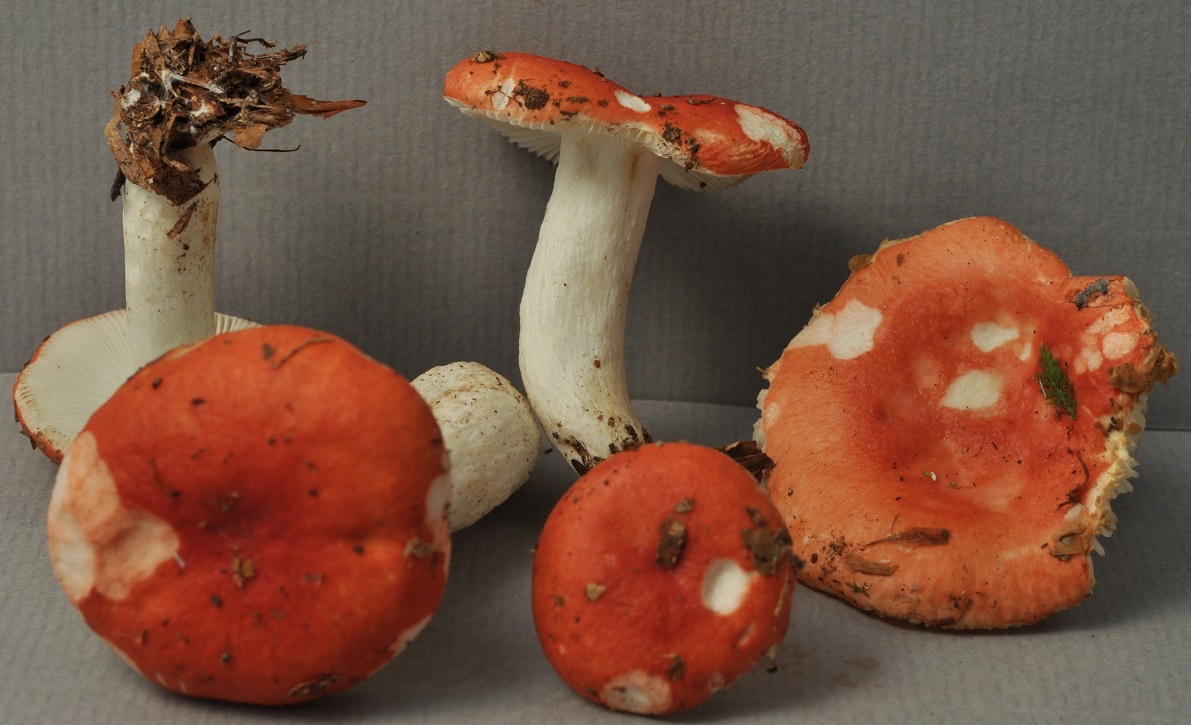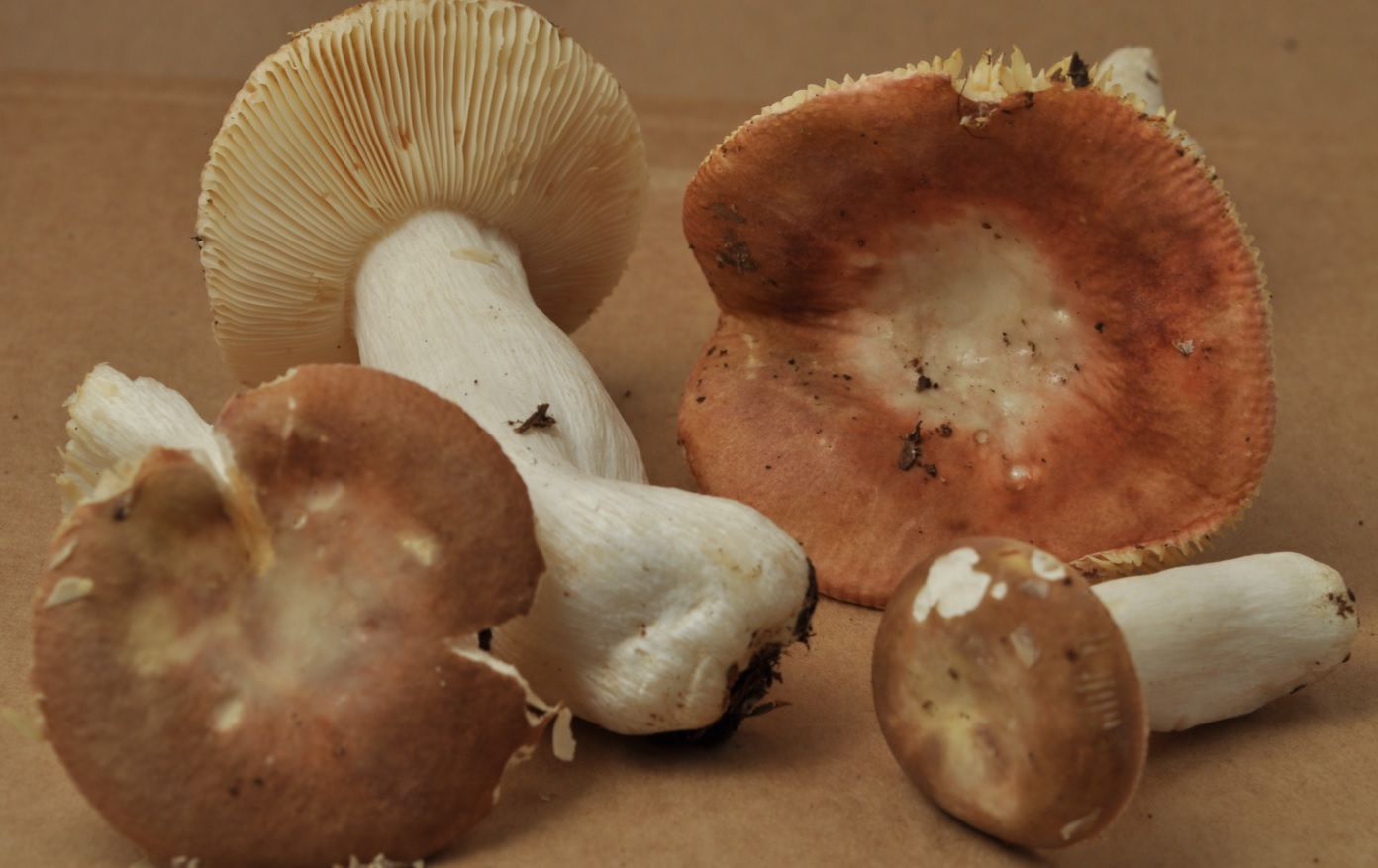 photo, CD8-F7 59. Habitus et écologie de R.suberythropus. Noter les couleurs du chapeau différentes.