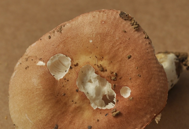 Un regard sur le piléipellis infesté de crins nous fourni la vérité: Russula vesca !
