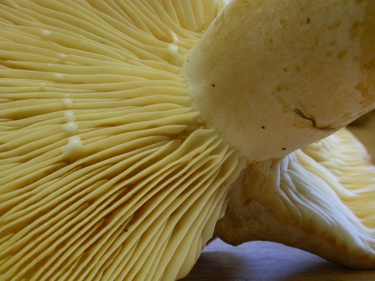 Chapeau plus ou moins zoné. Lait blanc et immuable.