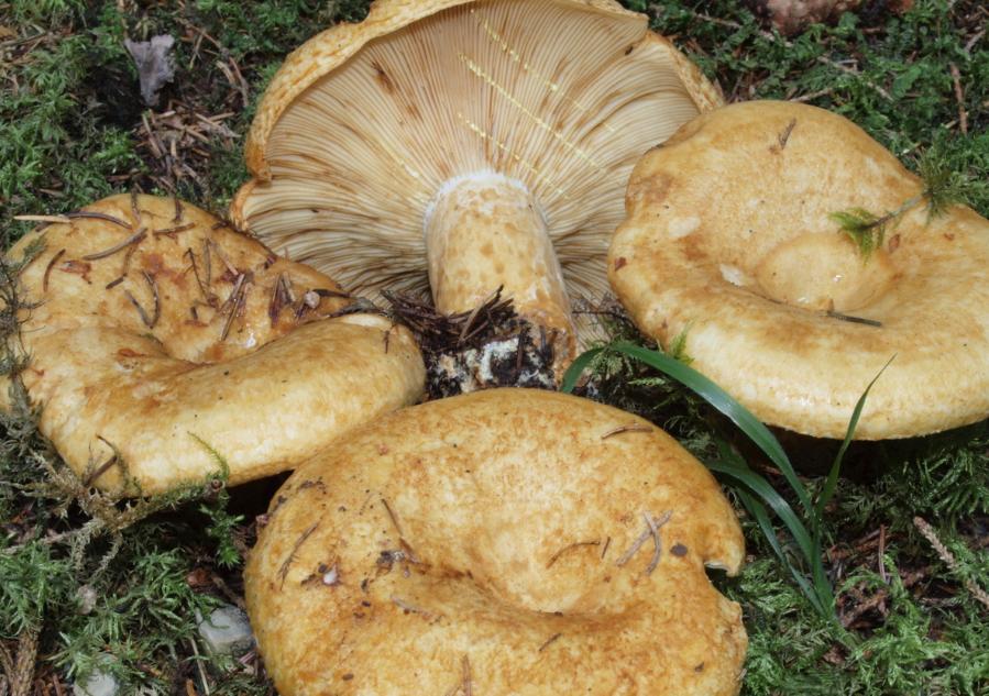 Lactaires à chapeaux jaunes ou pâles, plus ou moins zonés.