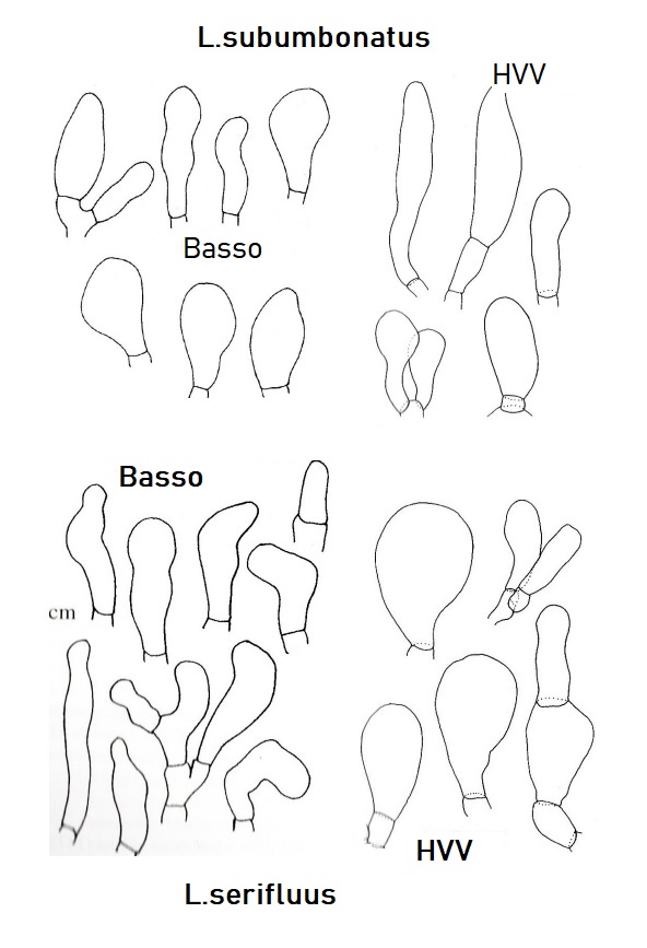 La représentation de P.Roux (p.151) est un bon point de départ pour une différentiation, chapeau plus brillant (non rugueux), dessous plus blanc, ornementations moins hautes.