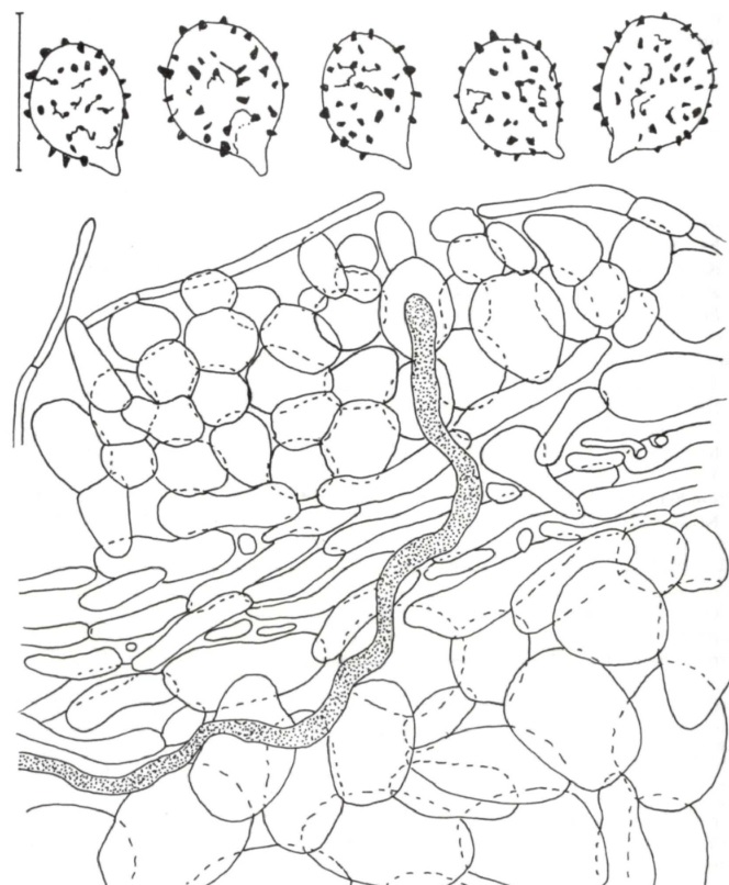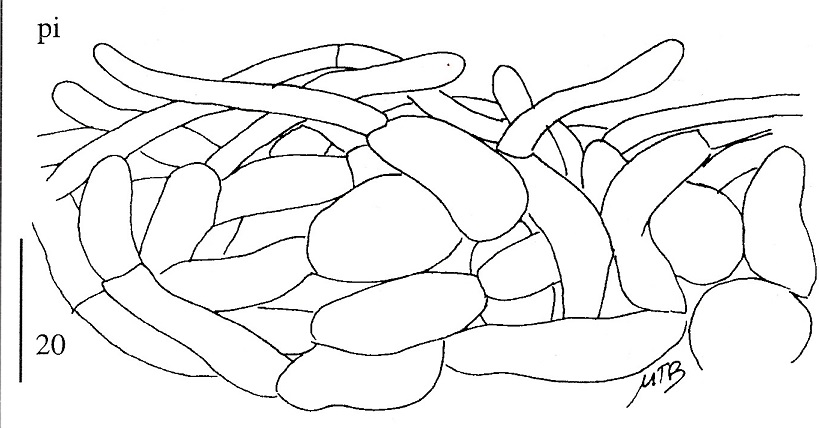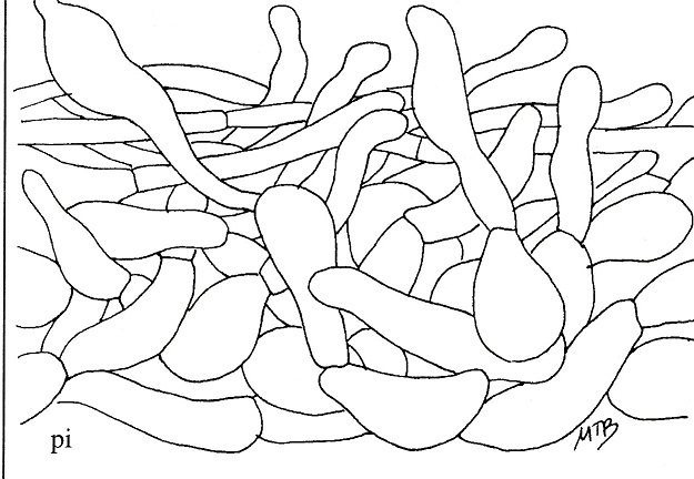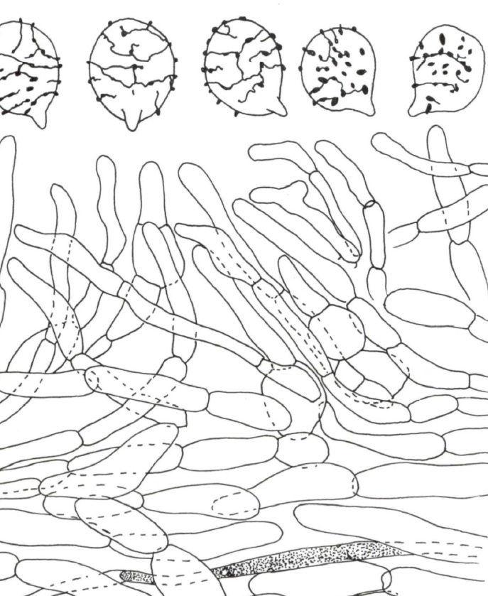 Piléipellis plus type celluleux et spores ornementation largement pseudoréticulée.