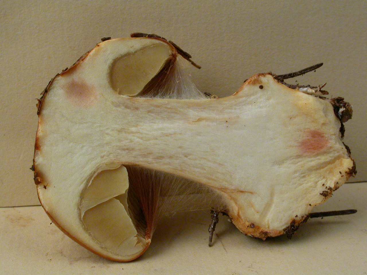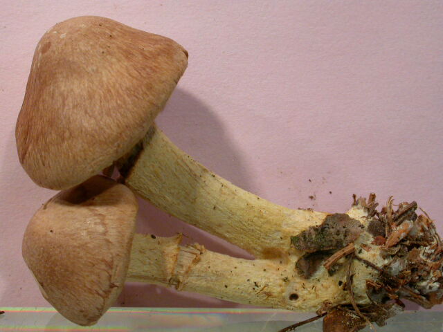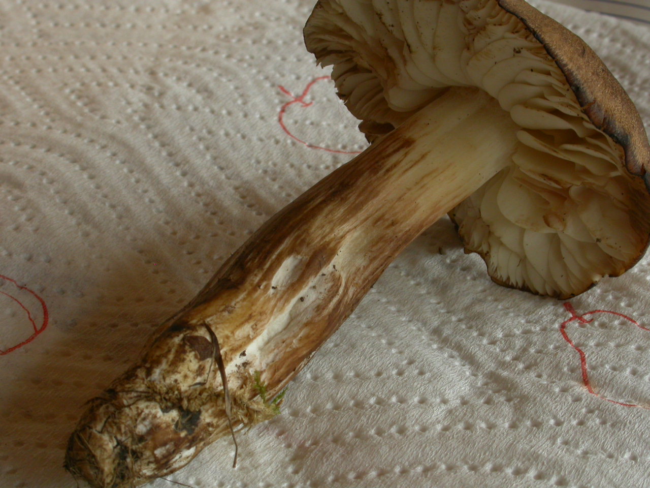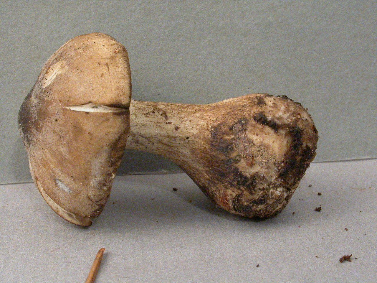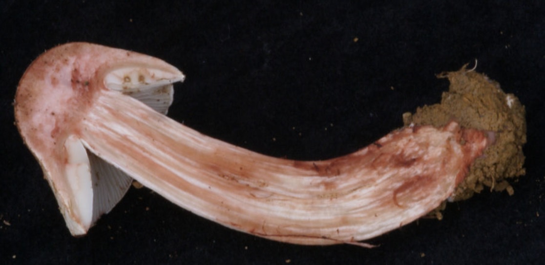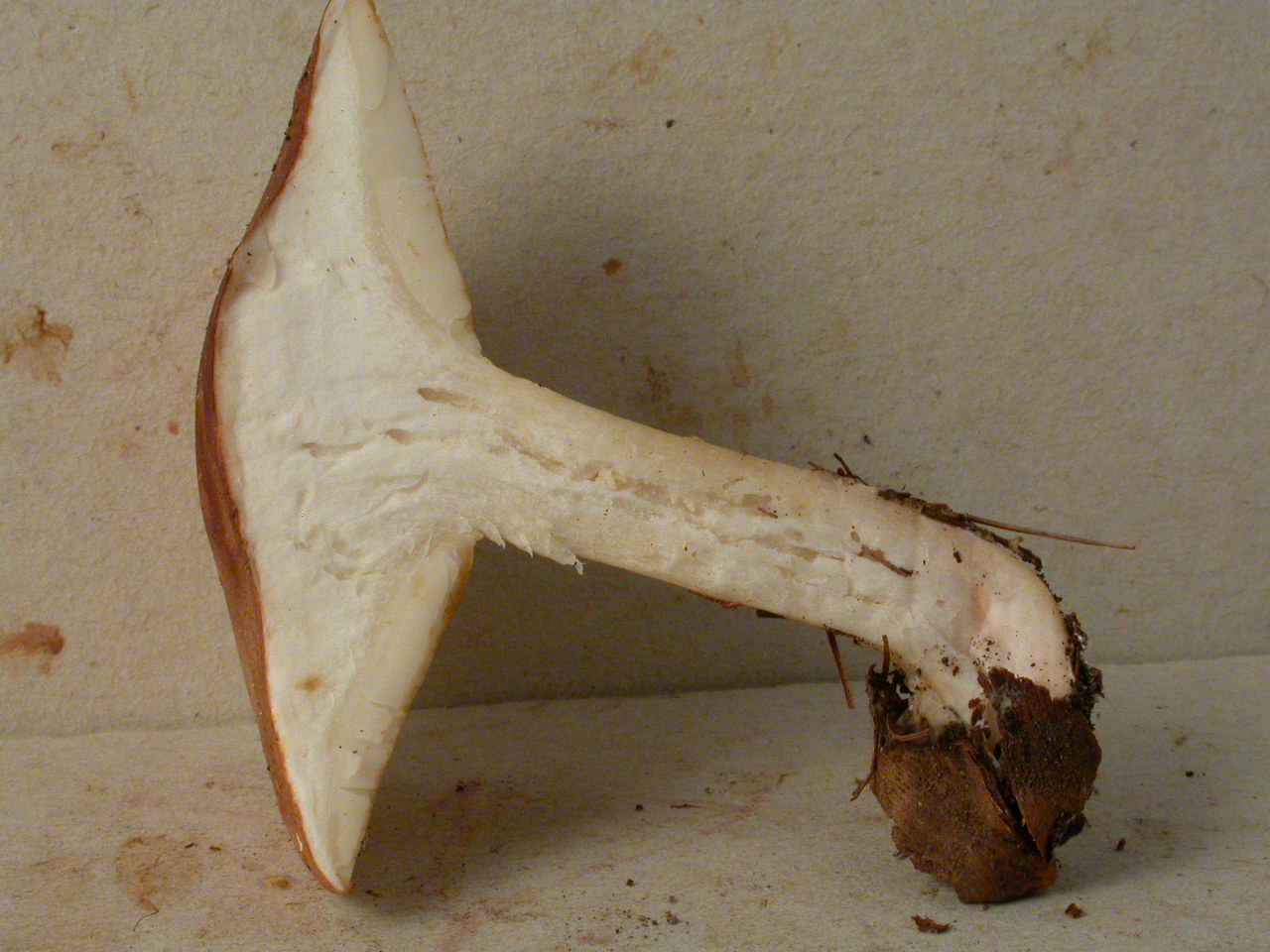 X.pruinatus a le bas du stipe pointu avec un fourreau de mycelium. (PAM dixit)