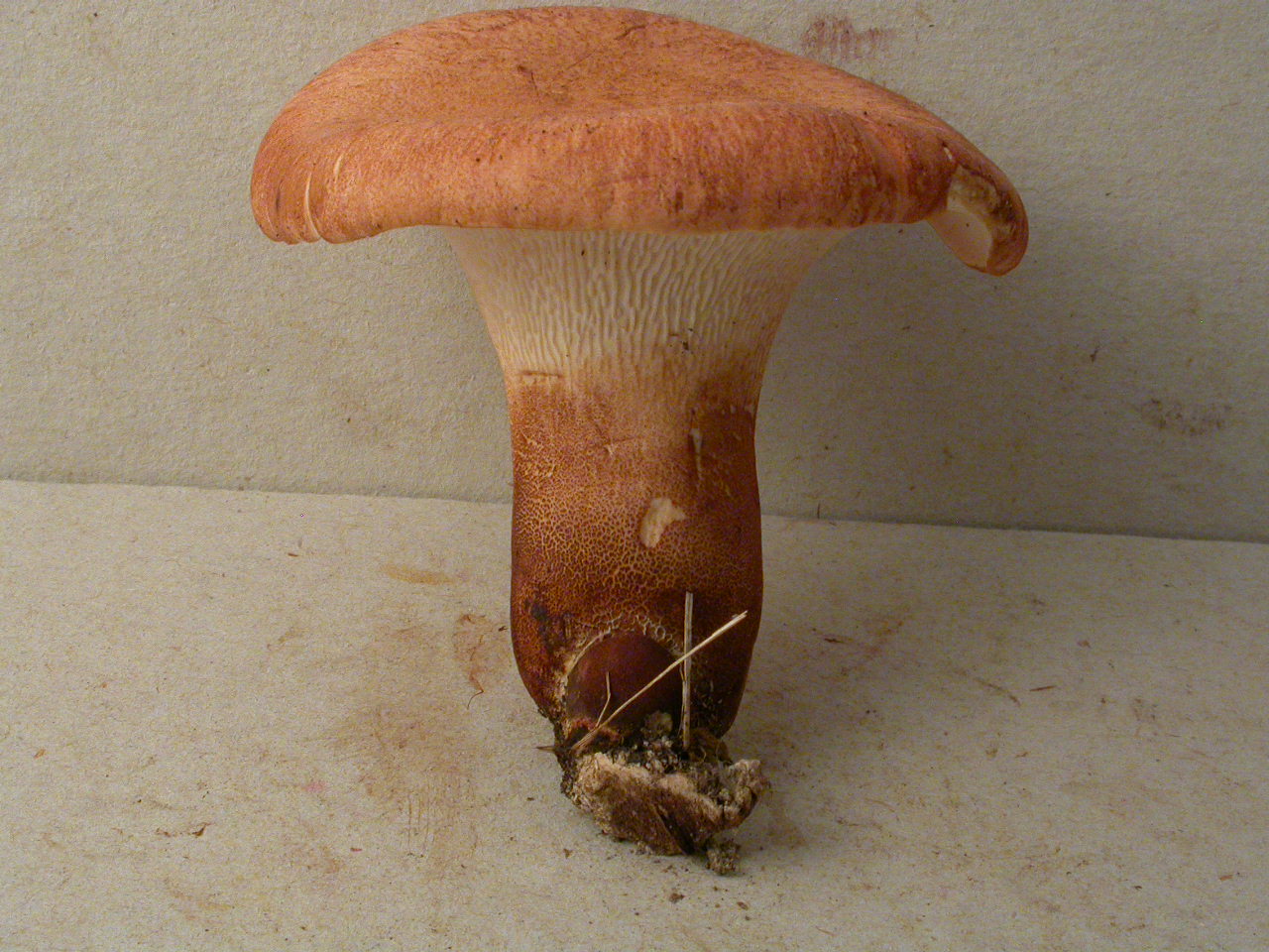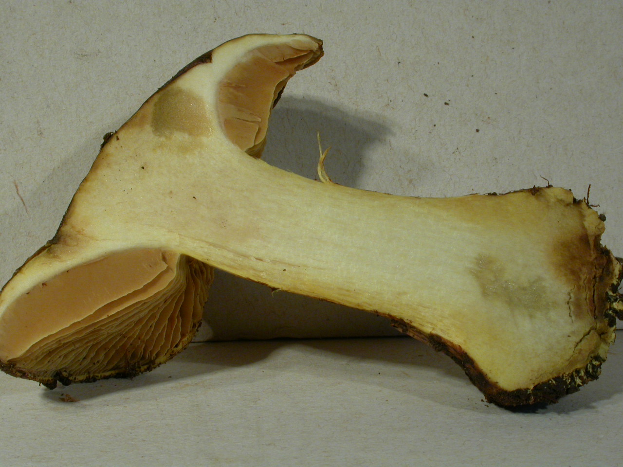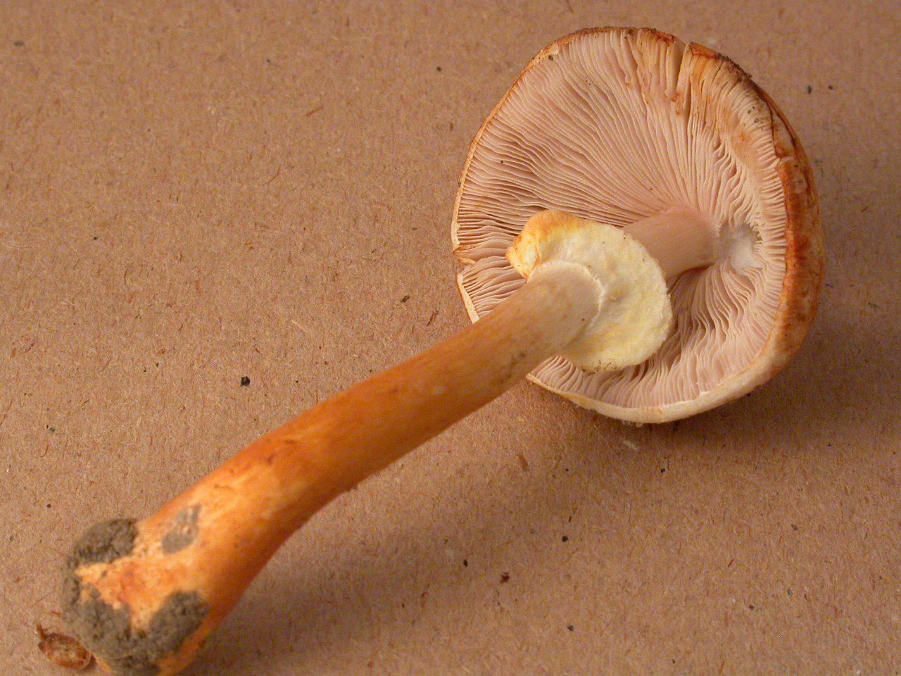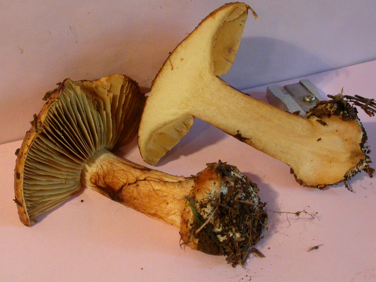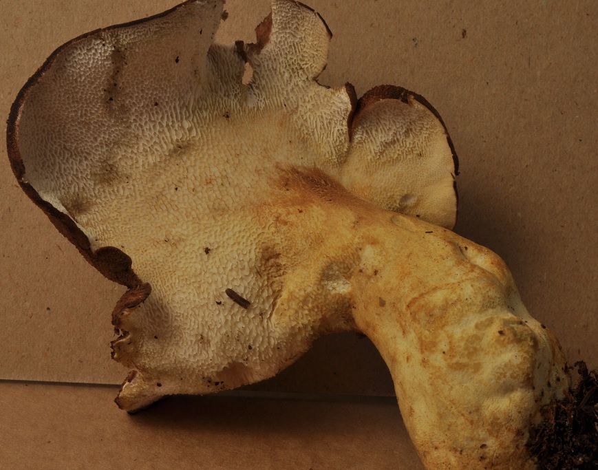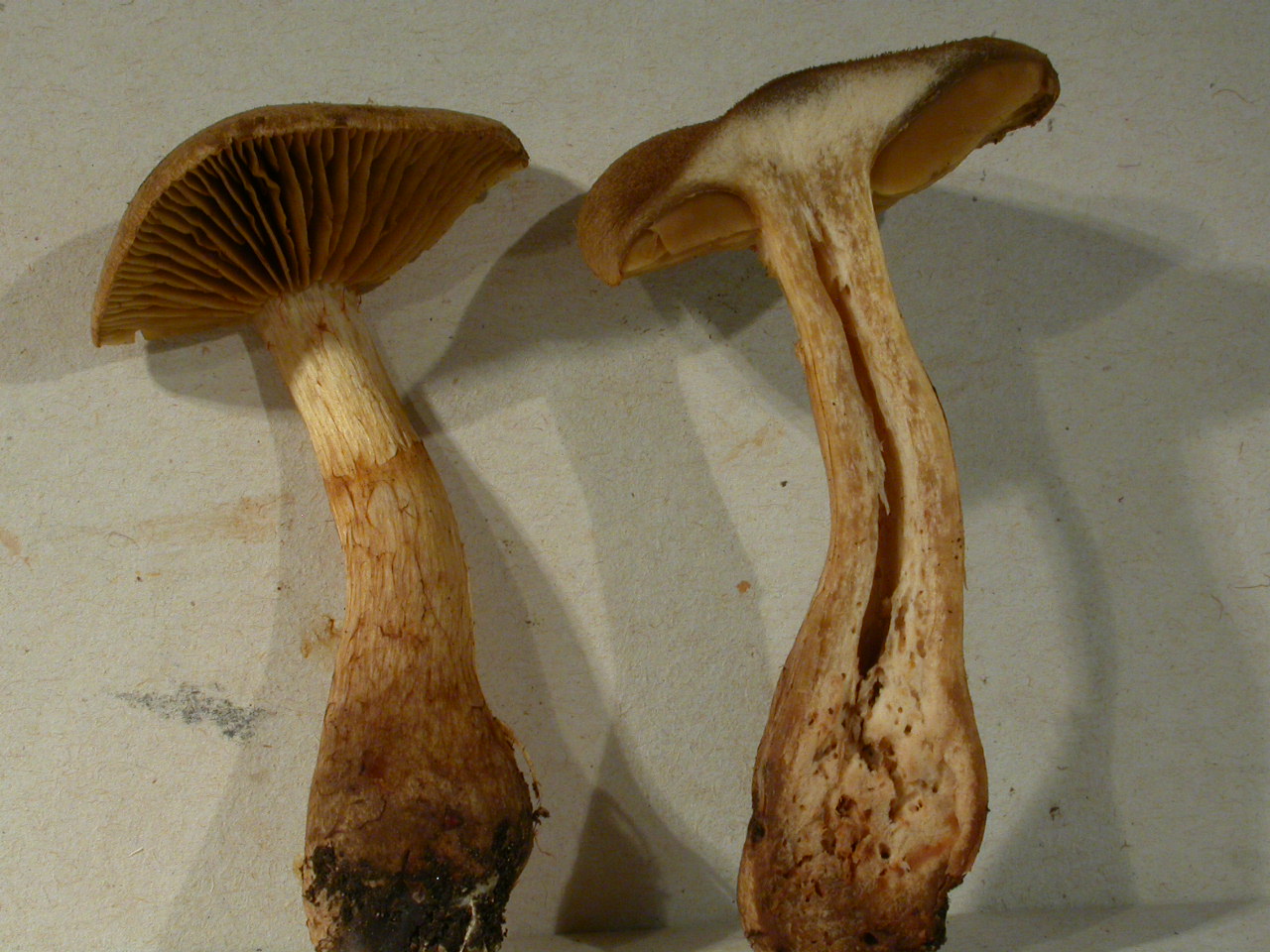 X.pruinatus a le bas du stipe pointu avec un fourreau de mycelium. (PAM dixit)