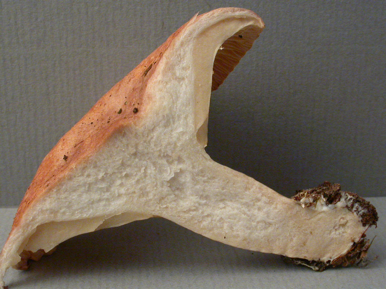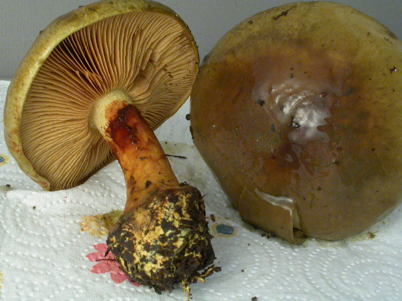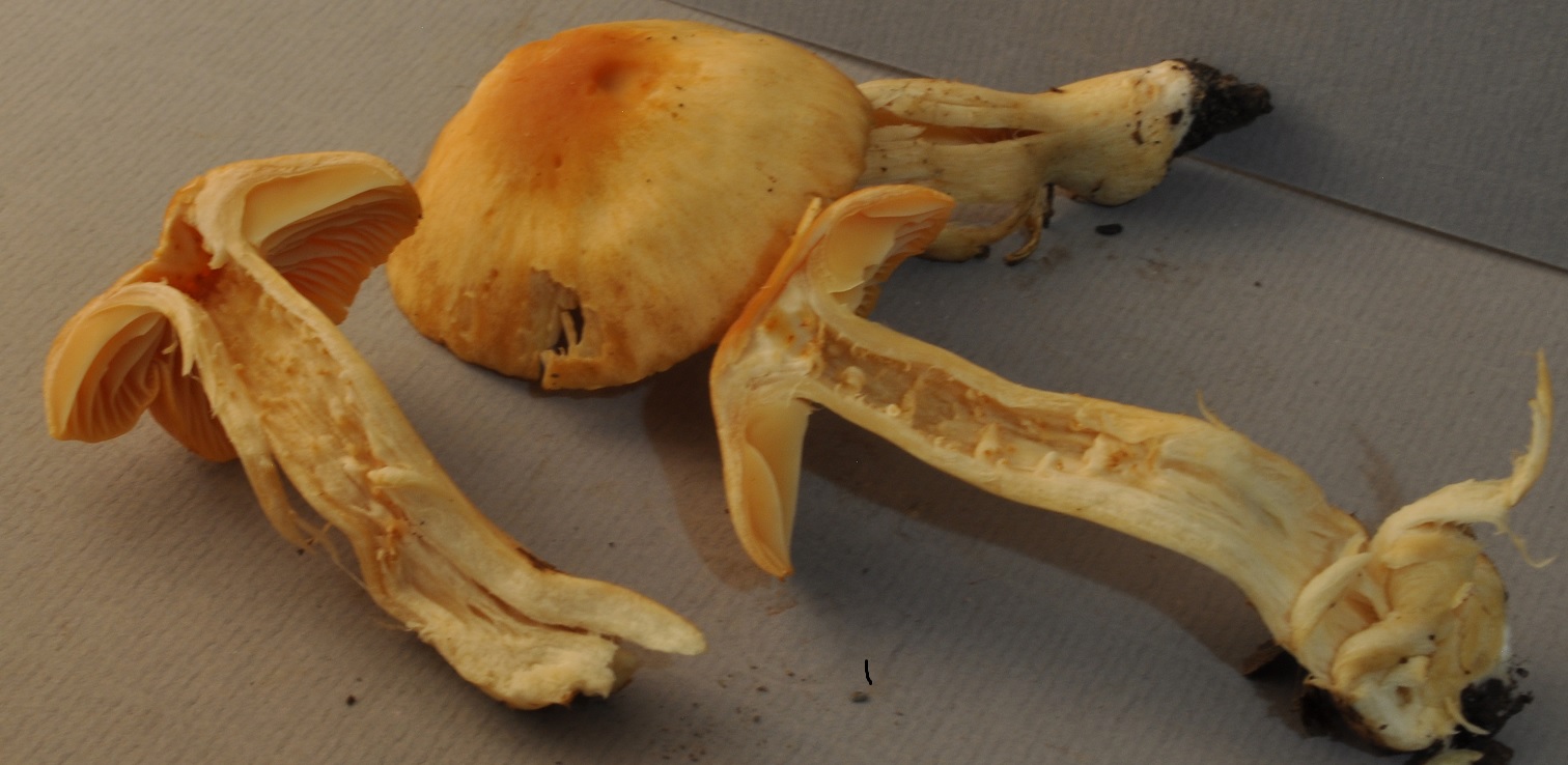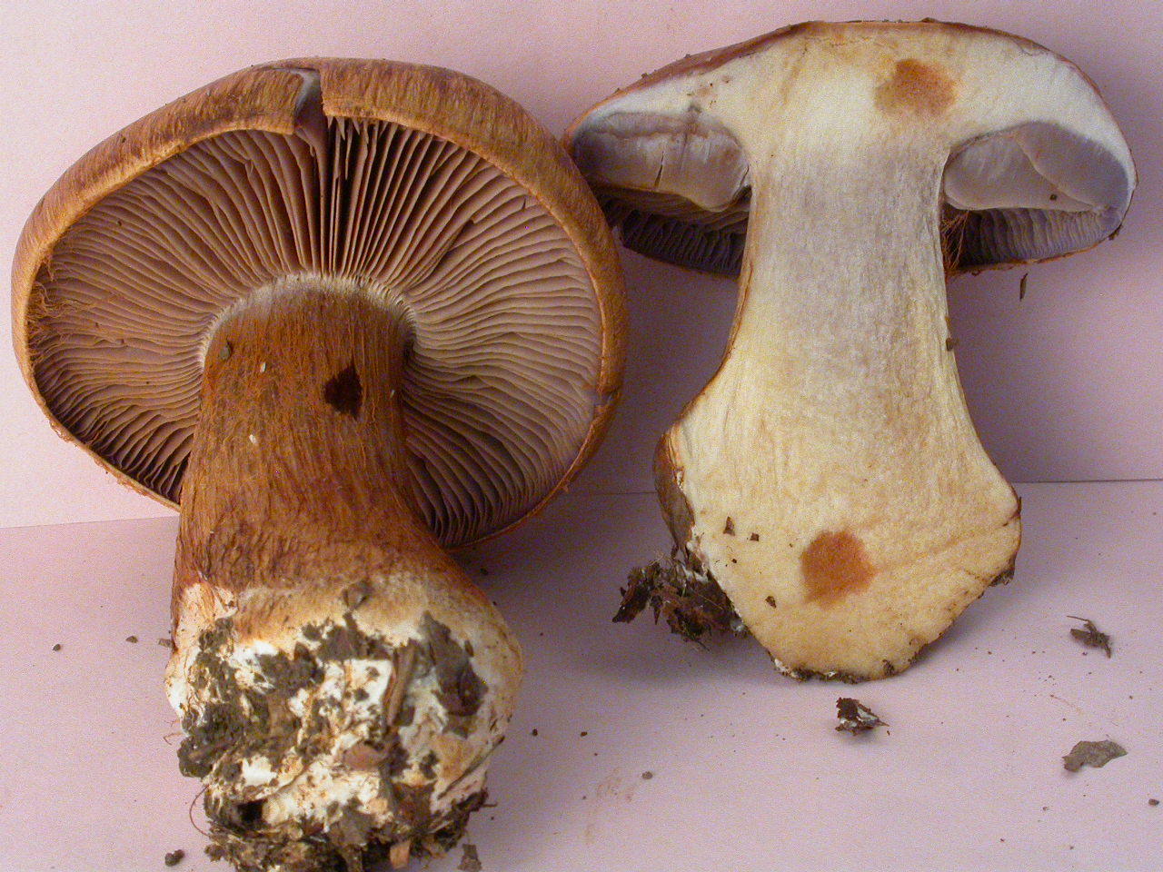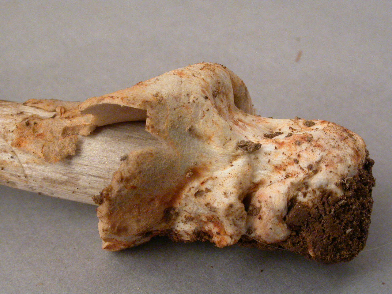 X.pruinatus a le bas du stipe pointu avec un fourreau de mycelium. (PAM dixit)