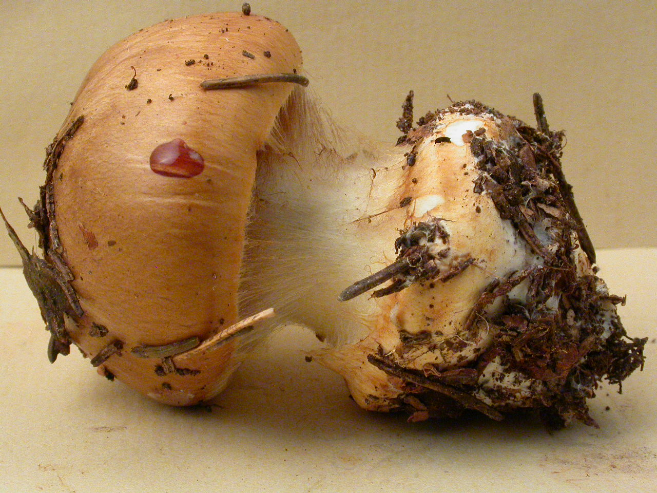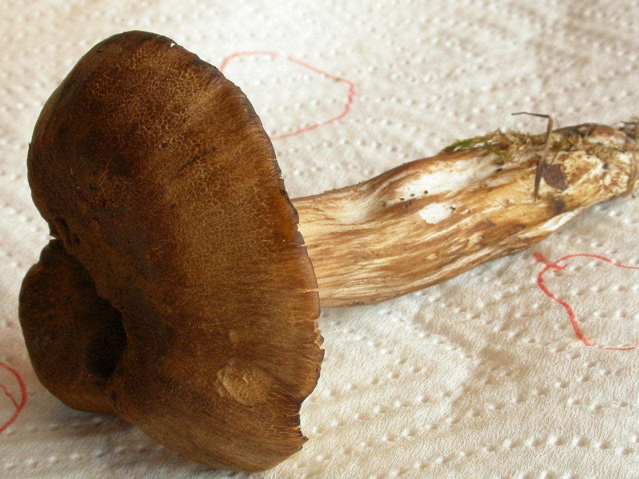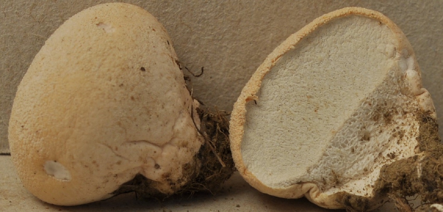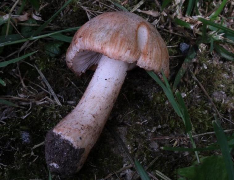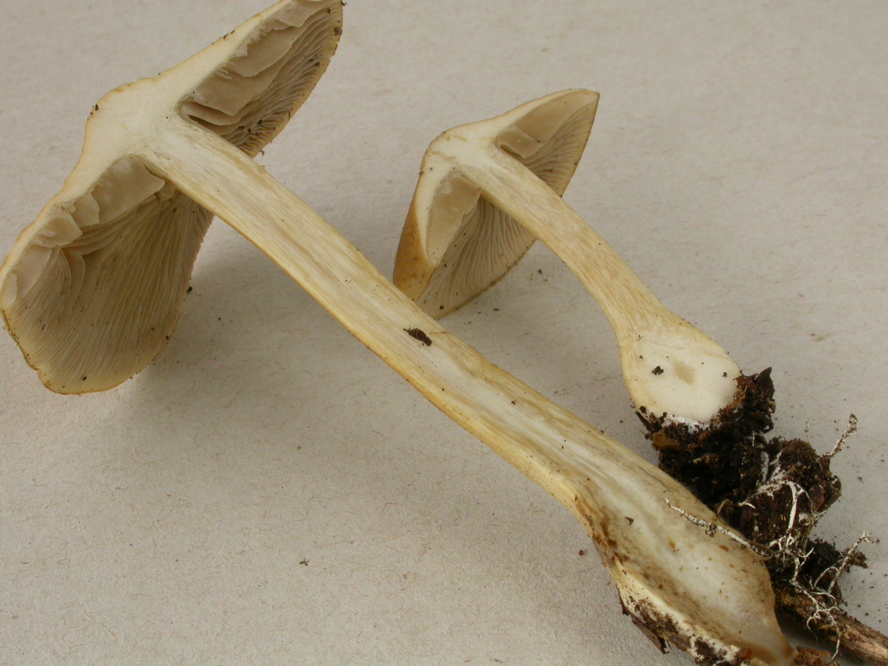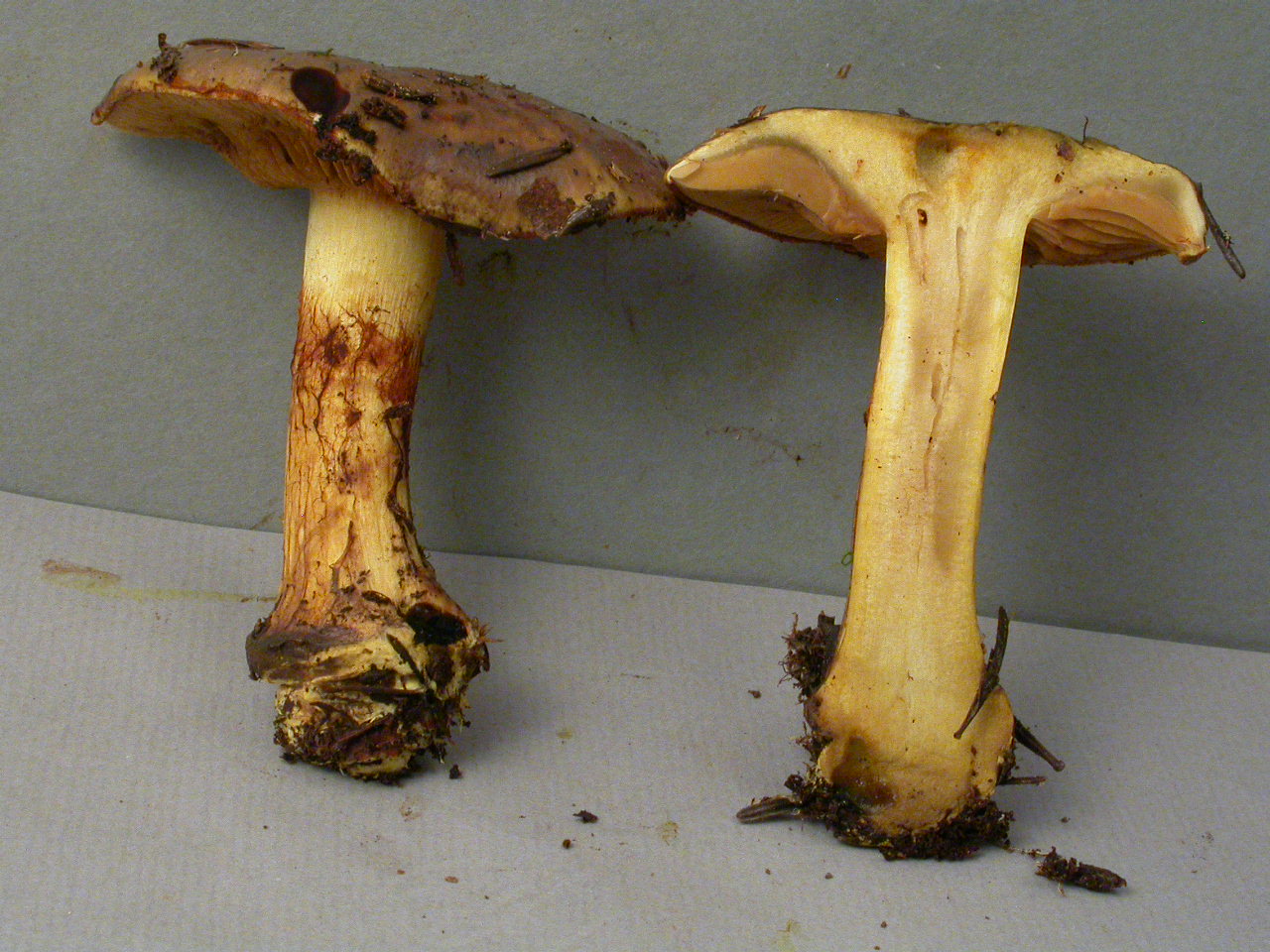 X.pruinatus a le bas du stipe pointu avec un fourreau de mycelium. (PAM dixit)