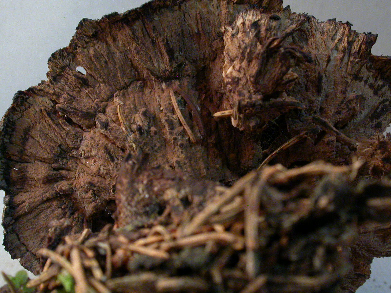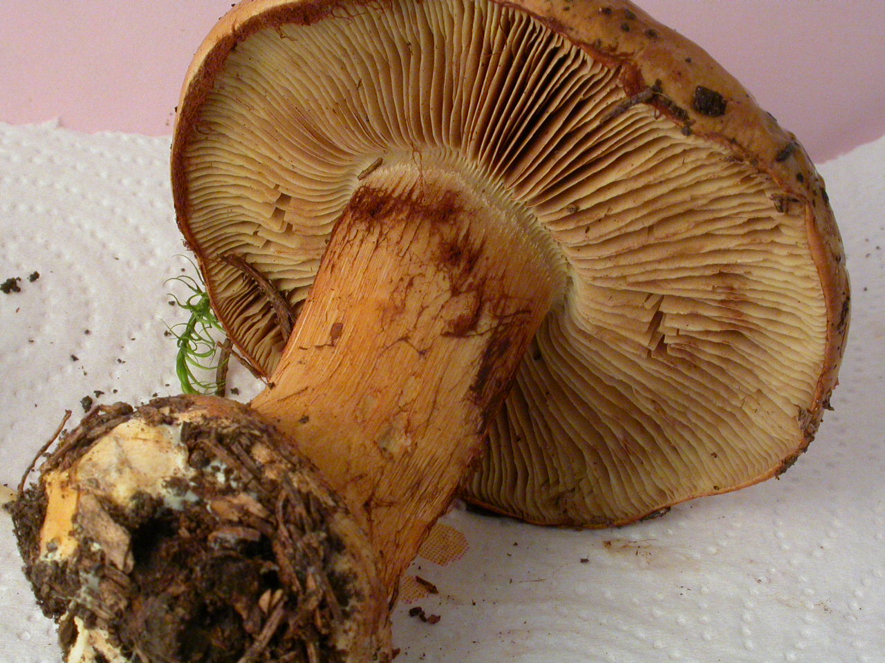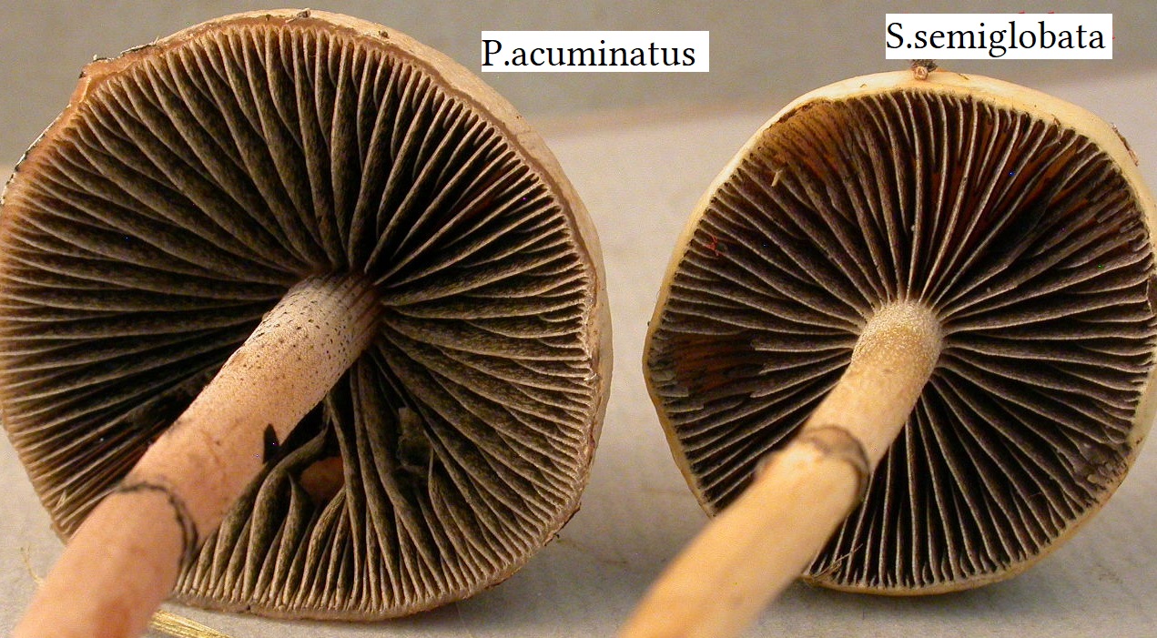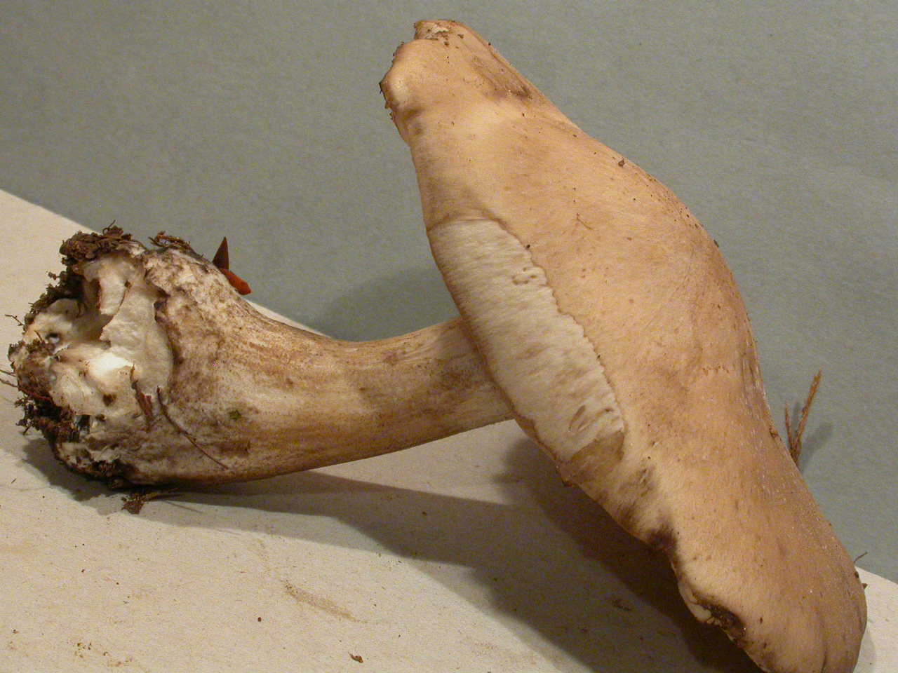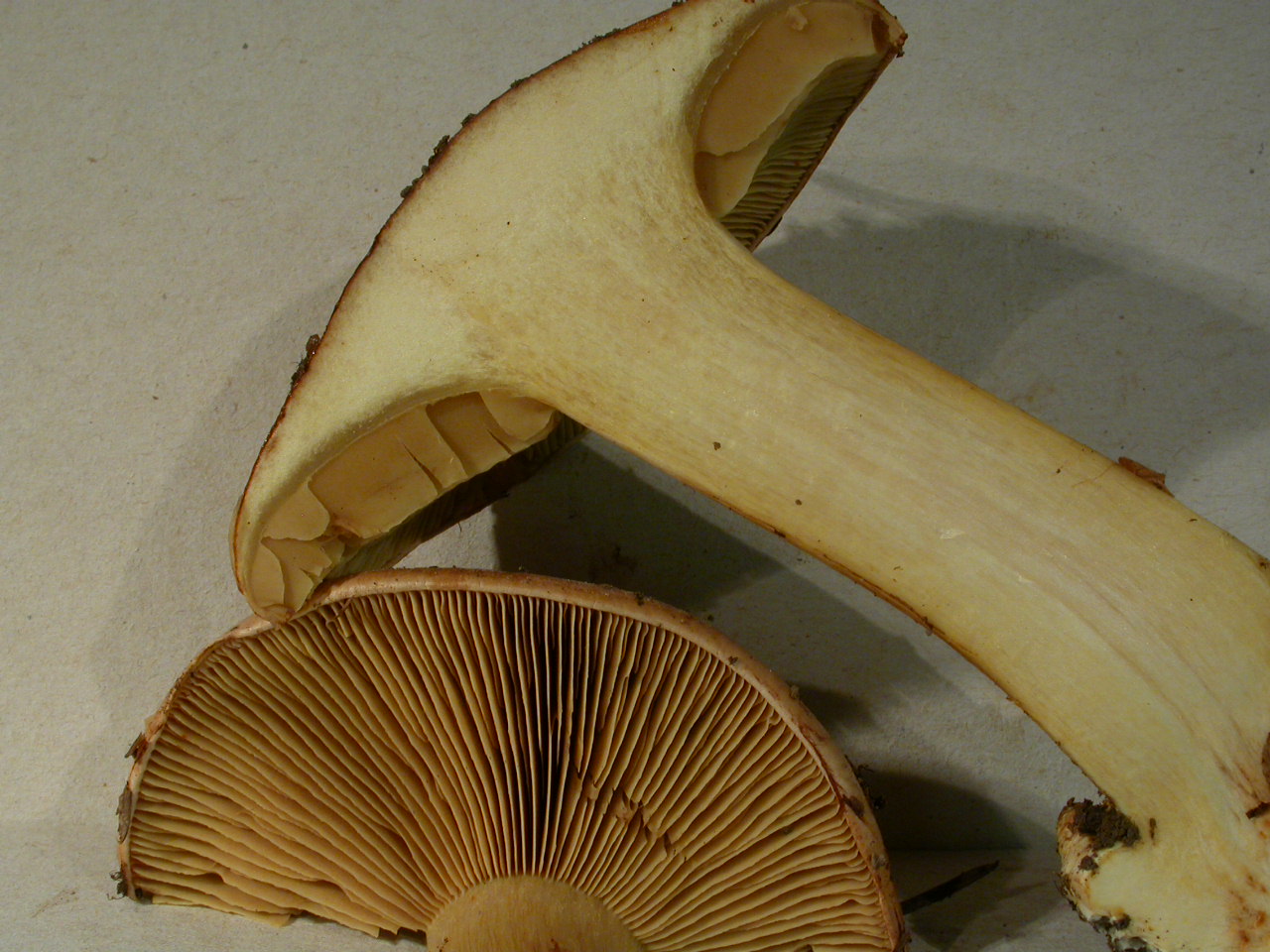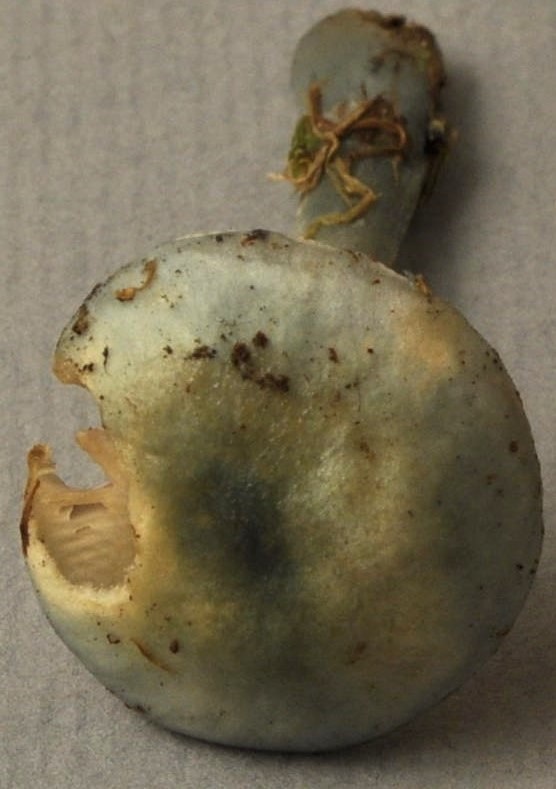 X.pruinatus a le bas du stipe pointu avec un fourreau de mycelium. (PAM dixit)
