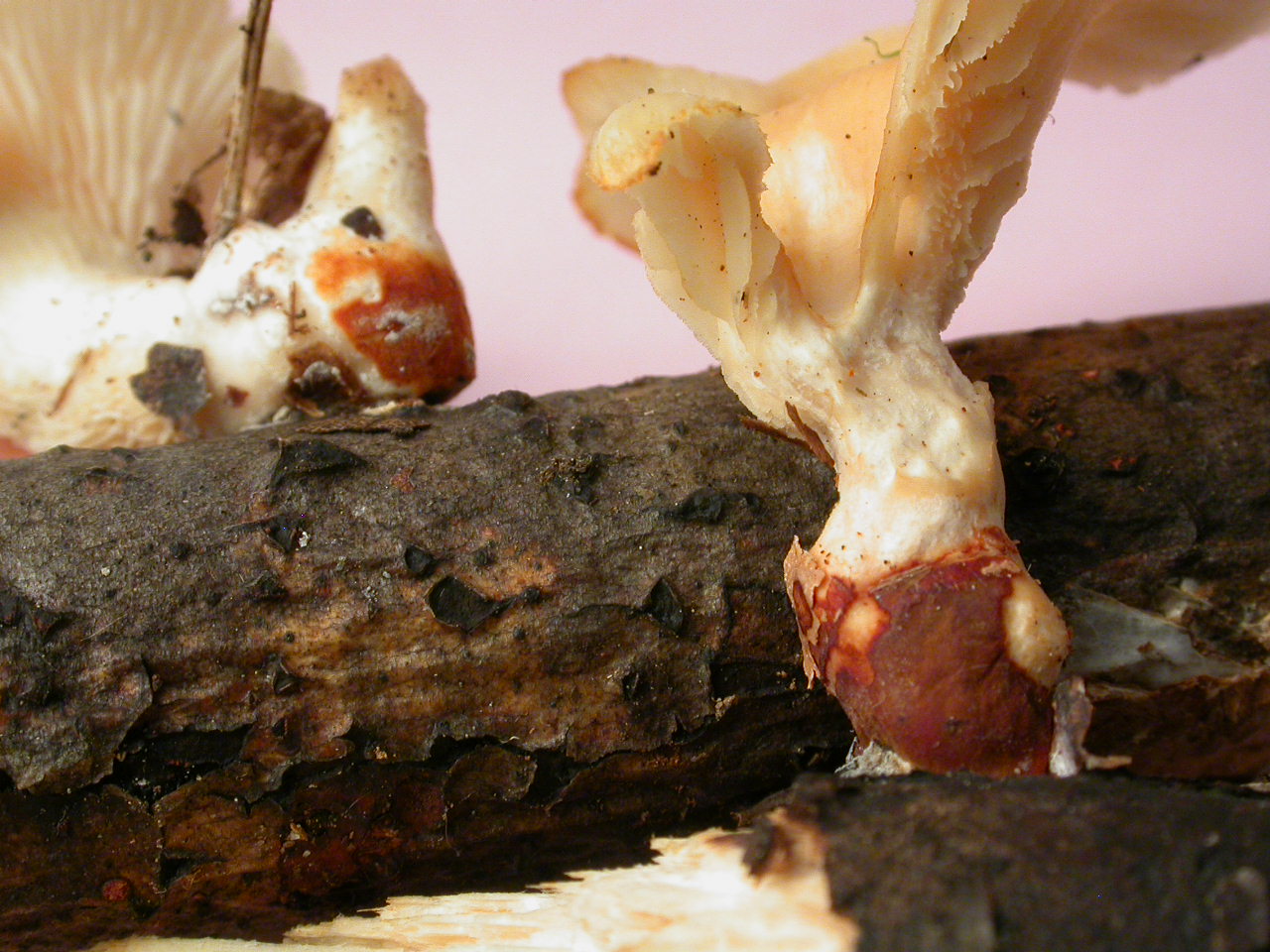 Lignicole, sur souche ou à la base de Populus surtout. Anneau, saveur douce, spores à pore germinal invisible.