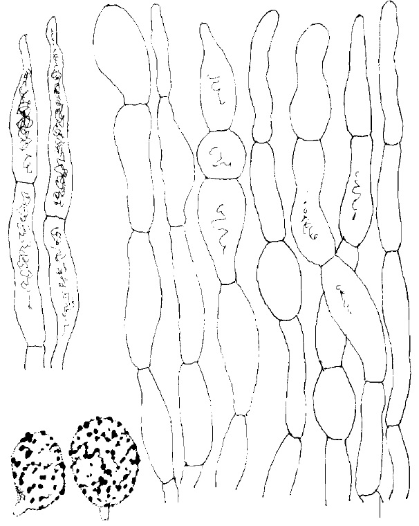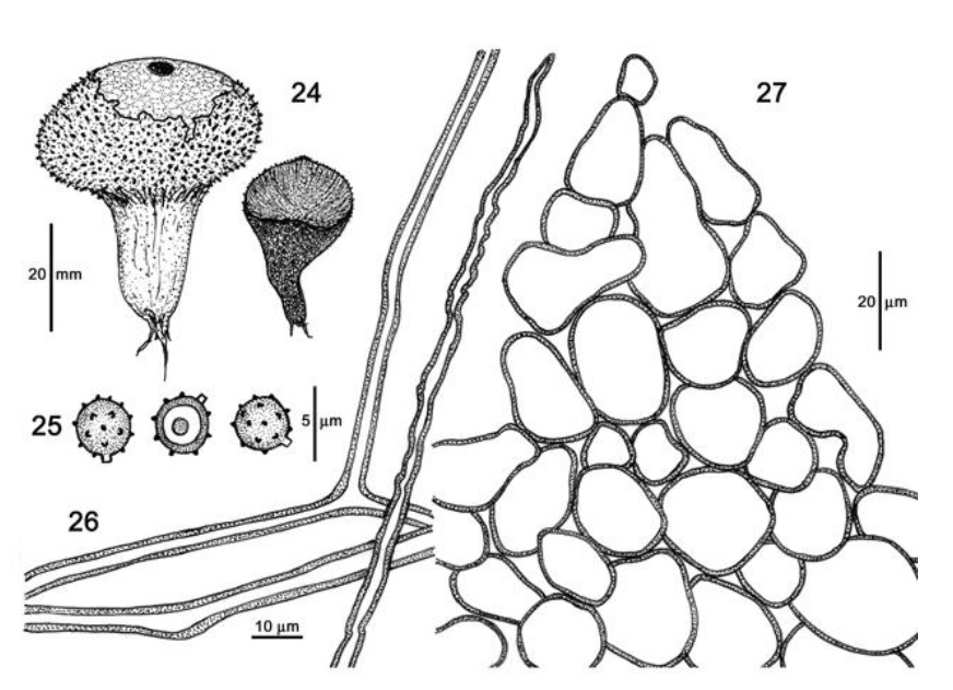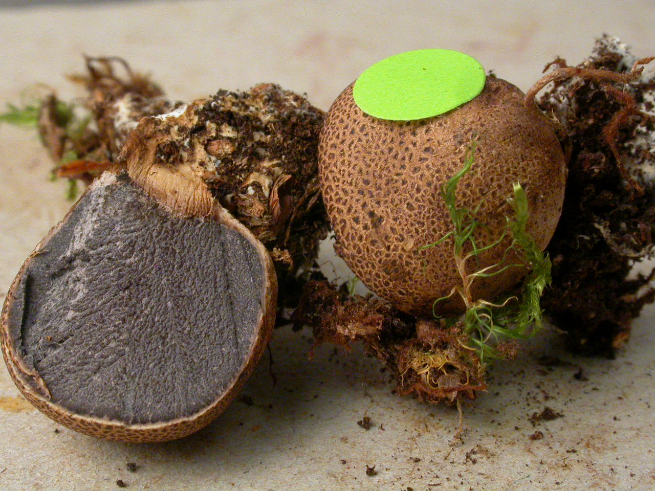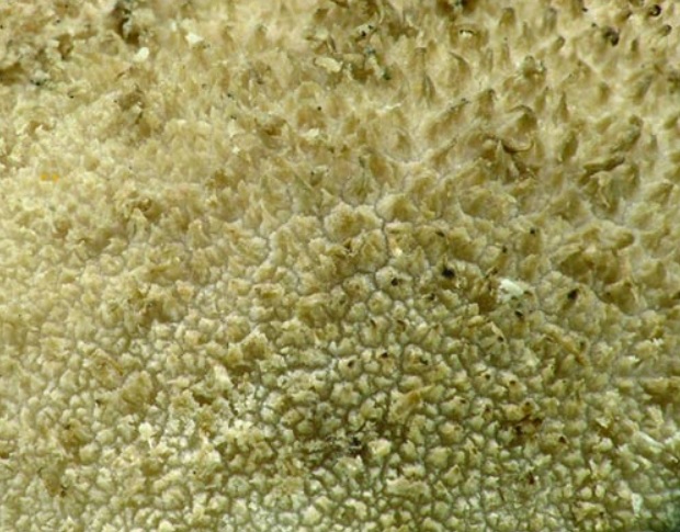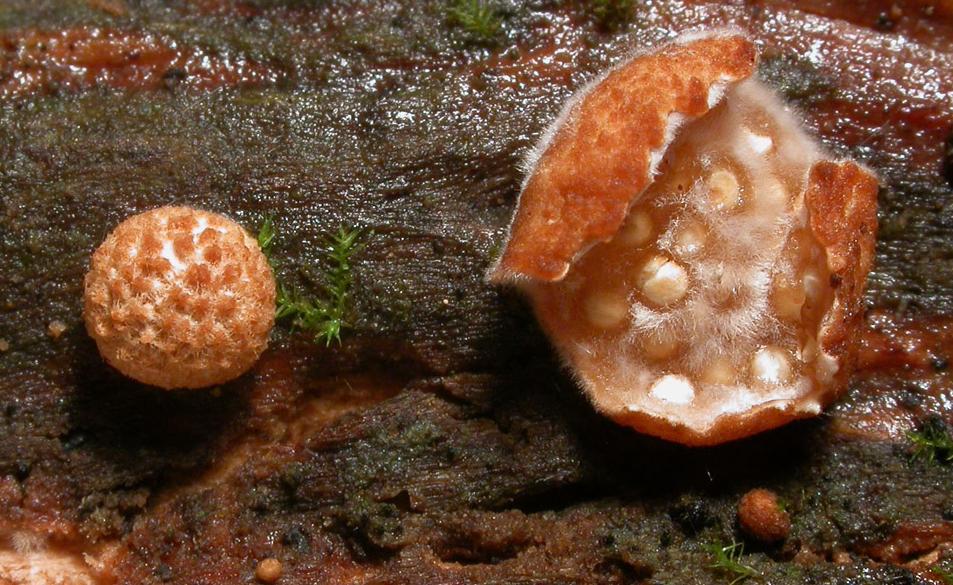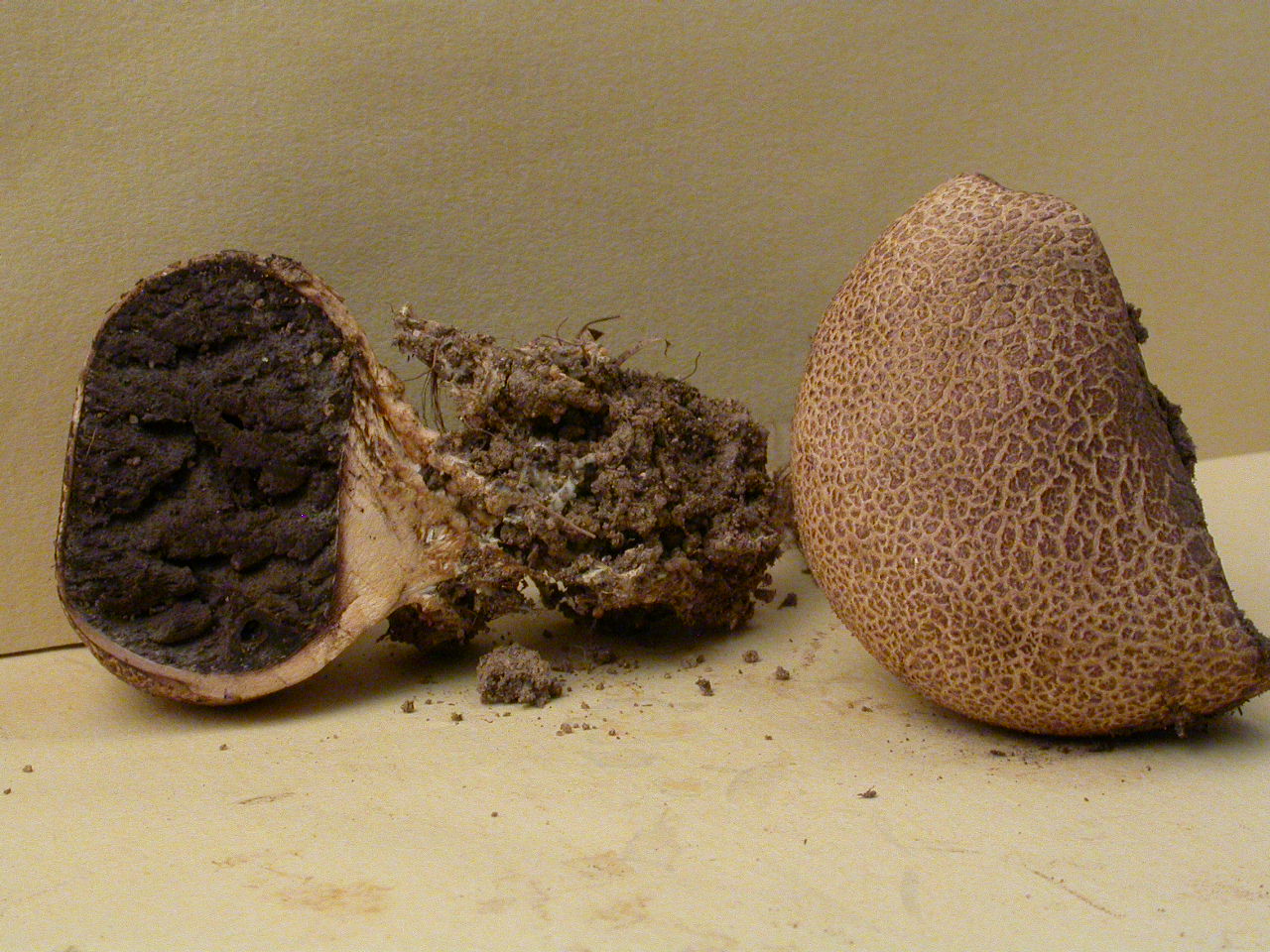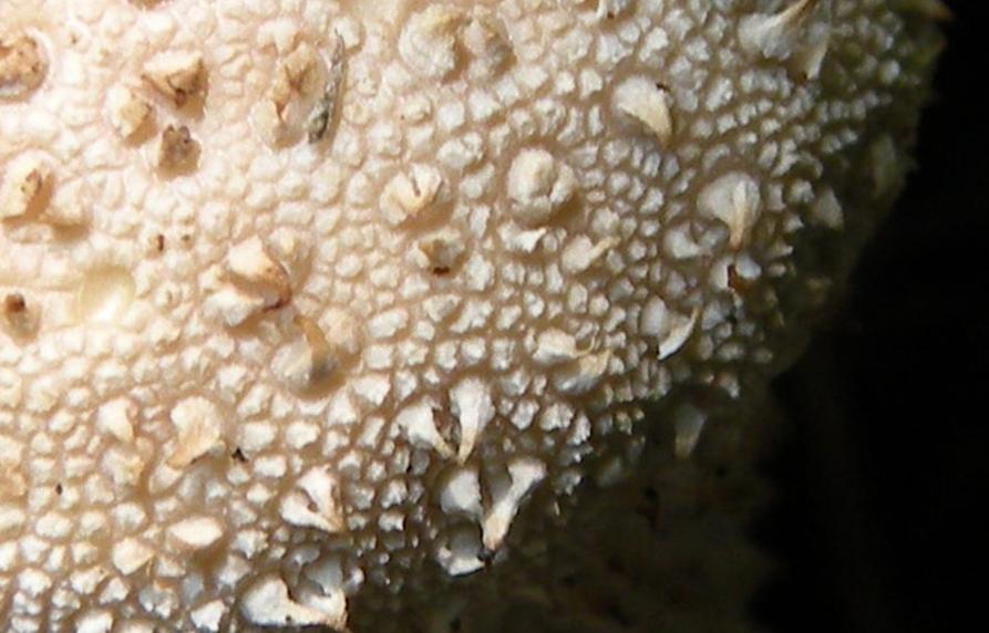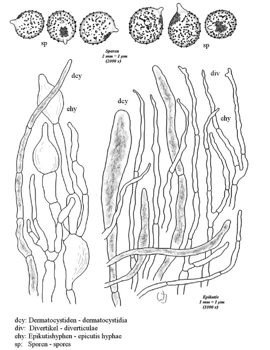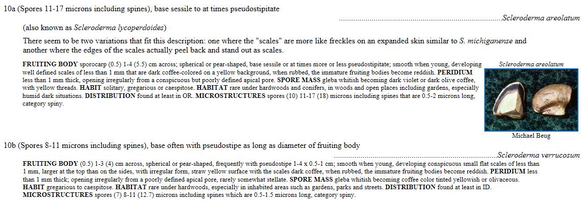 Diaphragme et subgléba à fossettes bien visibles et bien différentiés. Spores rondes bassement verruqueuses (à la limite du visible). Hyphes à parois minces (paracapillitium).