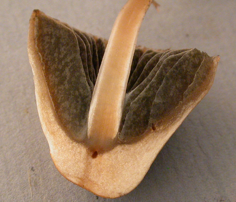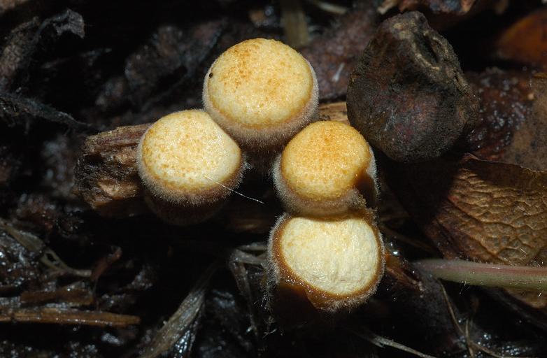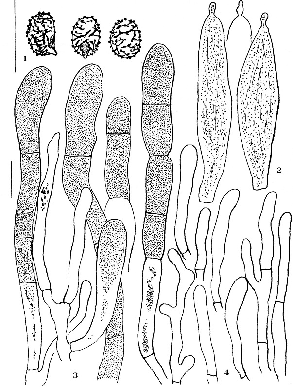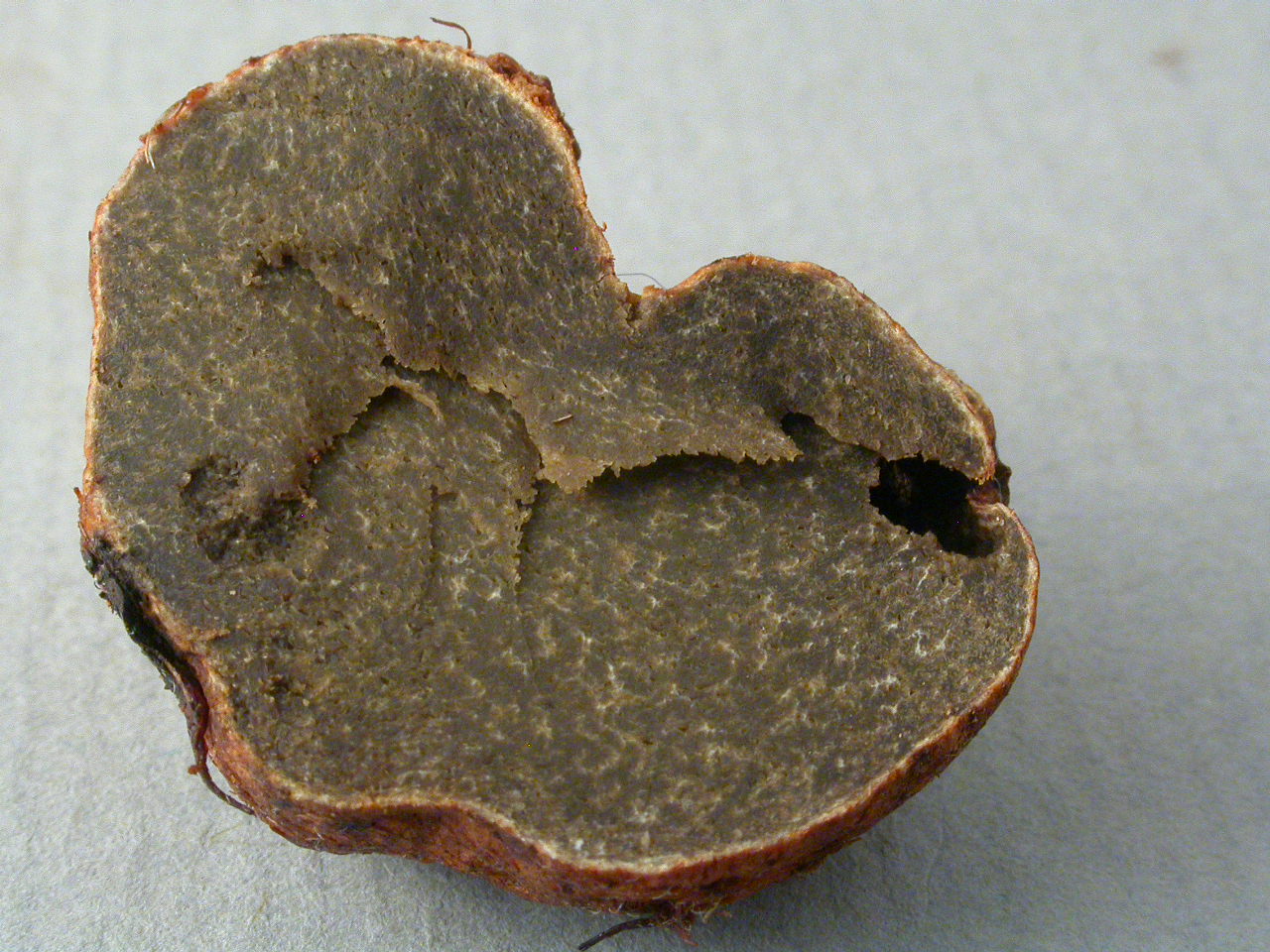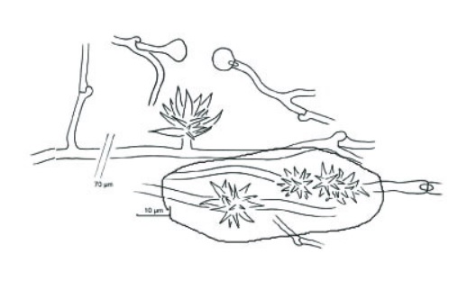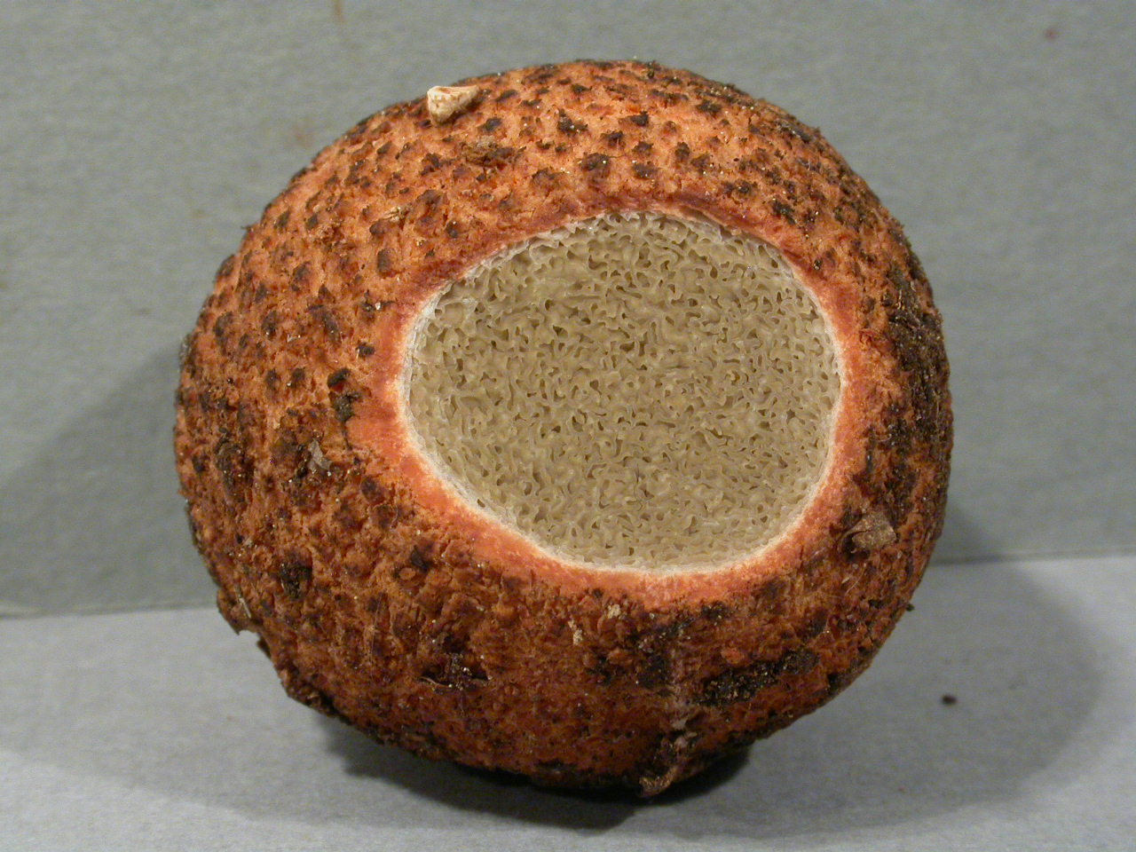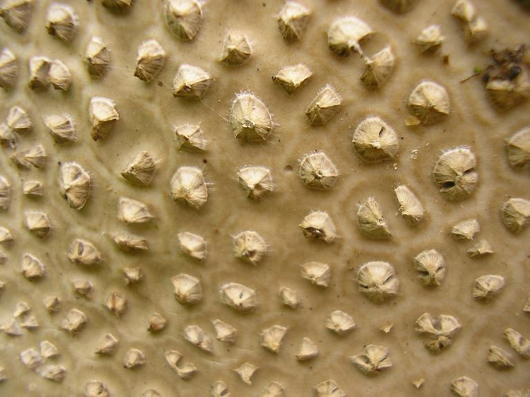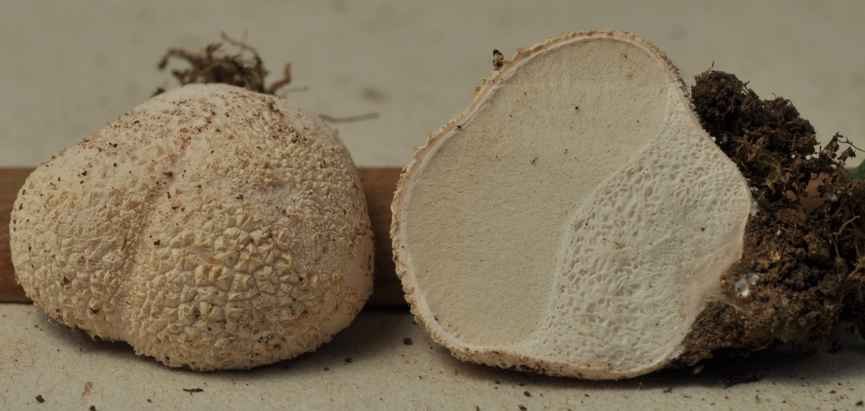 Diaphragme et subgléba à fossettes bien visibles et bien différentiés. Spores rondes bassement verruqueuses (à la limite du visible). Hyphes à parois minces (paracapillitium).