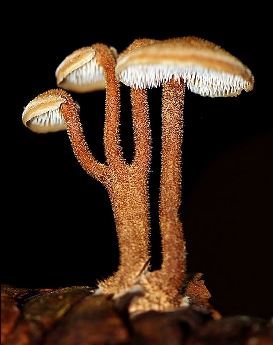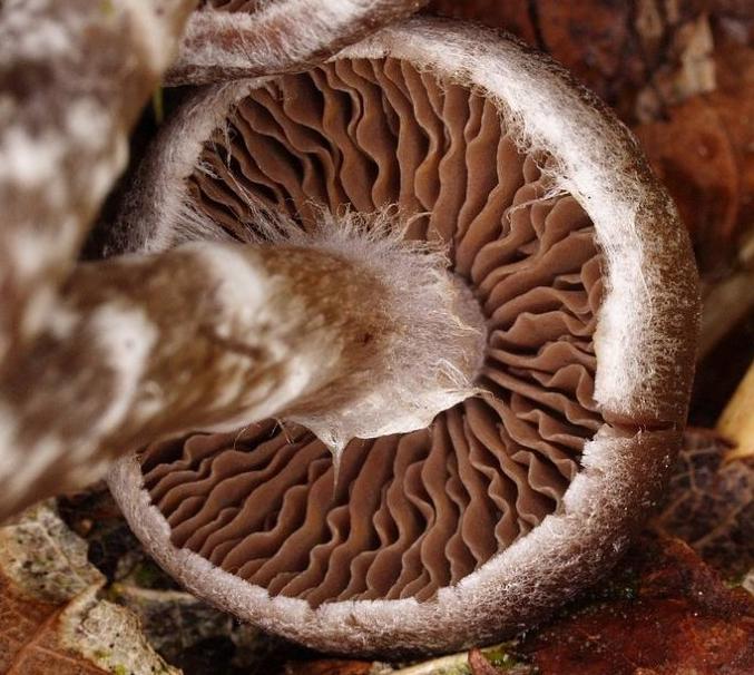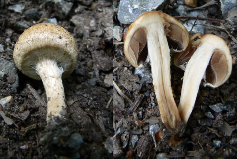 Lignicole, sombre, stipe floconneux, sans anneau, odeur farineuse.