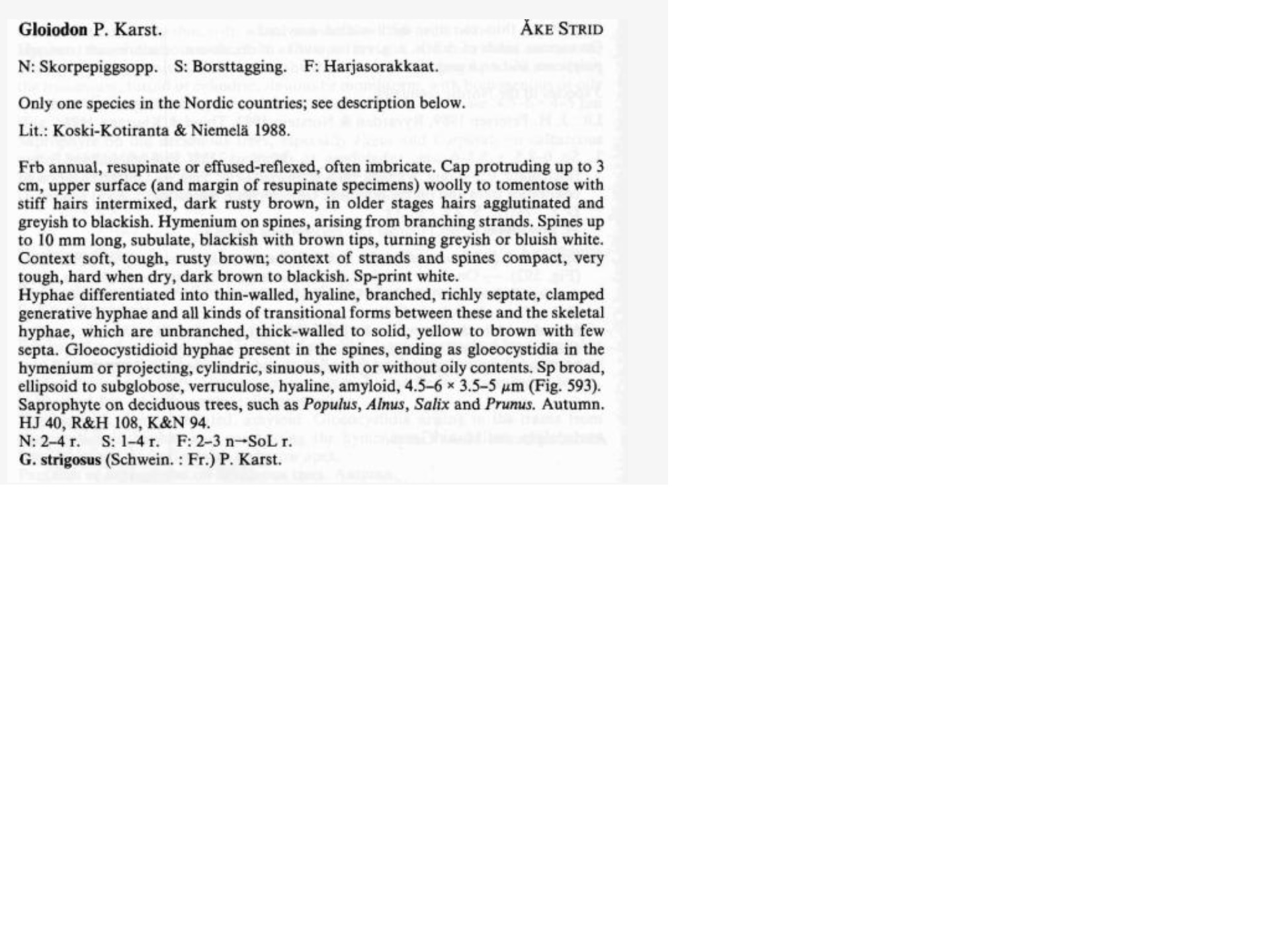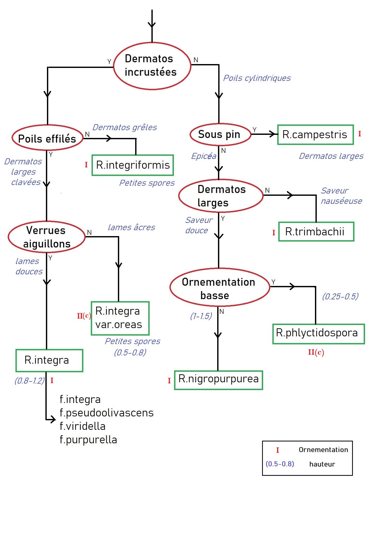 Feuillus (Quercus). Poils ne dépassant pas le mm. Etude des cheilos et pleuros pour la différentiation des Xerula.