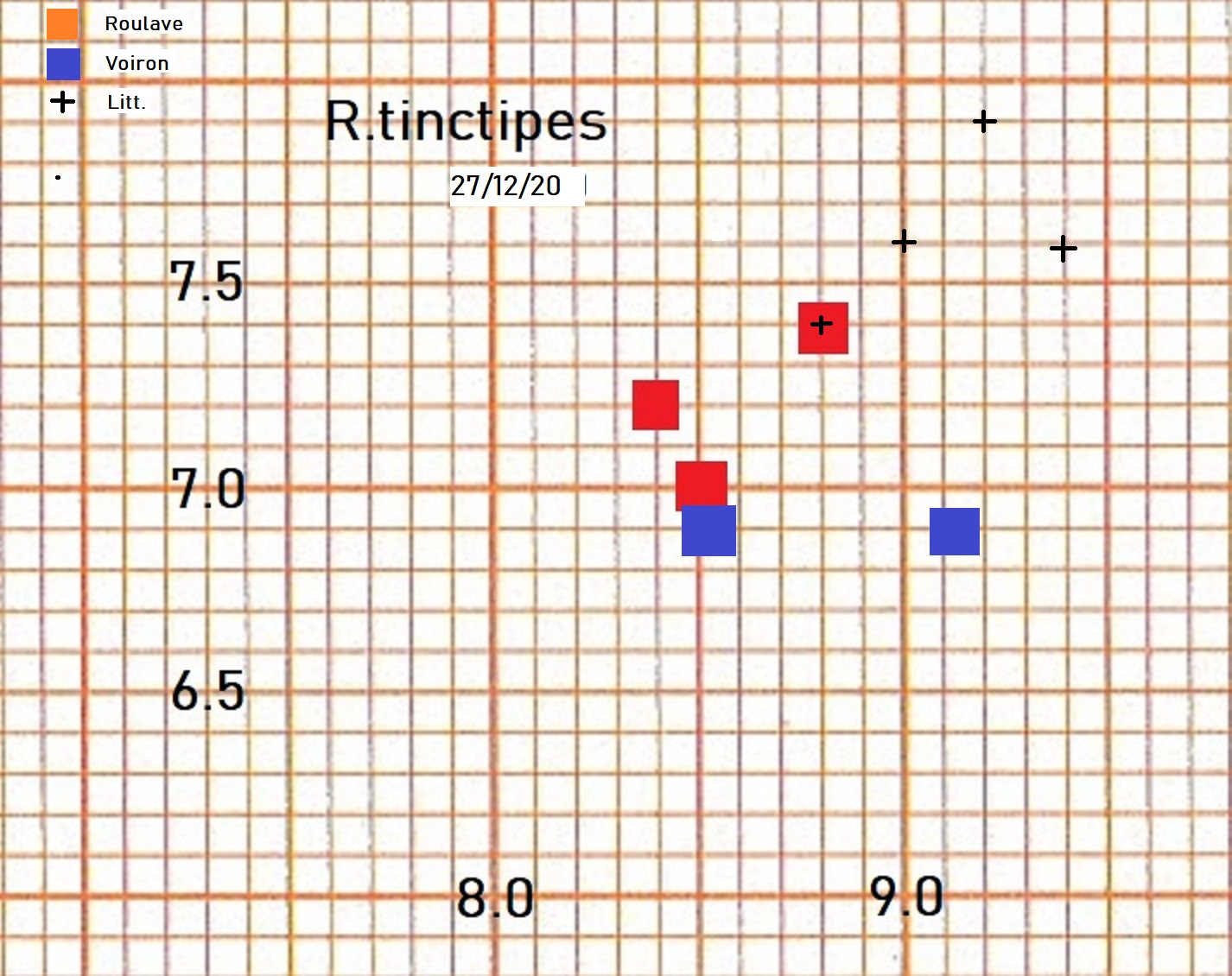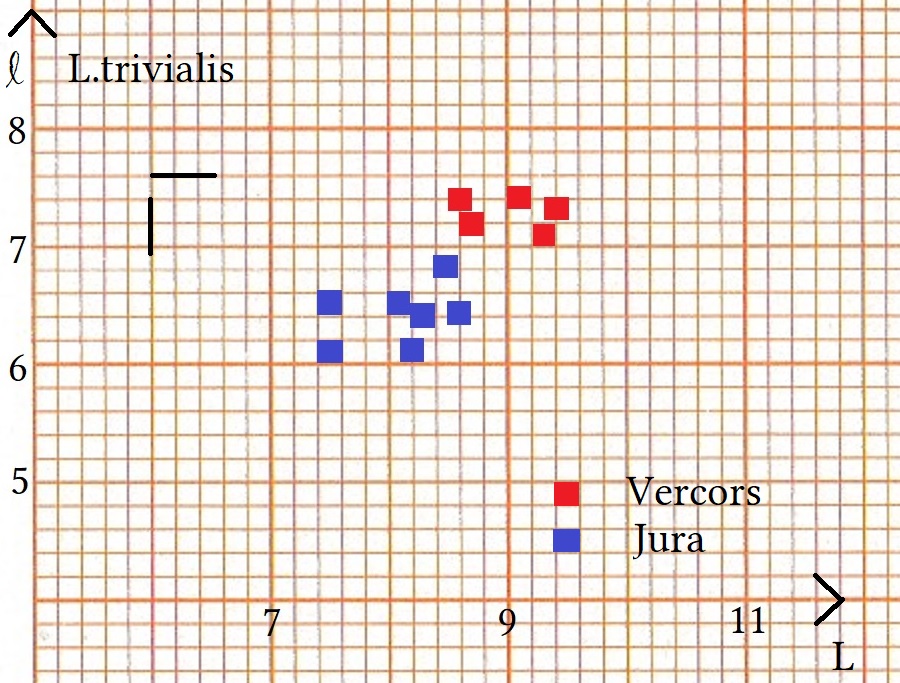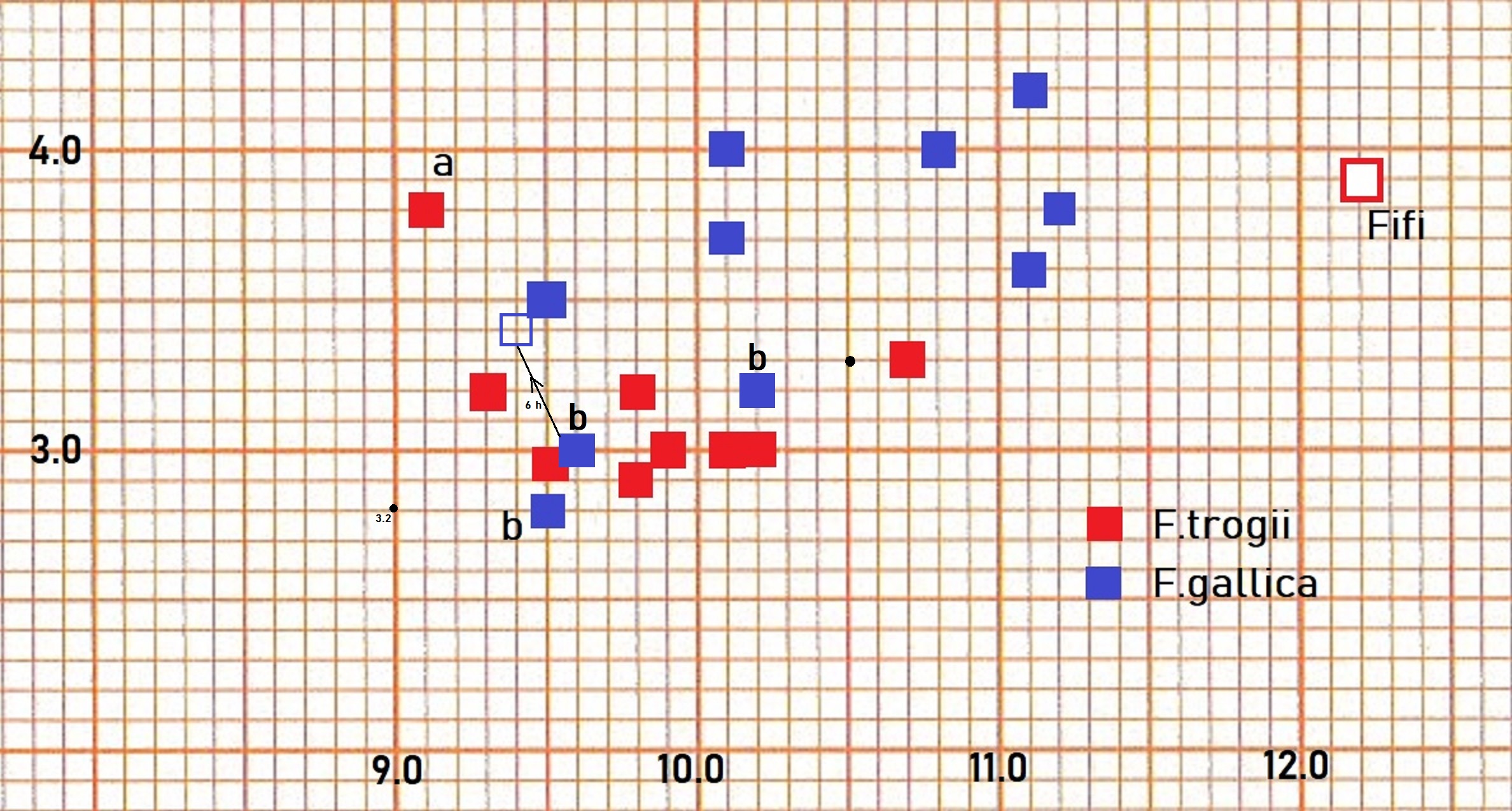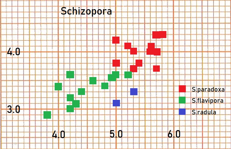 Séparation A.praecox / A.molesta grâce aux mesures sporales, plot.