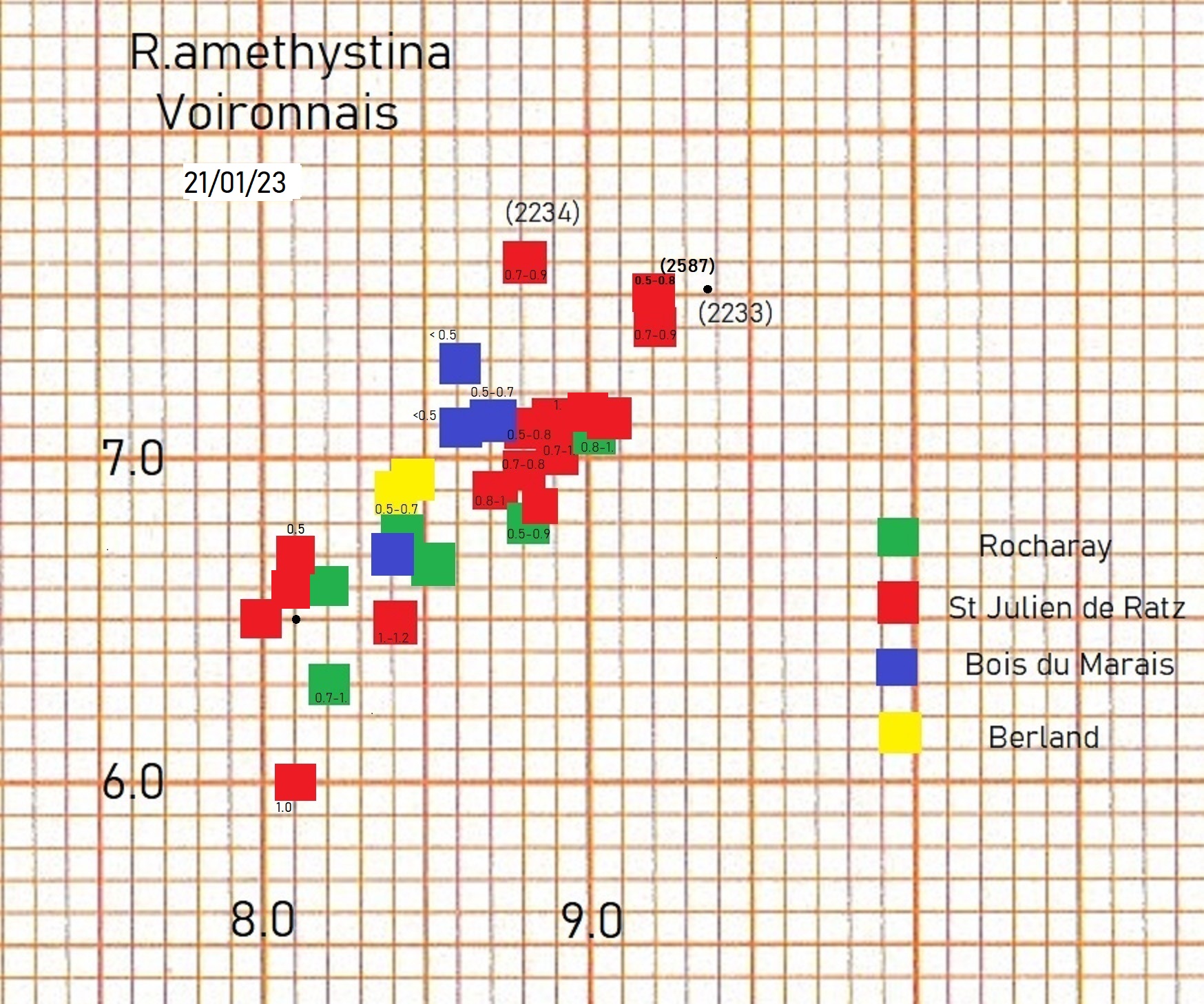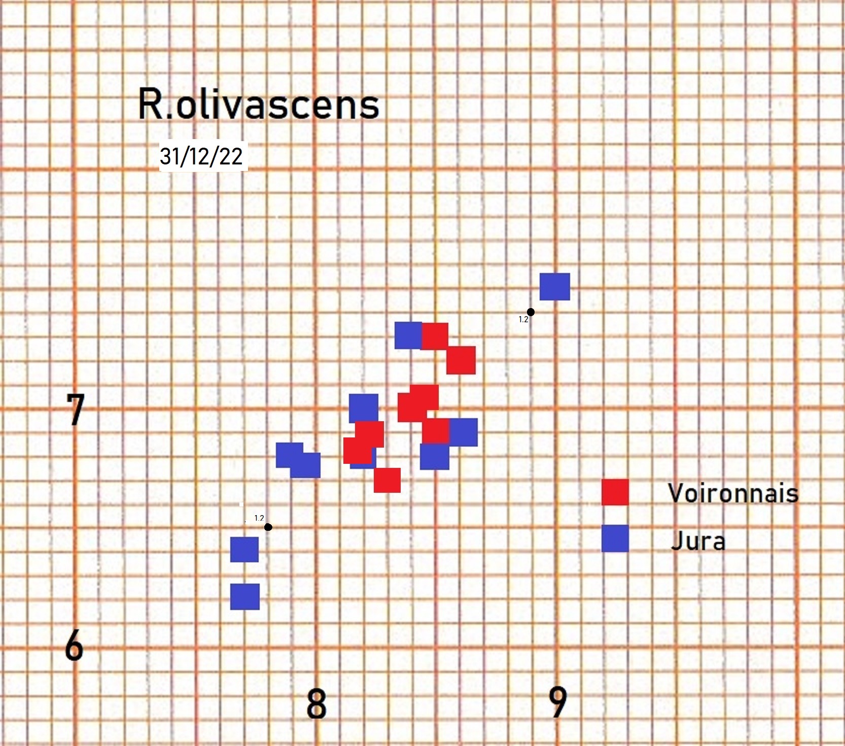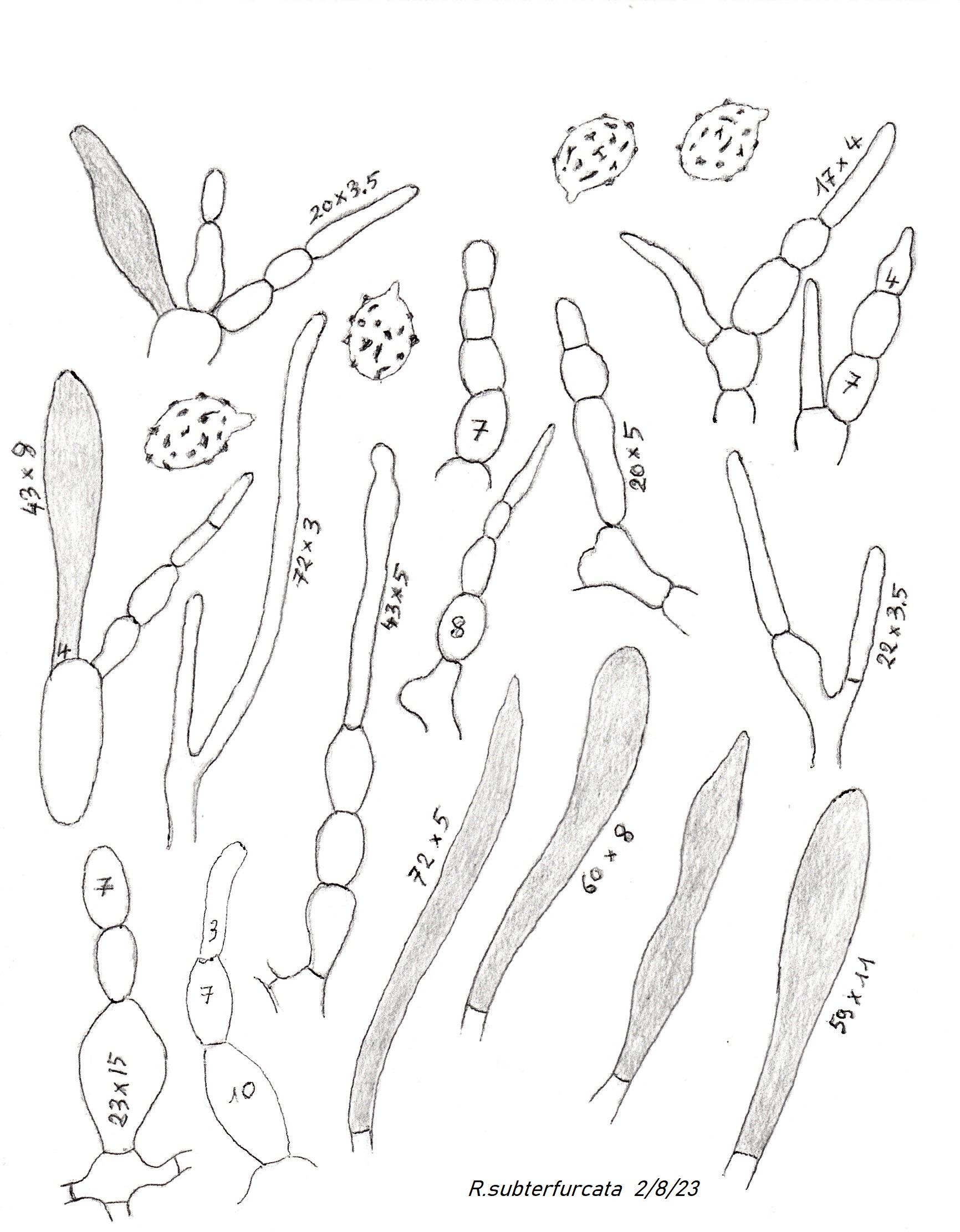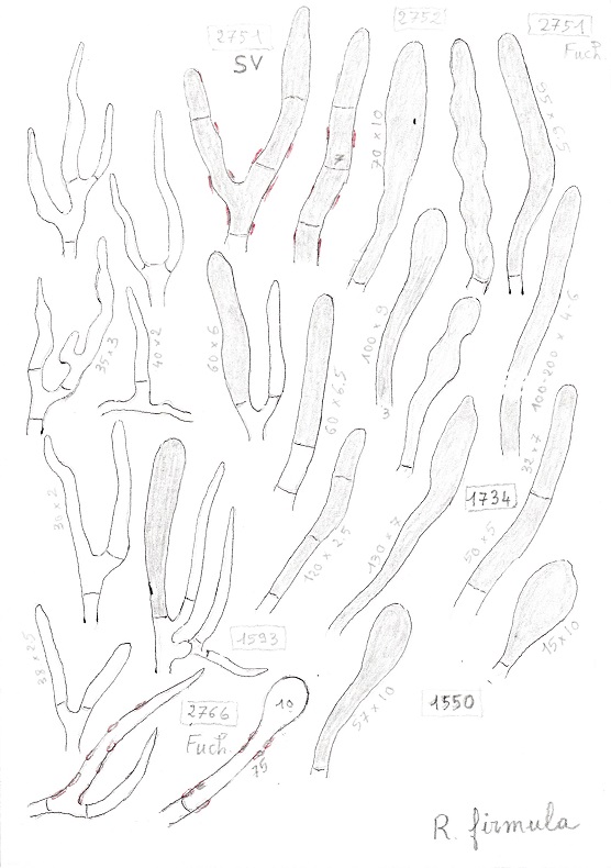 A noter l'absence, dans les récoltes, de cystides de type lagéniforme type V (contrairement aux récoltes de A.praecox). ( exception: récolte 1857).