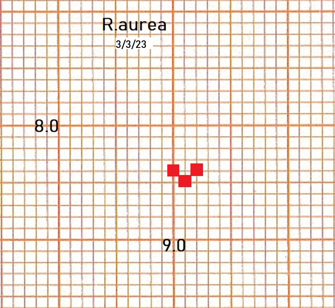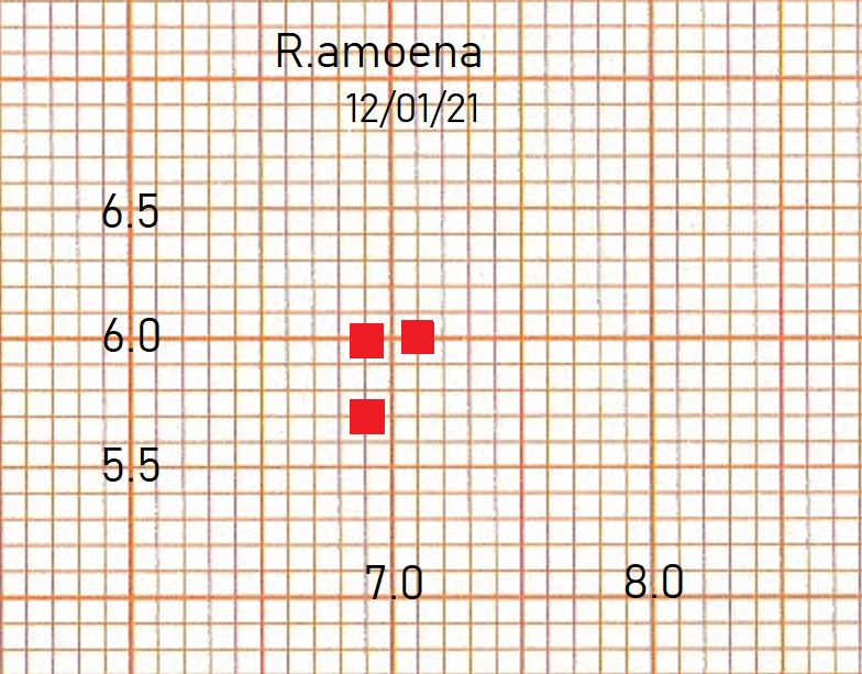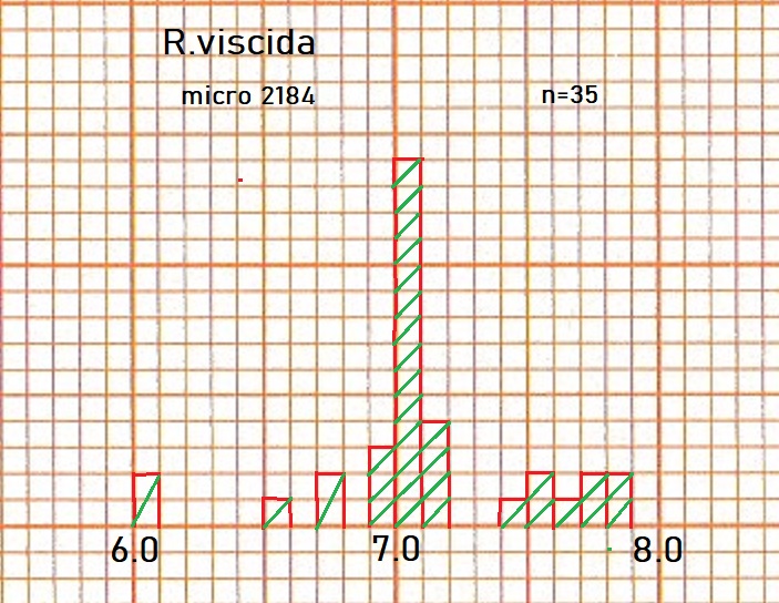 | 3 spores | 29 x 21 μ -- Q=1.39 ±0.08 | 32 x 21 μ -- Q=1.59 ±0.08 |