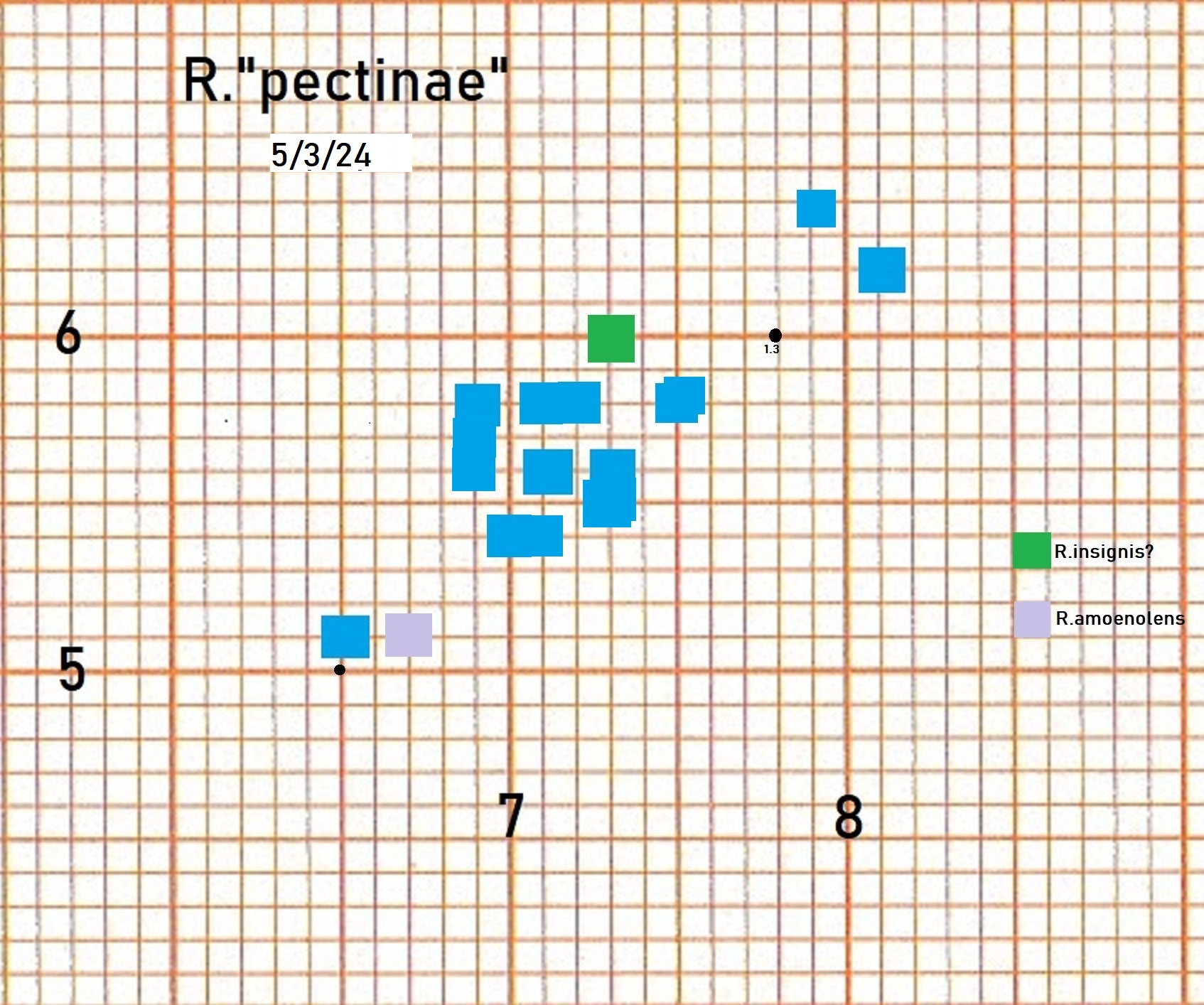 Habitat, recherche des soies, reconnaissance d'un noyau mycélien sont des caractères à valider. Intéressant la vérification d'une longueur et d'un Q sporique plus grands par rapport à I.radiatus (?!). Noter la position (costale ou dorsale).