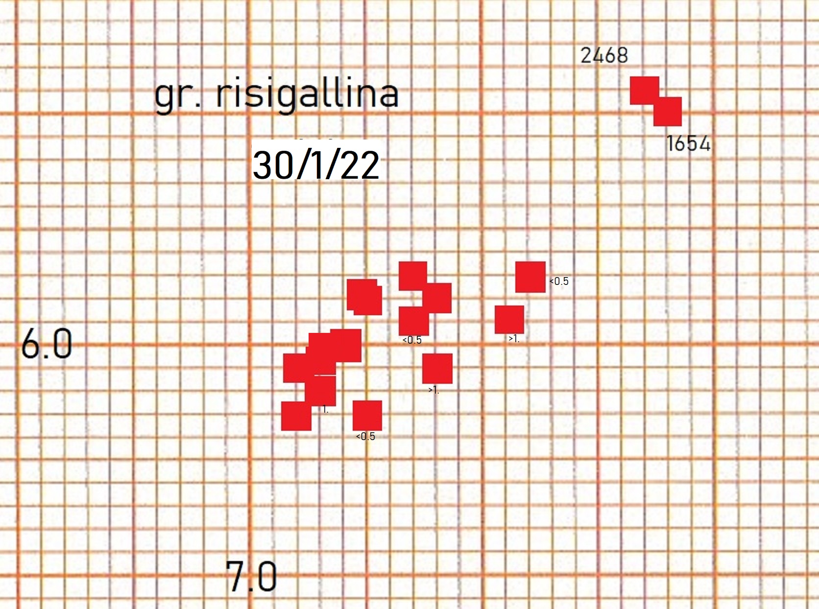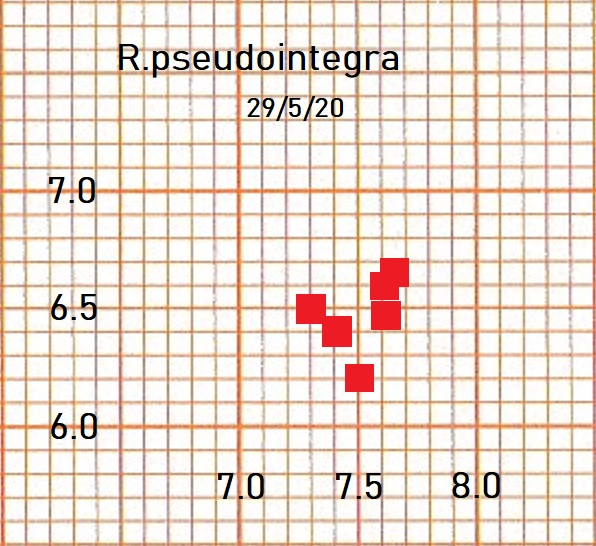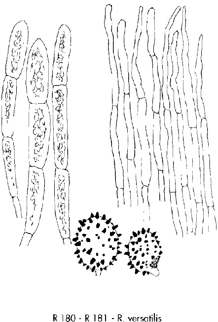 | 4 spores | 26 x 20 μ -- Q=1.29 ±0.12 | 28 x 20 μ -- Q=1.42 ±0.10 |