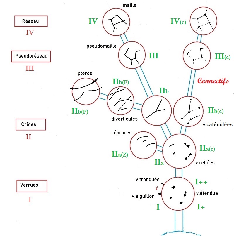 Piléipellis type ixotrichoderme, spores à ornementation avec verrues isolées, petites, caténulées jusqu'à des crêtes diverticulées.
