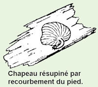 et le pied chez le primordium et protégeant l'hyménophore jeune. Laisse