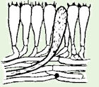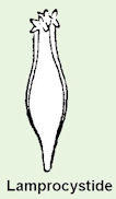 S'utilise essentiellement à propos de cystides qui ornent l'hyménium à