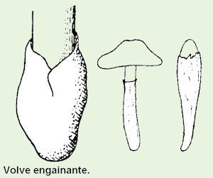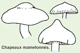 - flocons sur le chapeau ; volve, bourrelets, fibrilles sur le pied manifestent la présence d'un voile général ;